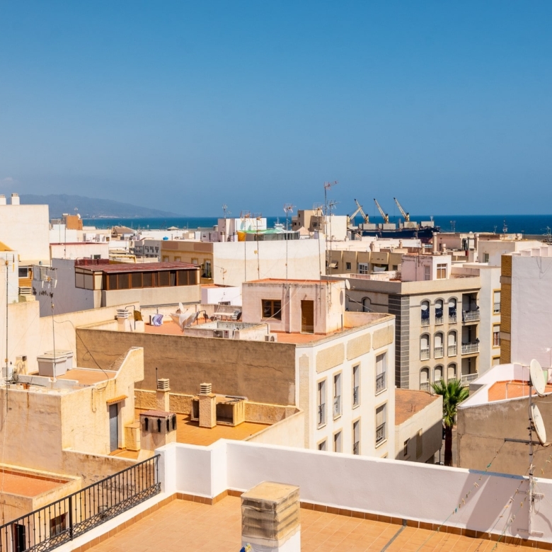 Cosy Apartment with two bedrooms and two bathrooms and massive sun terrace, located in a building with five floors above ground level and one floor below ground level, which has an elevator. It is located in the municipality of Garrucha, province of Almería. The house is distributed in two bedrooms, a living room, a kitchen, two bathrooms, and a hall. It has a normal entrance door, white lacquered aluminium windows, casement windows, and plastic shutters. The property is located in a busy central area of ​​the town of Garrucha, surrounded by houses of similar characteristics shops and restaurants. The building has an approximate age of about ten years. The Garrucha beach is also known as the Playa de las Escobetas and is the only sandy area that the municipality has. The promenade runs along the beach from end to end, and also the commercial, sports and fishing ports are flanked by its three ports. When we talk about Garrucha, we must stop for a while on its magnificent Paseo Marítimo, better known as the Malecon. It has easy access by A-370 roads, quiet area with a good level of services such as buses, supermarkets, restaurants, pharmacies, primary and secondary schools, and health centre.