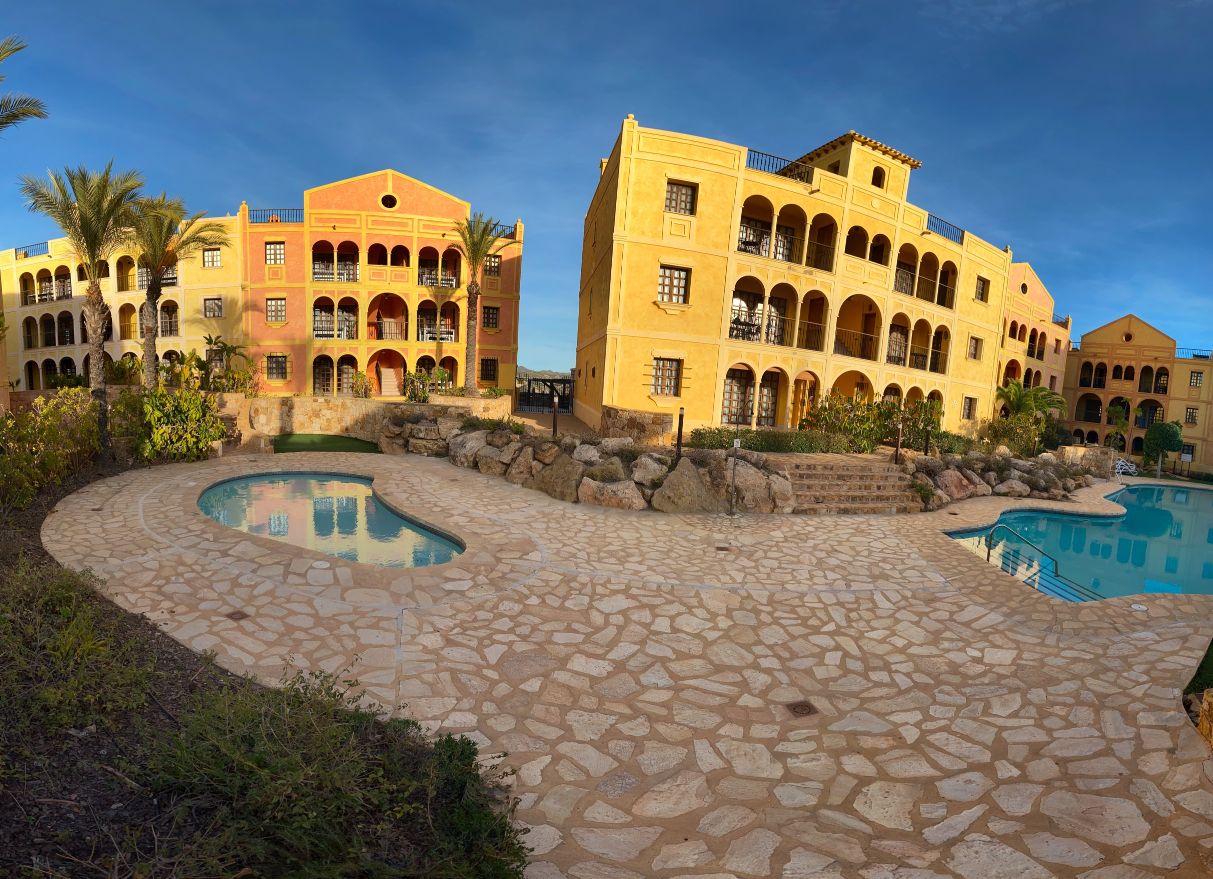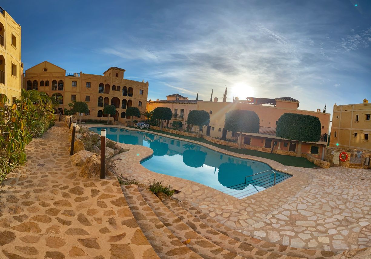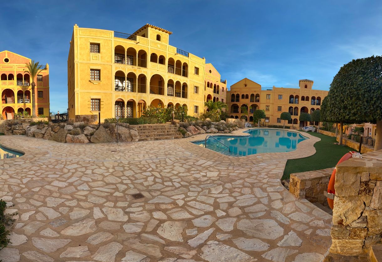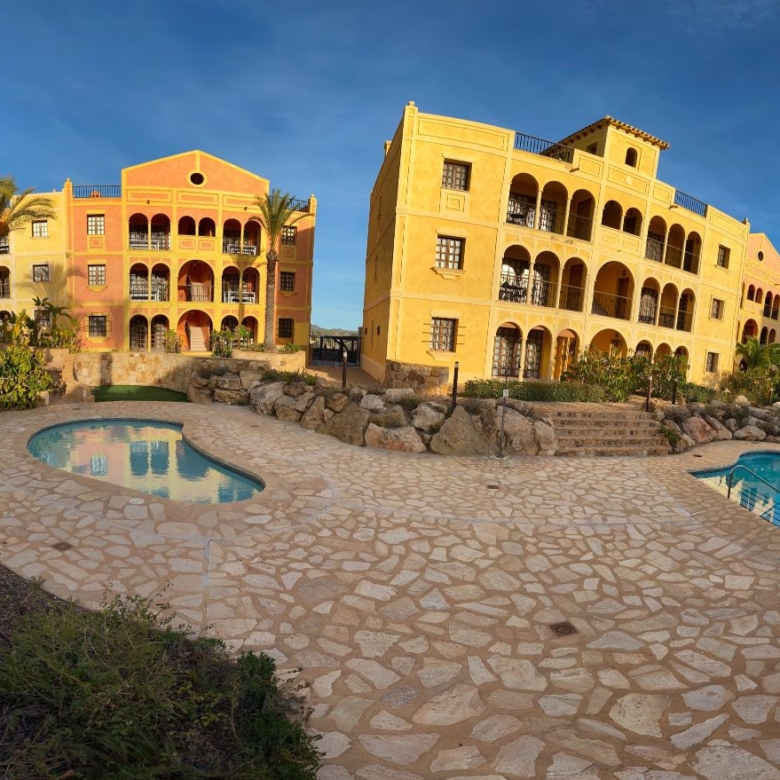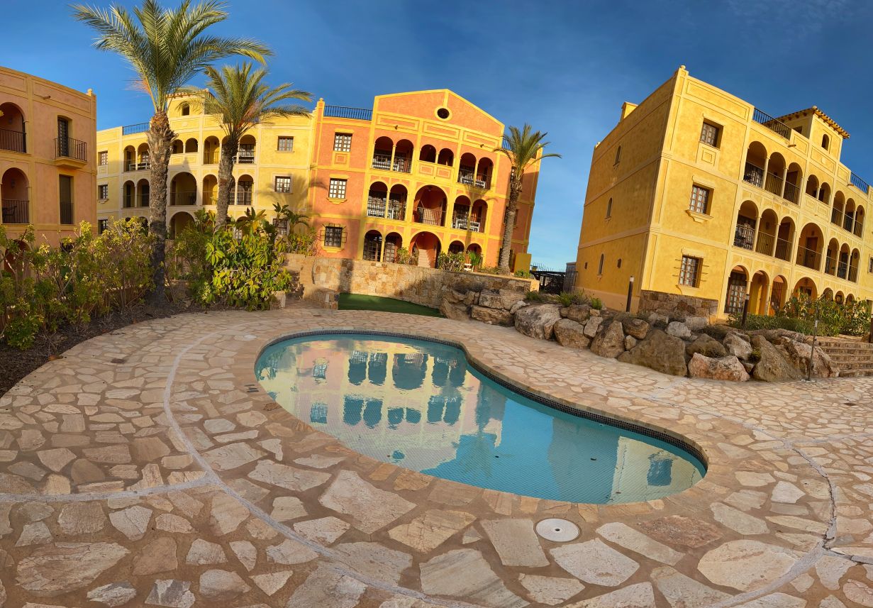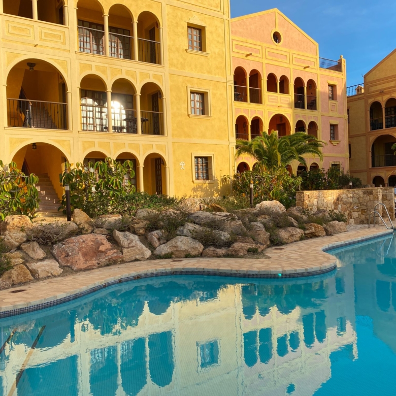 The apartment is set within a courtyard around a swimming pool, with gardens and classical Spanish patios, occupying an envious position on the resort of Desert Springs. Their location gives them tremendous views of the golf course, the sea, and surrounding mountain ranges and is within easy access to all resort facilities.