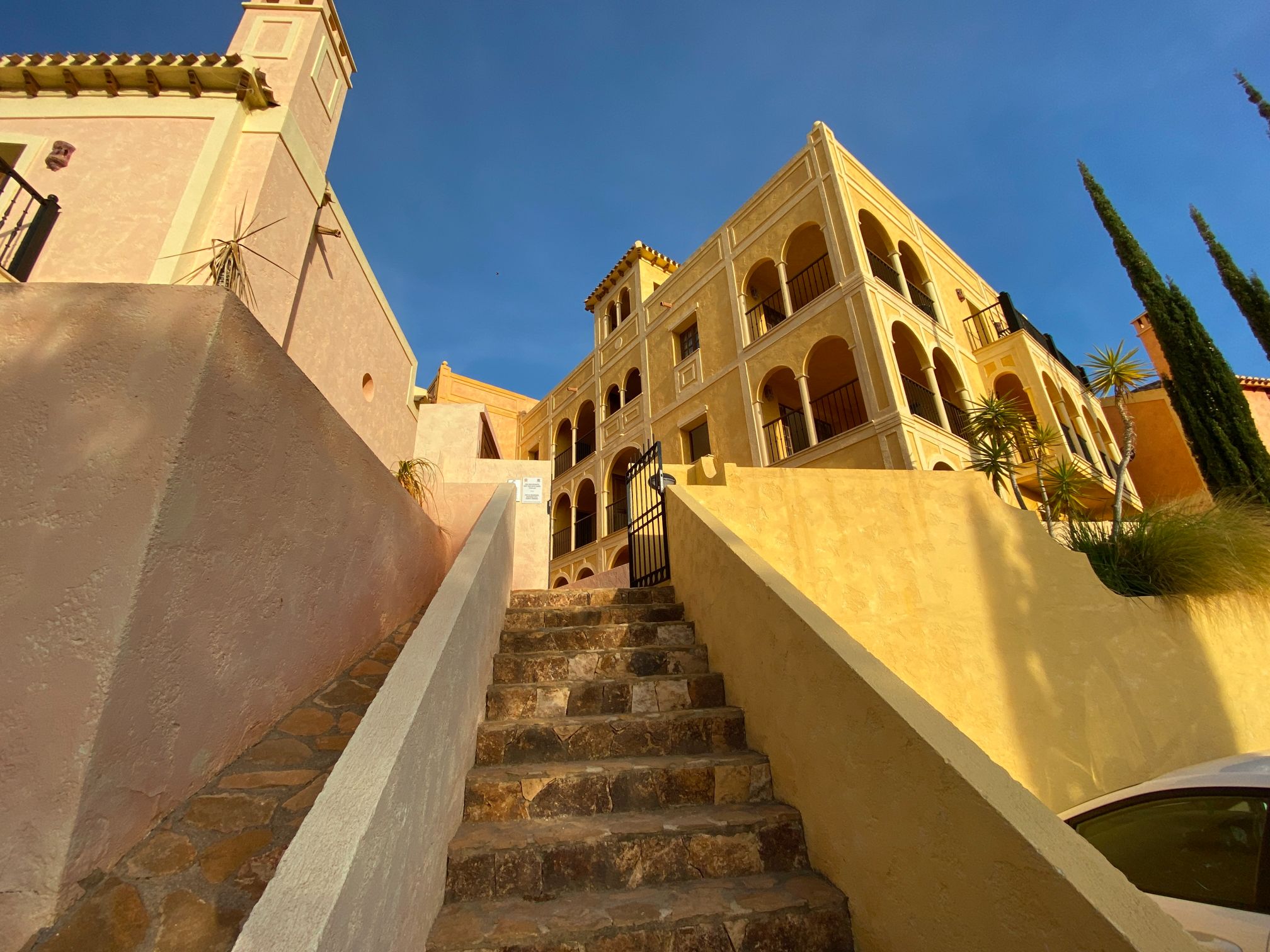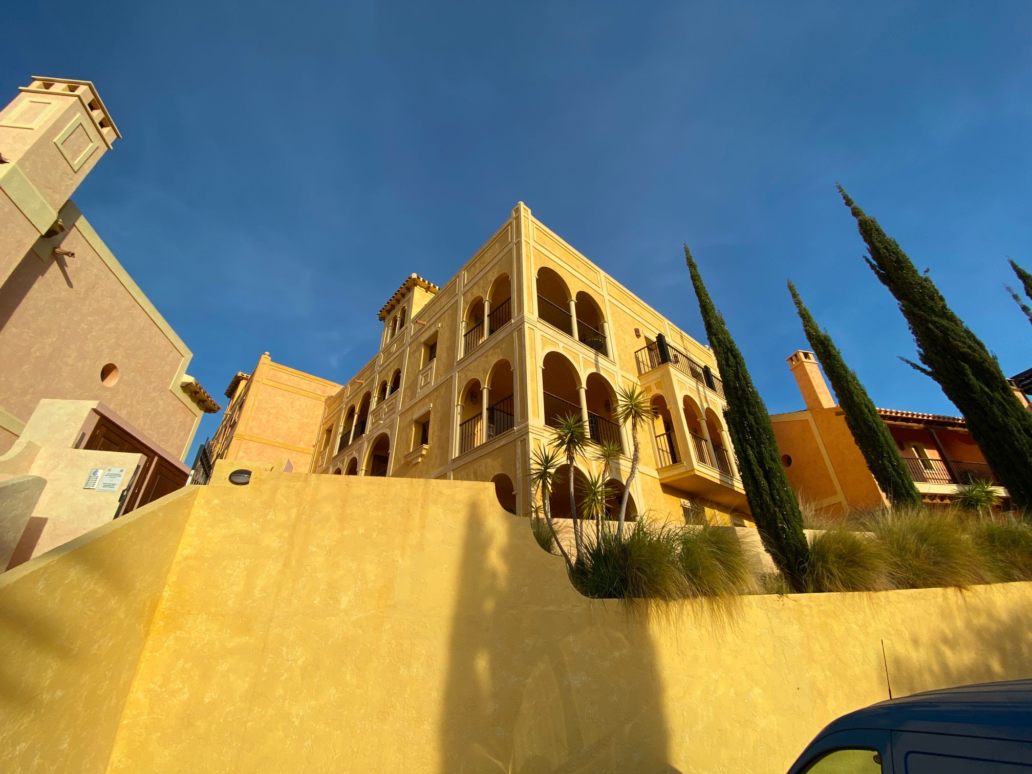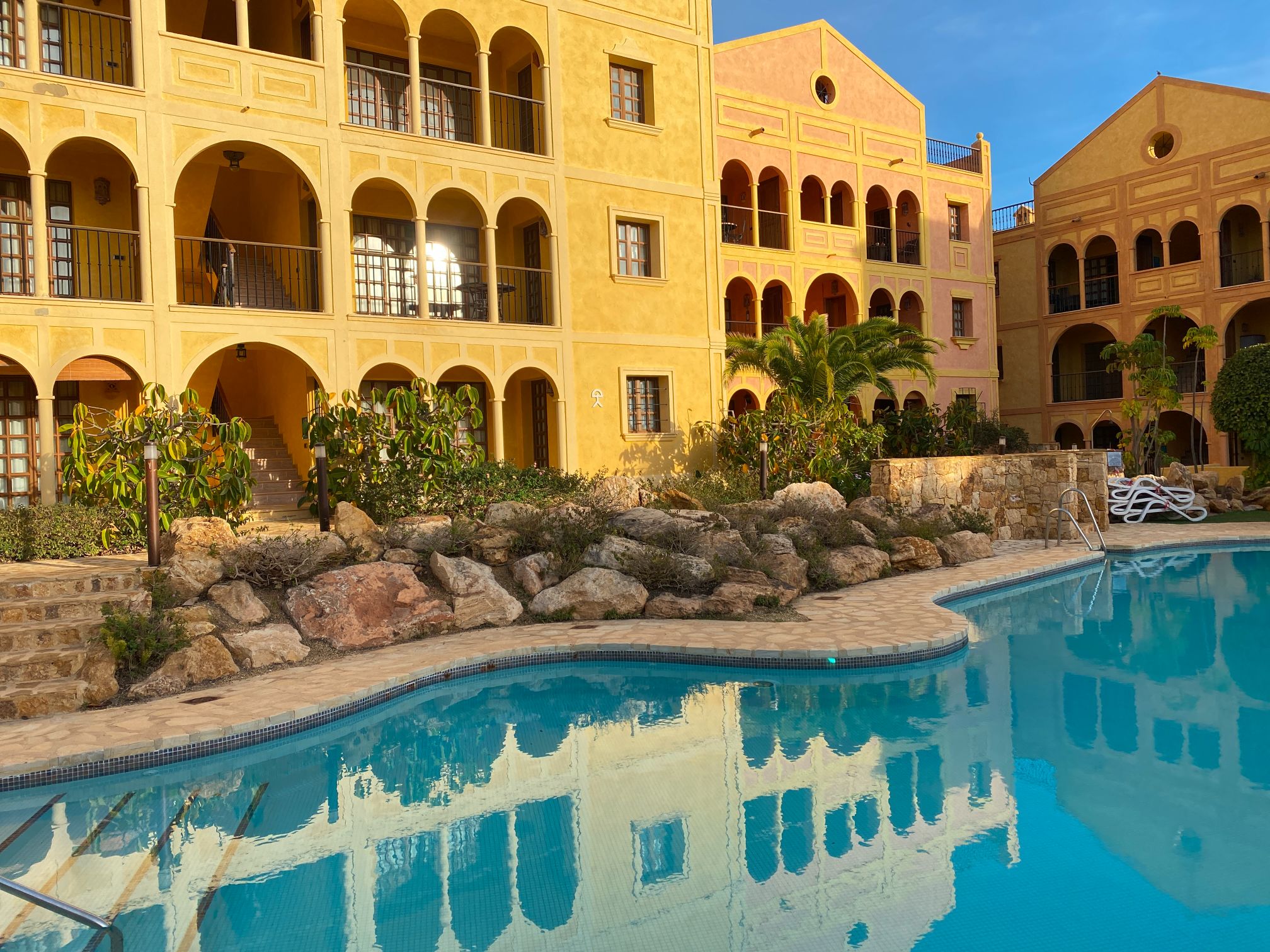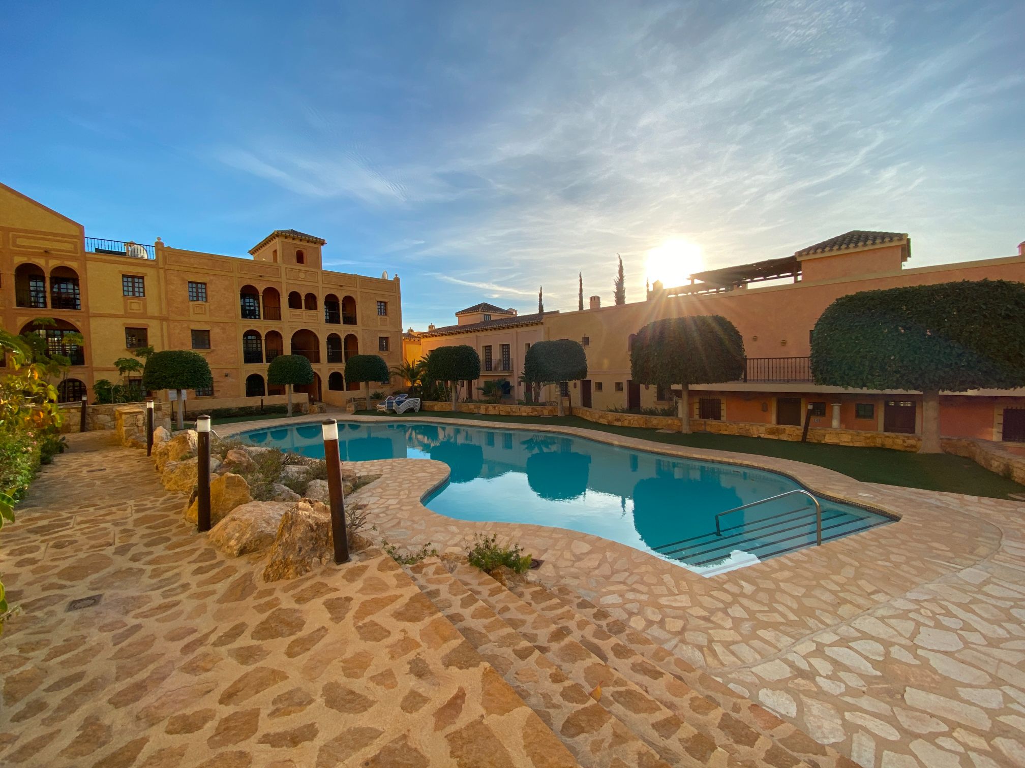 The apartment is set within a courtyard around a swimming pool, with gardens and classical Spanish patios, occupying an envious position on the resort of Desert Springs. Their location gives them tremendous views of the golf course, the sea, and surrounding mountain ranges and is within easy access to all resort facilities.