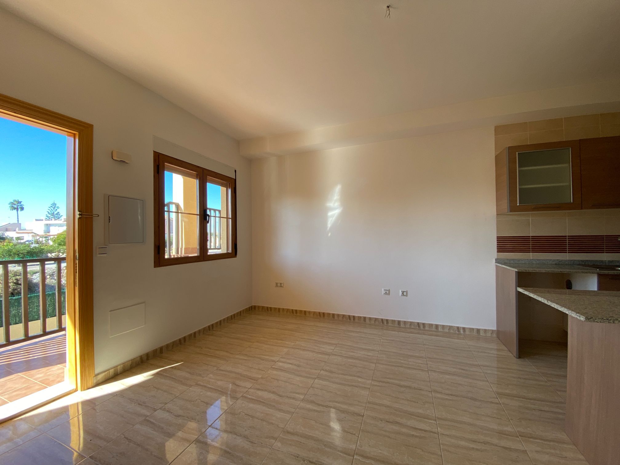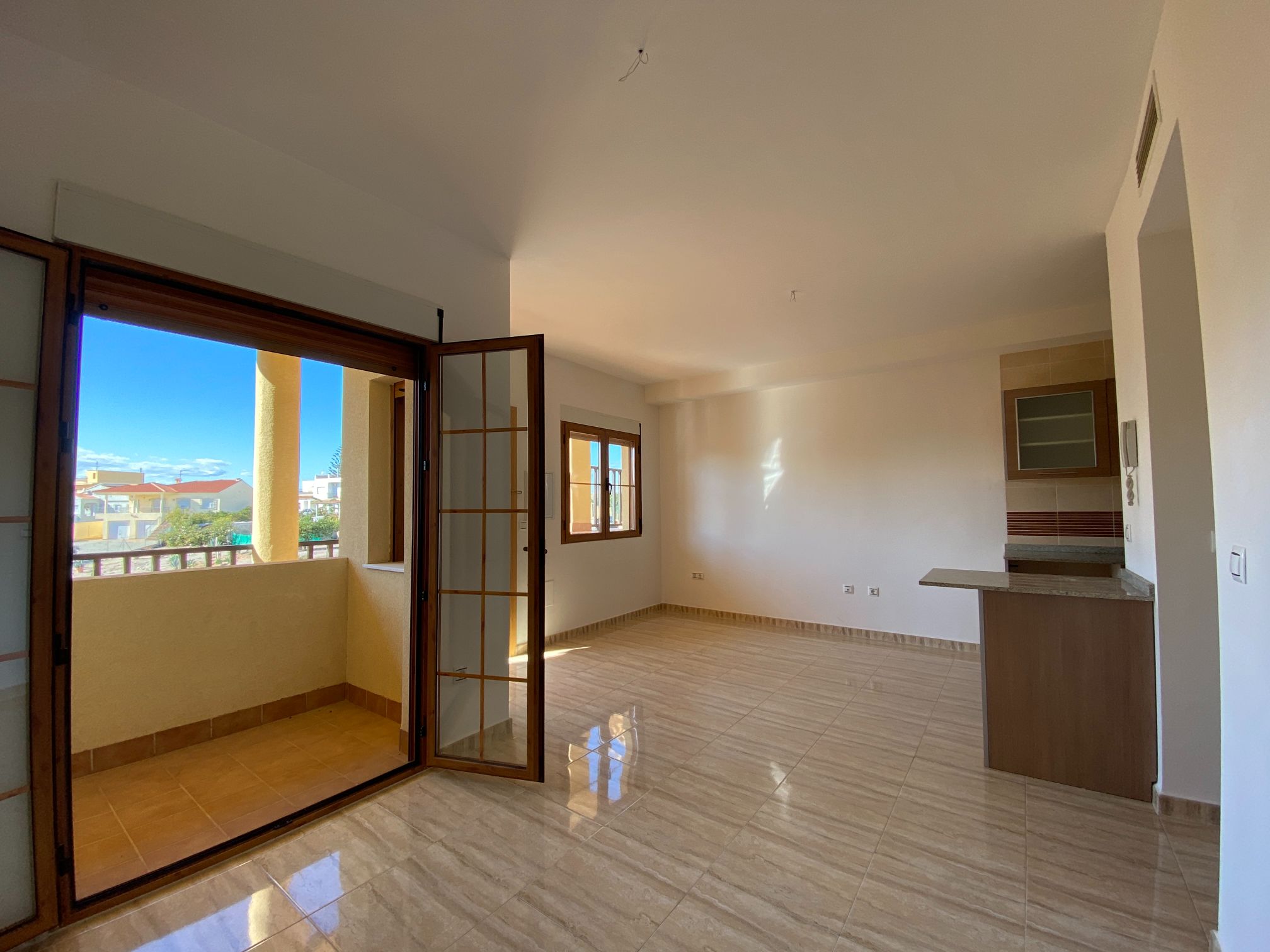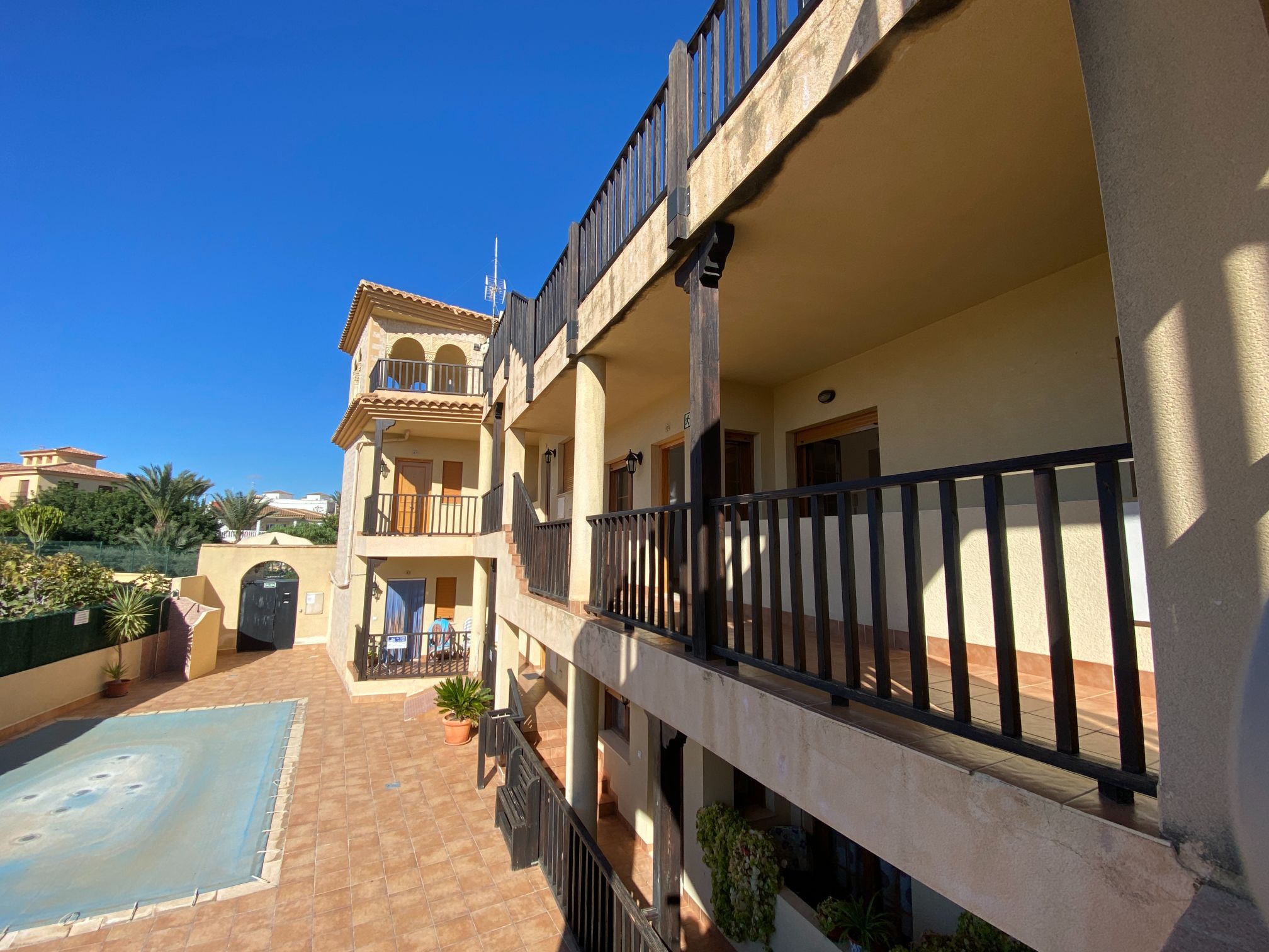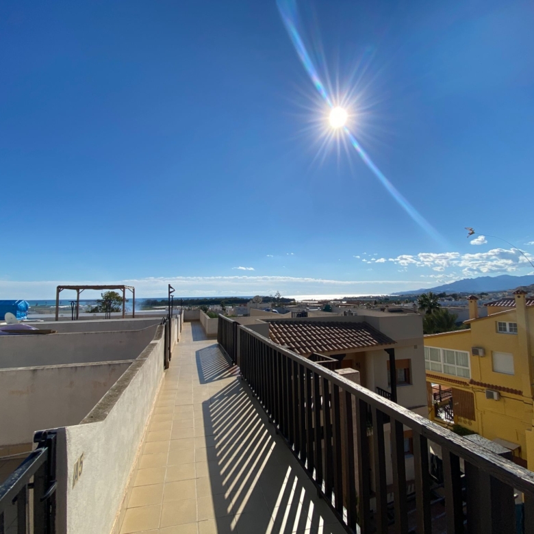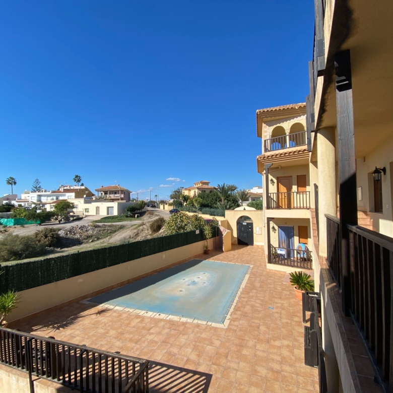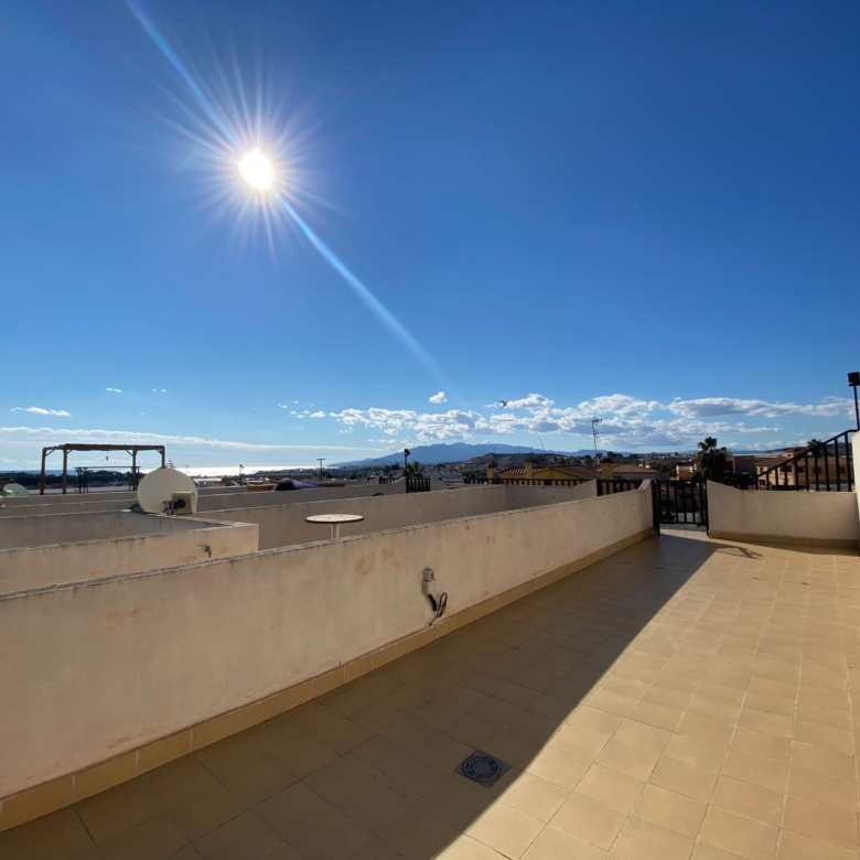 Penthouse apartment with two bedrooms, two bathrooms, living room, and fitted kitchen integrated into the living room. In Palomares 500 meters from the beach. Located on the outskirts of Palomares, easy and quick access. Palomares it is located 2.2 km from Villaricos with marina and fishing, Vera Playa is its neighbour, 6.6 km from the Desert Spring golf course, Garrucha is 8 km away, Cuevas del Almanzora 10 km, village town 10,9 km away, Mojacar 15 km away, and 13,4 km away from the Mediterranean motorway…