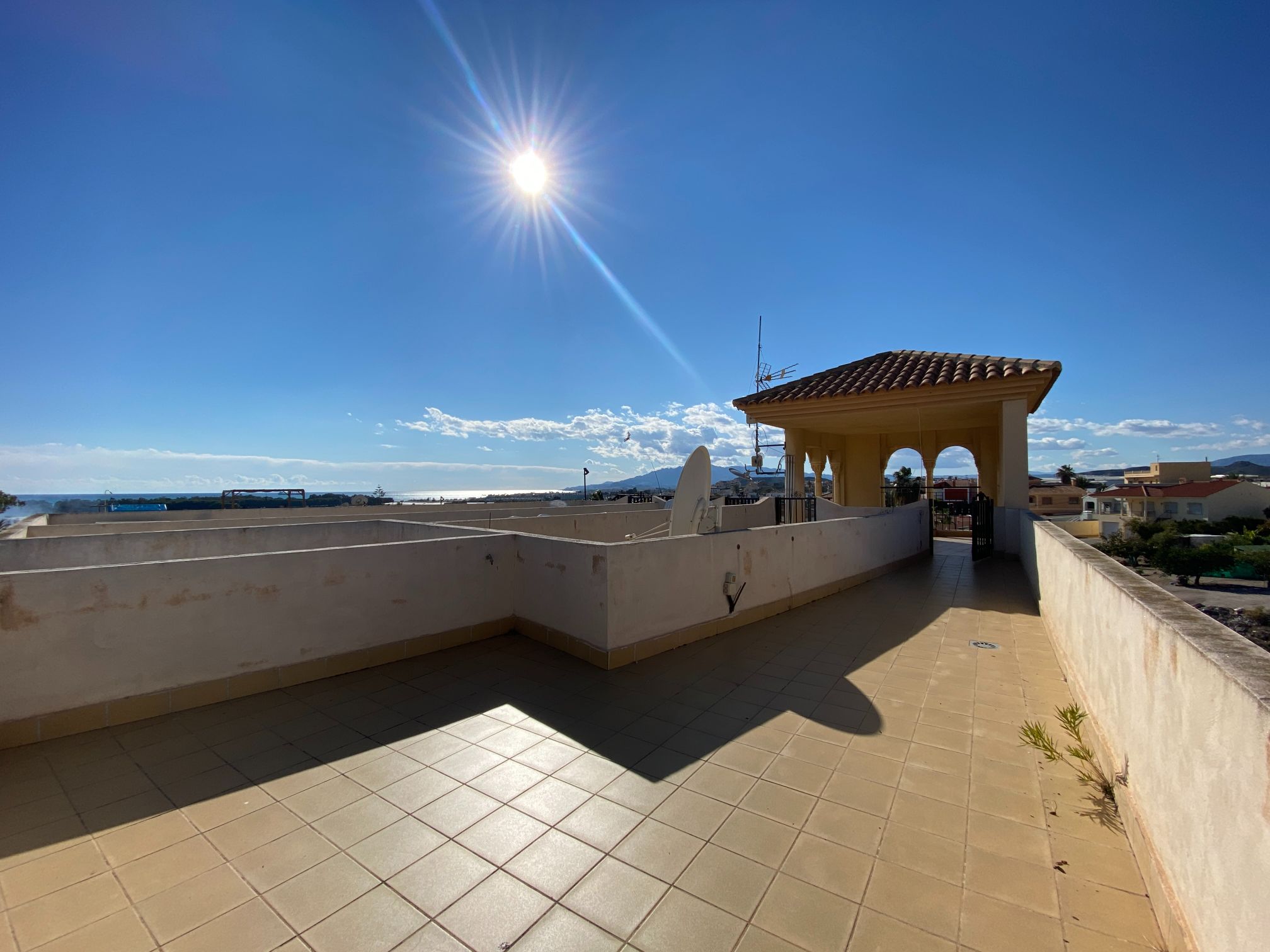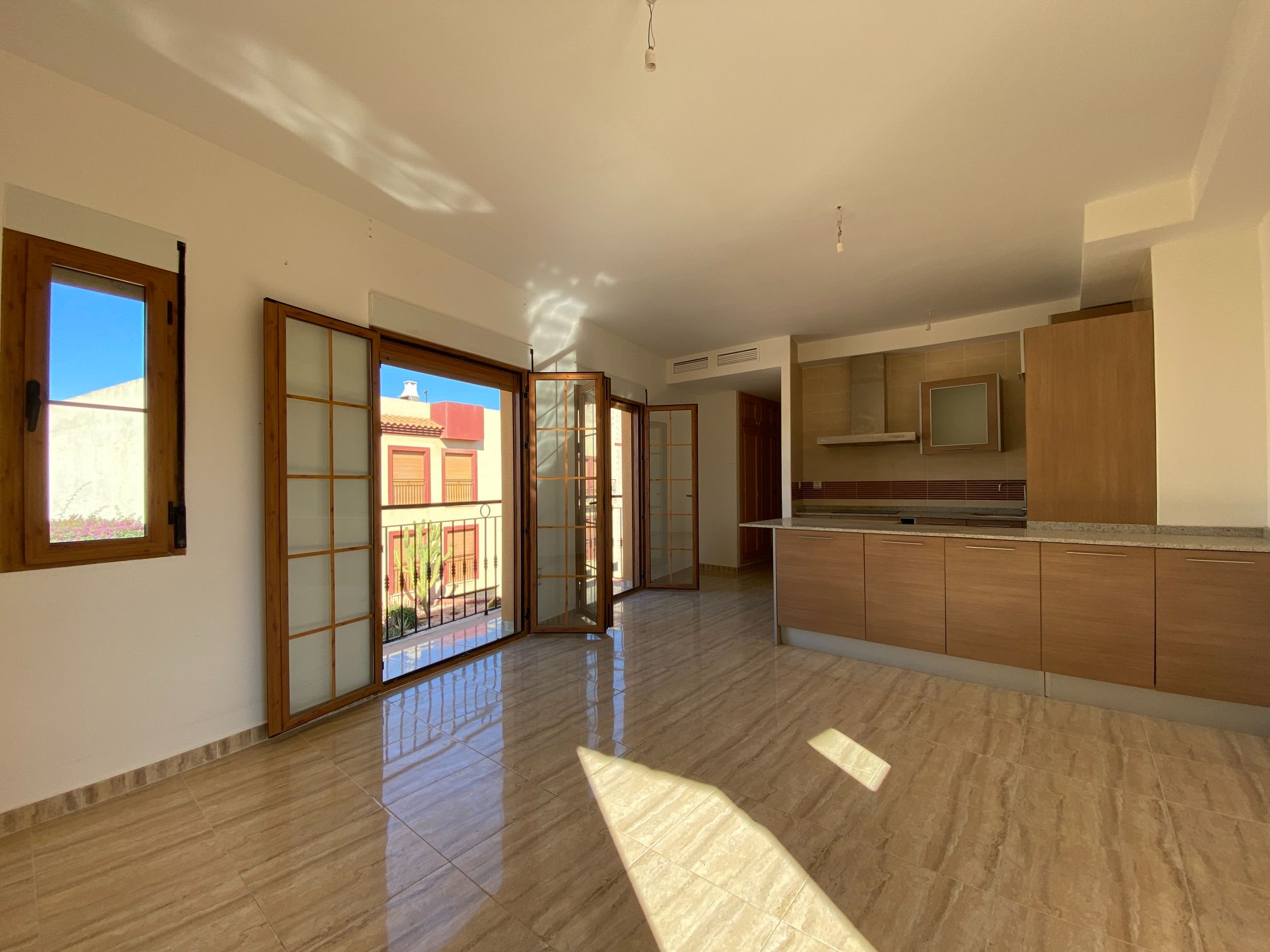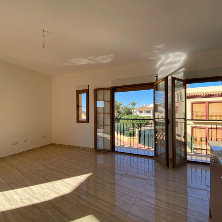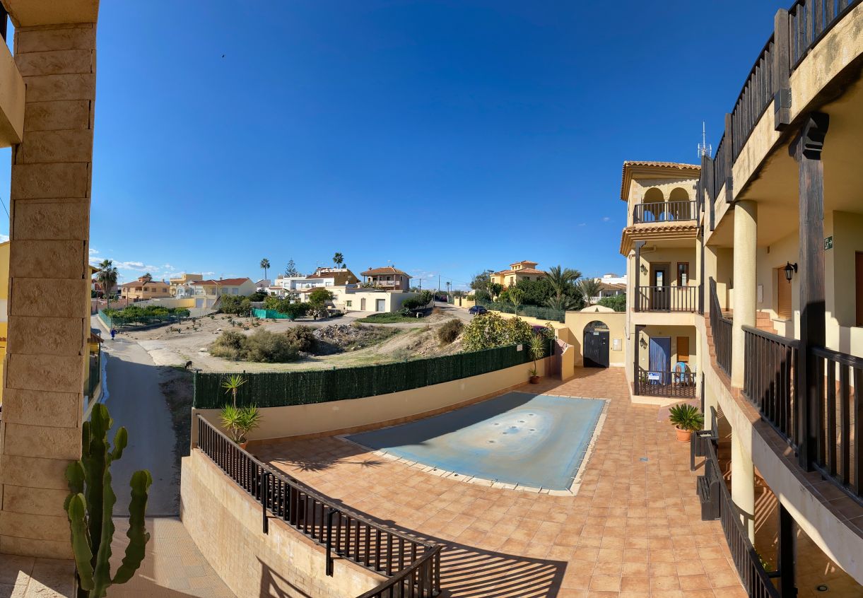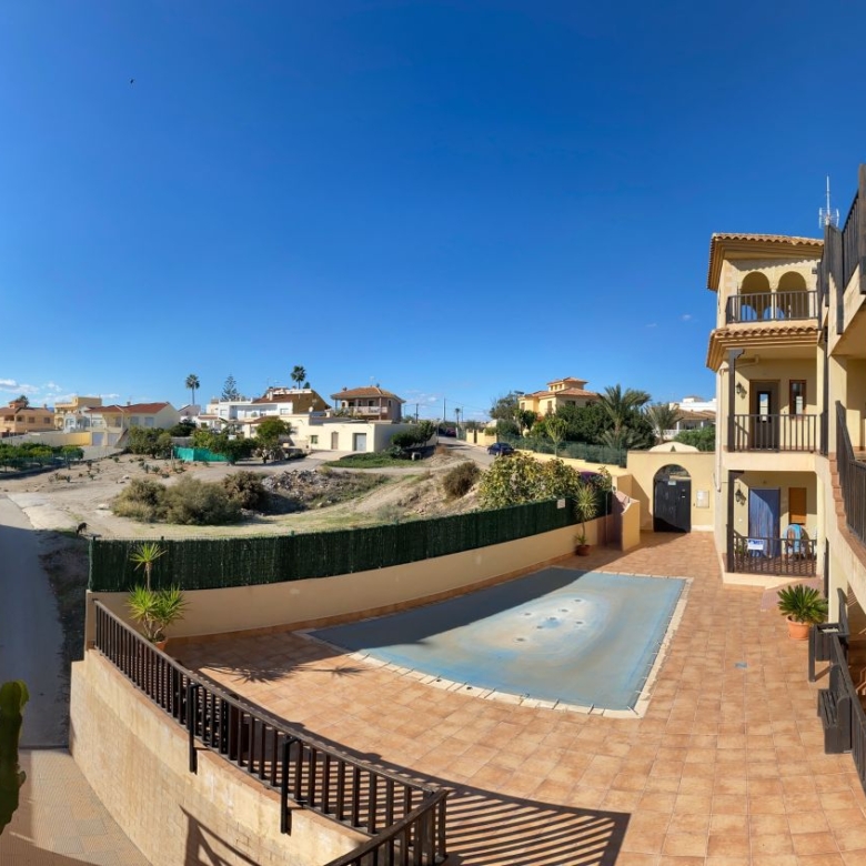 Corner Penthouse apartment with two bedrooms, two bathrooms, living room, and fitted kitchen integrated into the living room. In Palomares 500 meters from the beach. Located on the outskirts of Palomares, easy and quick access. Palomares it is located 2.2 km from Villaricos with marina and fishing, Vera Playa is its neighbour, 6.6 km from the Desert Spring golf course, Garrucha is 8 km away, Cuevas del Almanzora 10 km, village town 10,9 km away, Mojacar 15 km away, and 13,4 km away from the Mediterranean motorway…