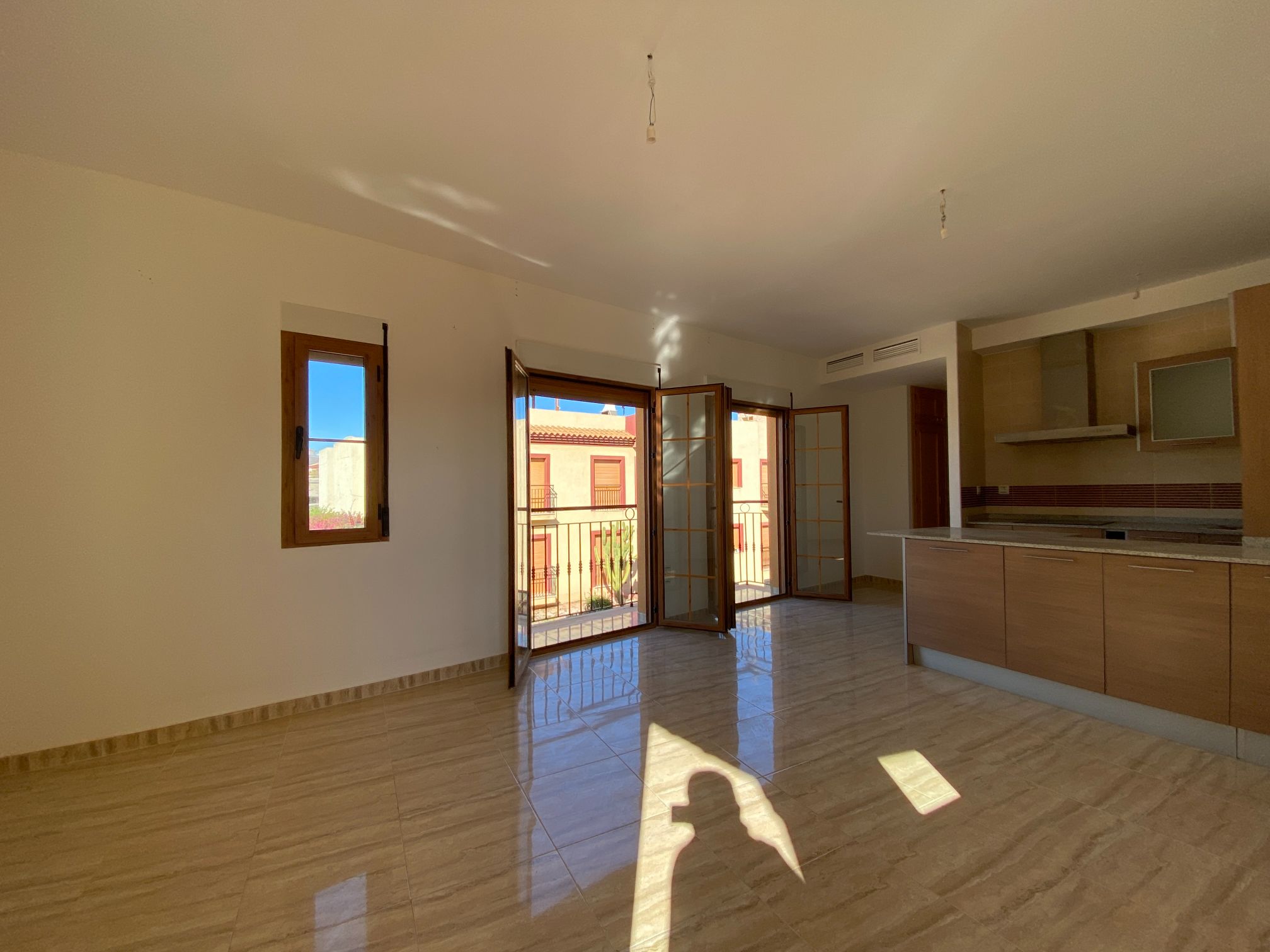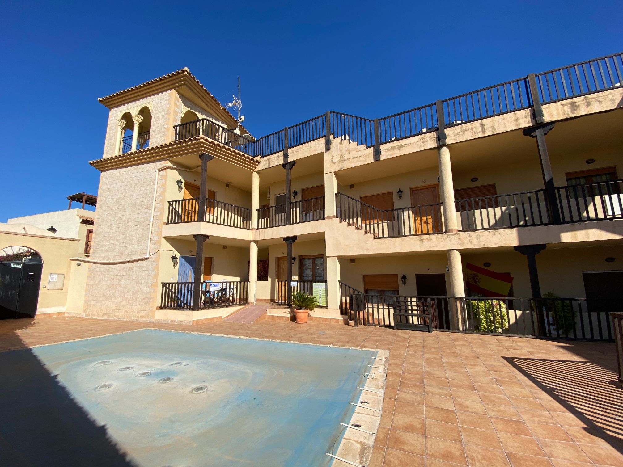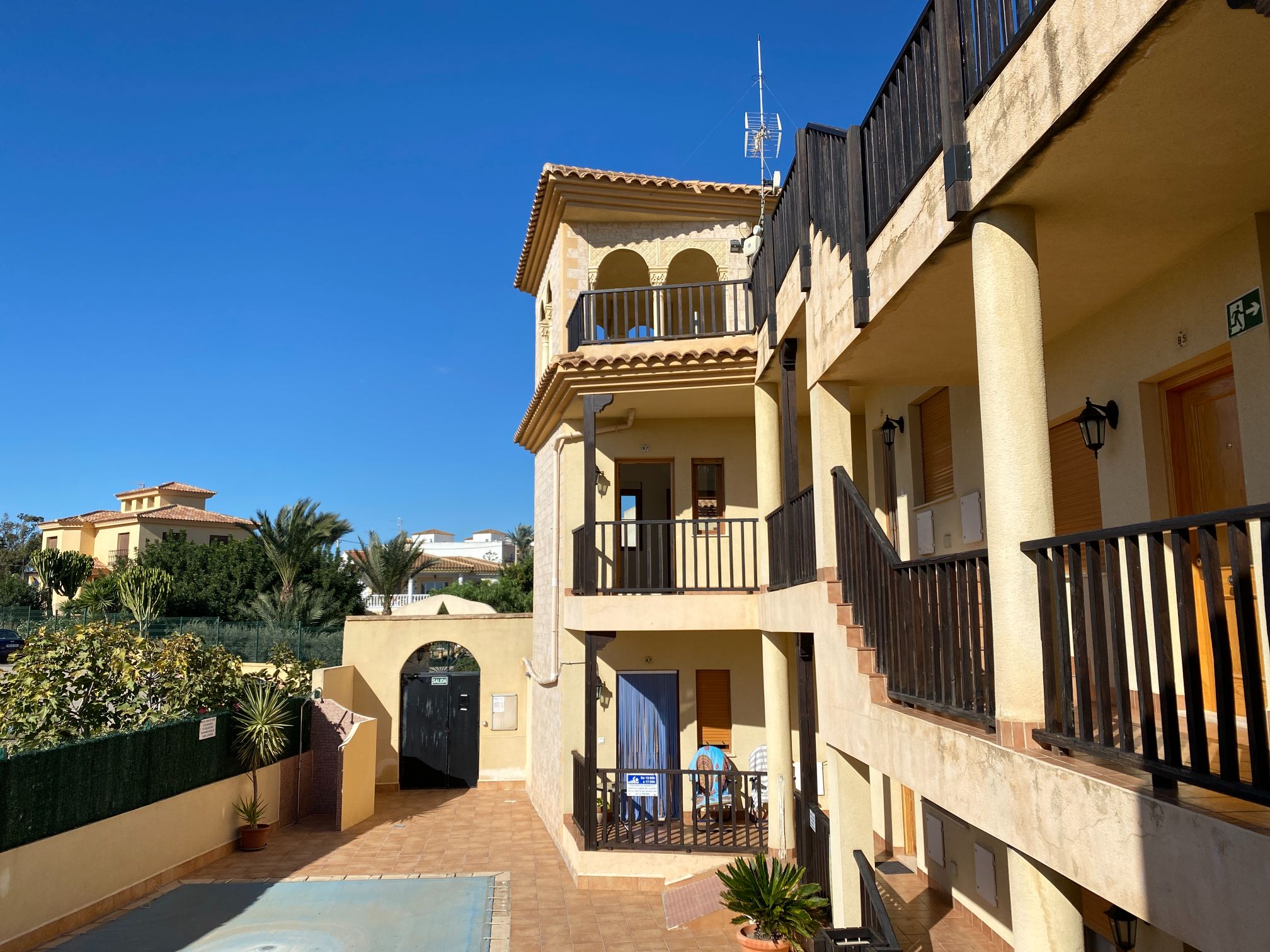 Corner Penthouse apartment with two bedrooms, two bathrooms, living room, and fitted kitchen integrated into the living room. In Palomares 500 meters from the beach. Located on the outskirts of Palomares, easy and quick access. Palomares it is located 2.2 km from Villaricos with marina and fishing, Vera Playa is its neighbour, 6.6 km from the Desert Spring golf course, Garrucha is 8 km away, Cuevas del Almanzora 10 km, village town 10,9 km away, Mojacar 15 km away, and 13,4 km away from the Mediterranean motorway…