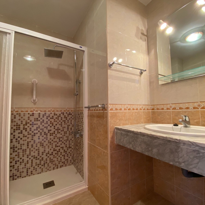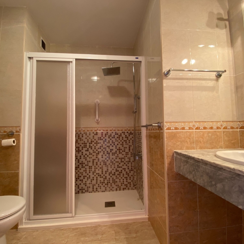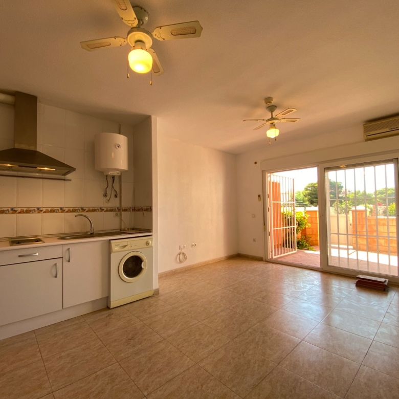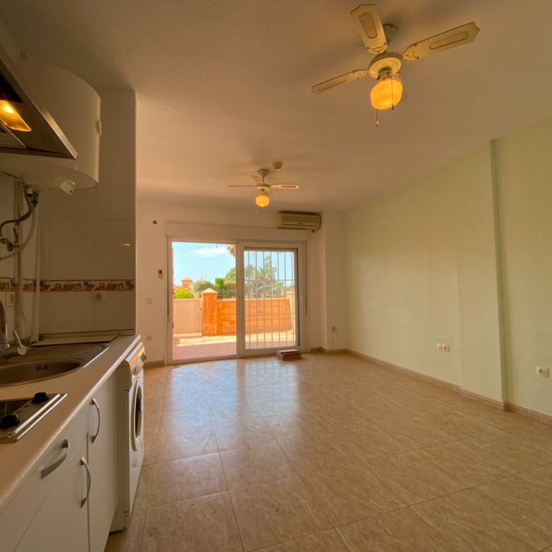 The house has a bedroom with a built-in wardrobe, a complete bathroom with a walking-in shower, a living room with air conditioning, a furnished and equipped American kitchen and a 14 M2 terrace with access through the living room, with direct access to the common areas; where you can enjoy the sun and good weather of Roquetas and have a good time with your loved ones.