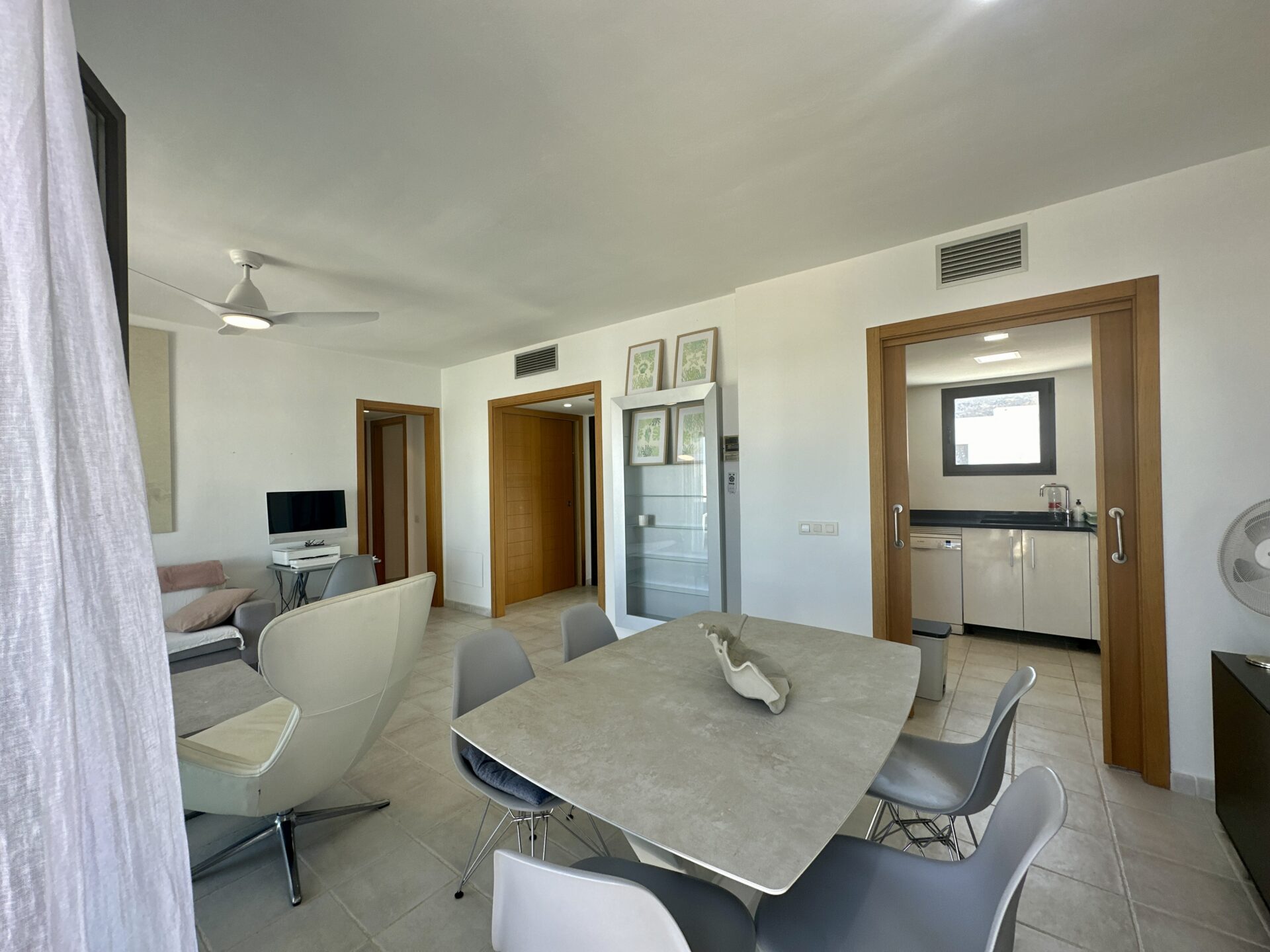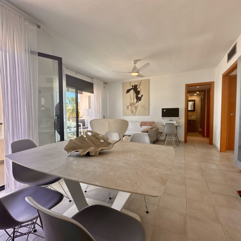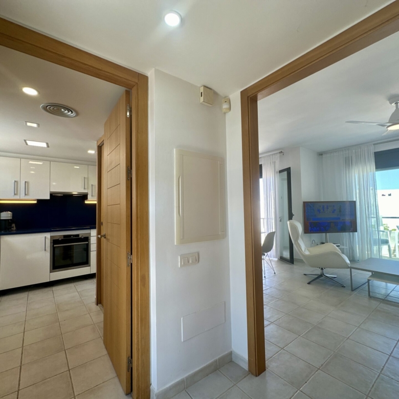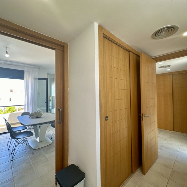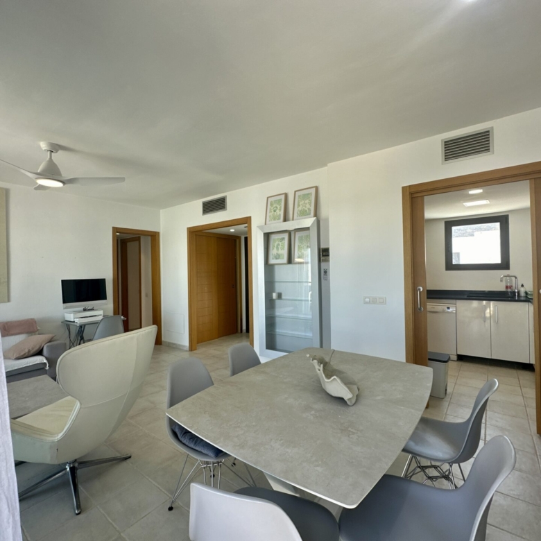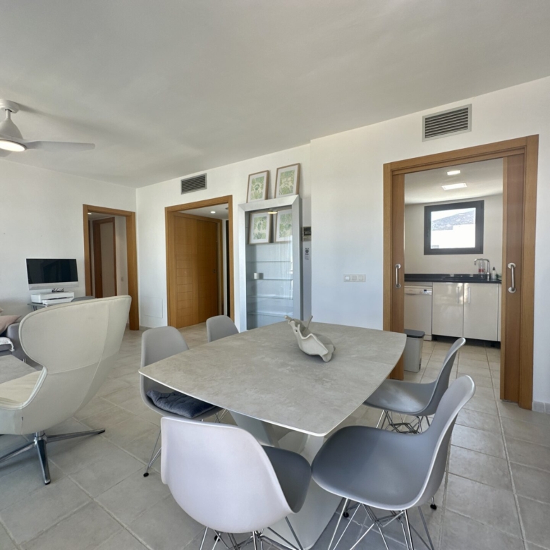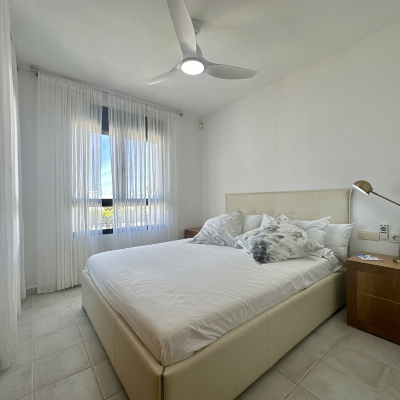 In addition to its stunning aesthetics, this property also offers practical amenities, including top-of-the-line furnishings and excellent holiday rental potential. Located within the prestigious Playa Macenas community, residents have access to a range of facilities, including a communal pool and tennis courts.