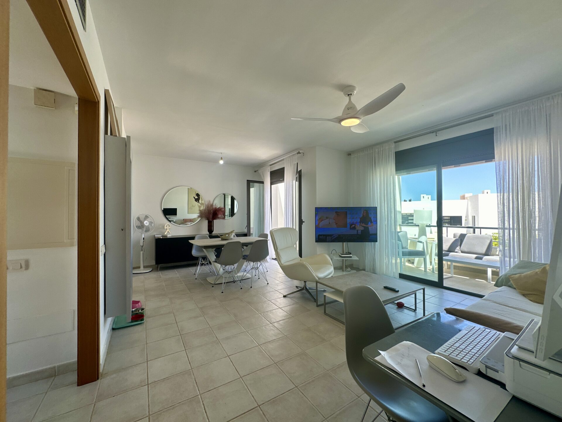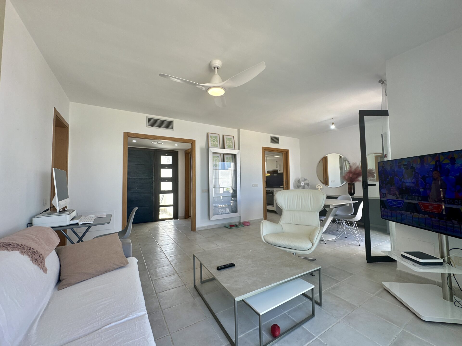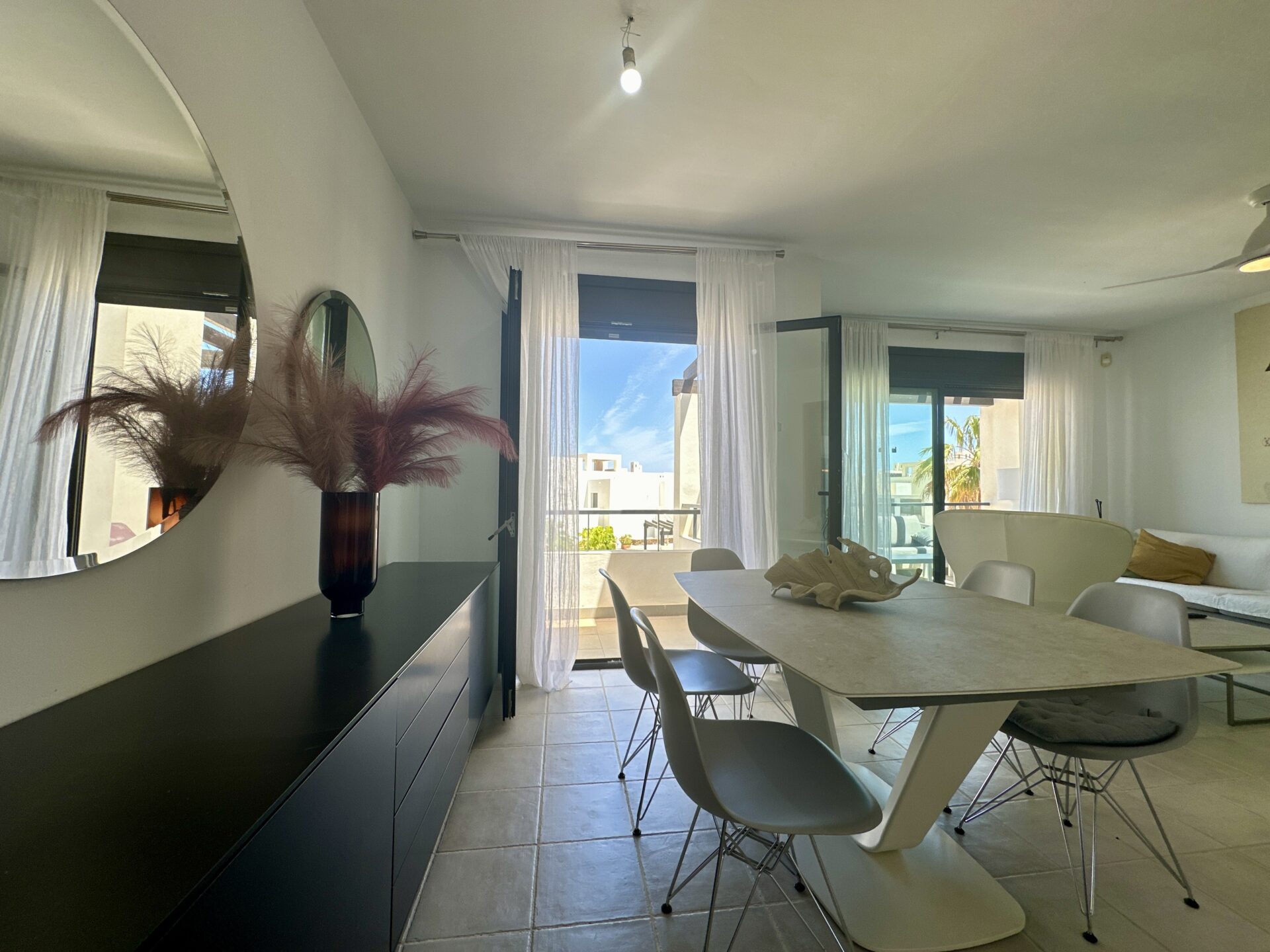 In addition to its stunning aesthetics, this property also offers practical amenities, including top-of-the-line furnishings and excellent holiday rental potential. Located within the prestigious Playa Macenas community, residents have access to a range of facilities, including a communal pool and tennis courts.