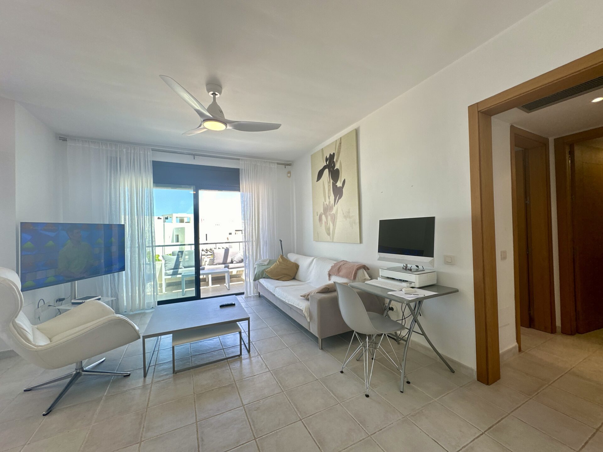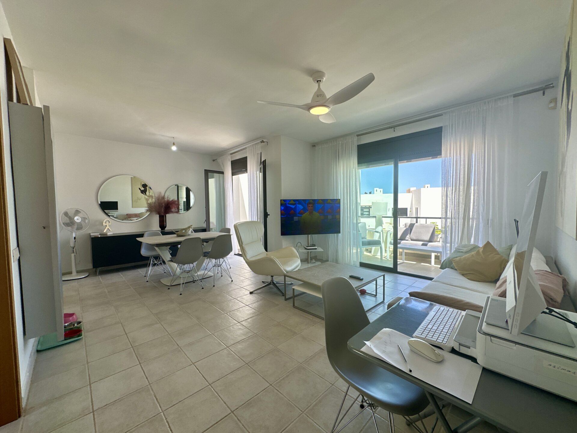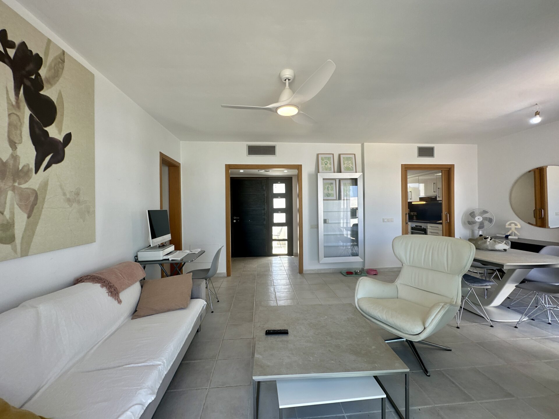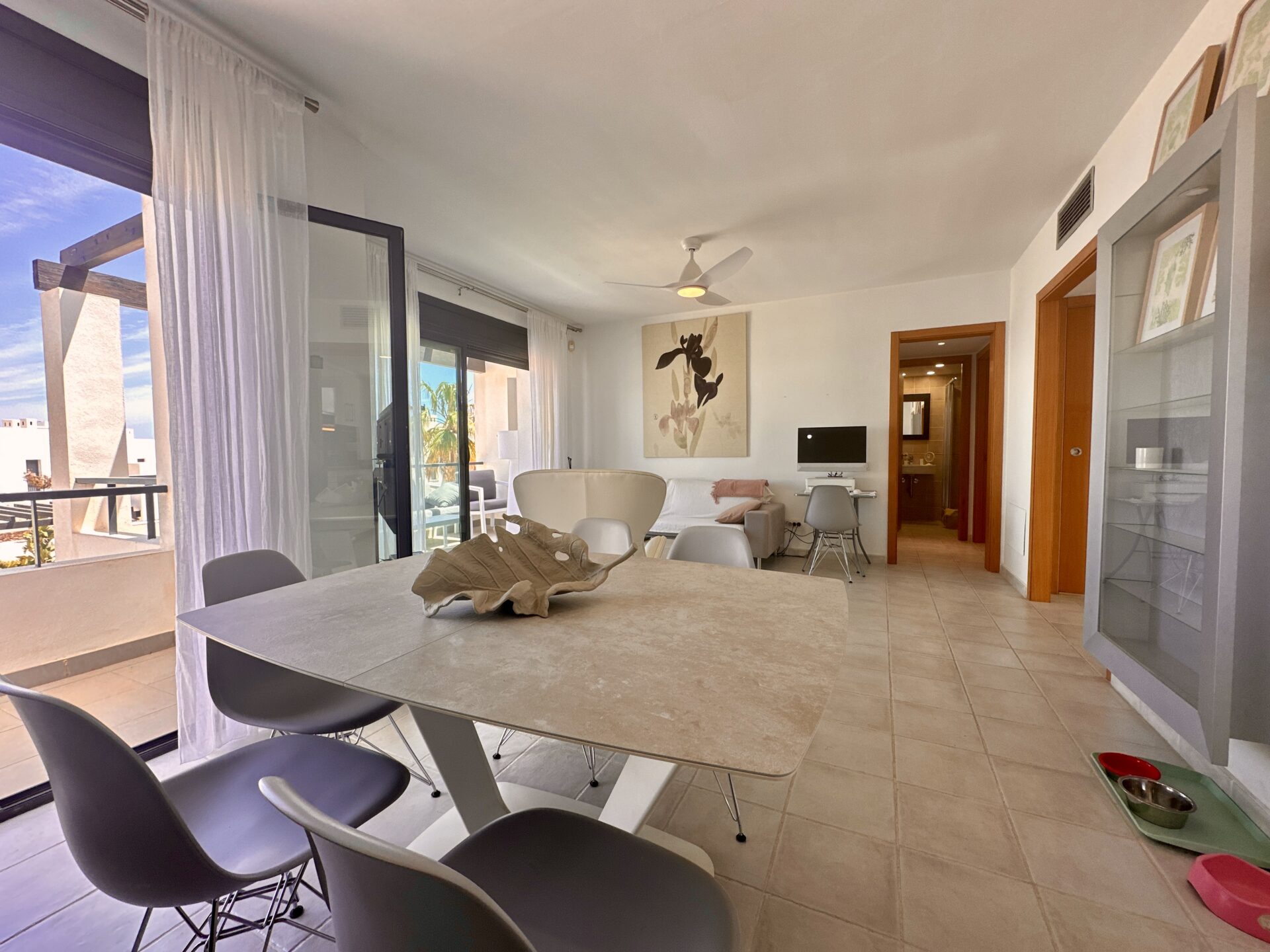 In addition to its stunning aesthetics, this property also offers practical amenities, including top-of-the-line furnishings and excellent holiday rental potential. Located within the prestigious Playa Macenas community, residents have access to a range of facilities, including a communal pool and tennis courts.