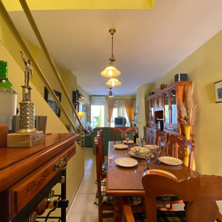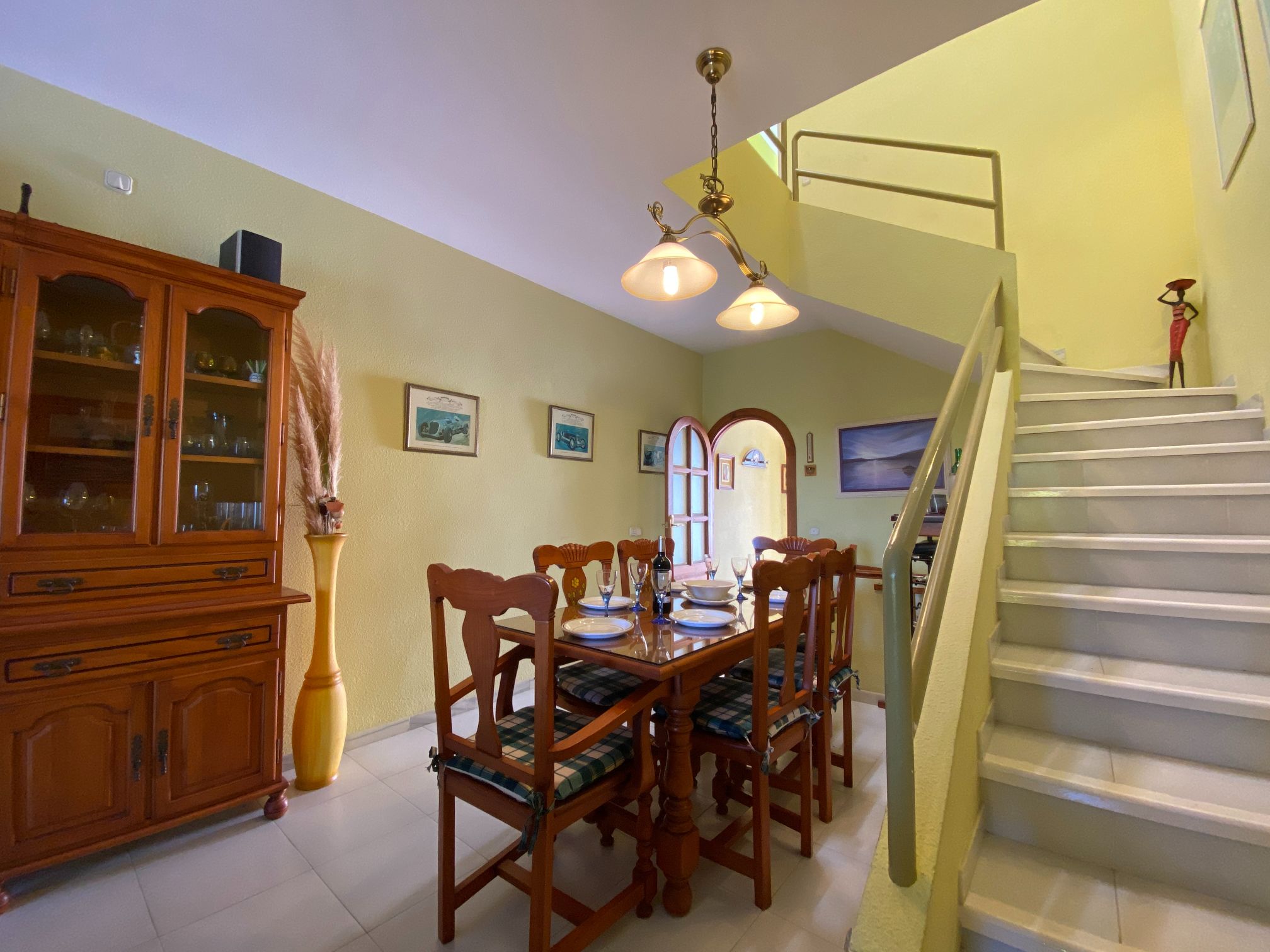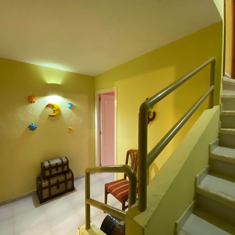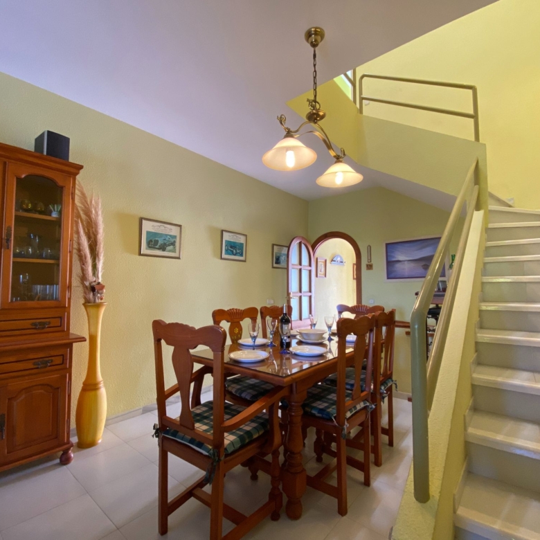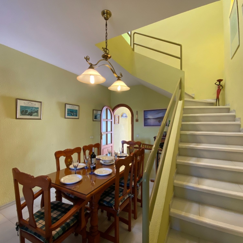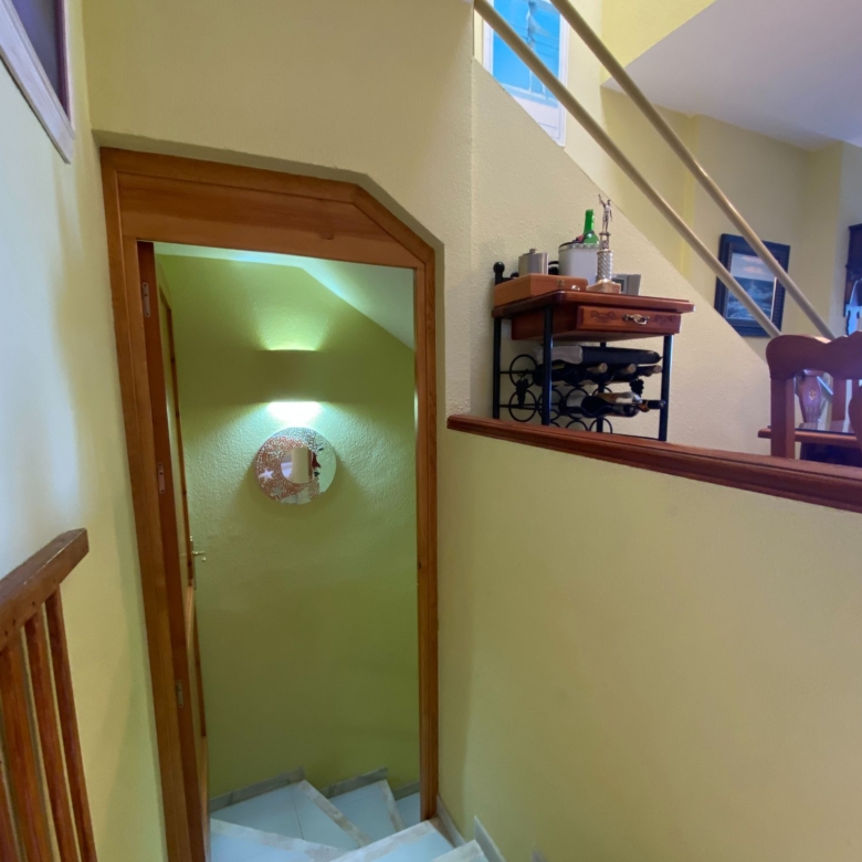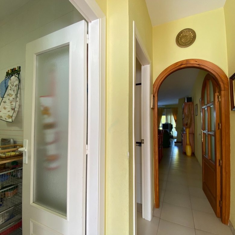 The house is located in a small urbanization of only 28/30 homes. It is accessed from the street directly to the house, from the entrance door it leads us to a small hall, and to its left we find the kitchen that is fully equipped and has a small patio, with a large awning to avoid the heat in summer. laundry area, which also leads to the interior of the garage.