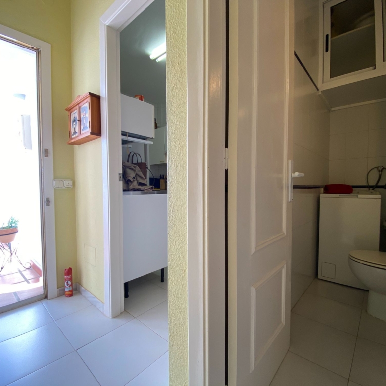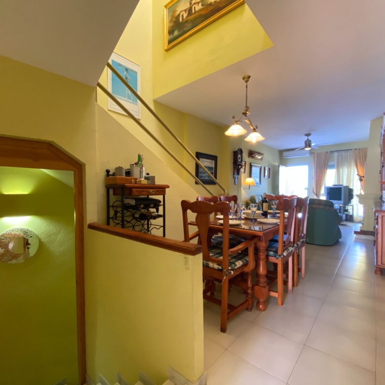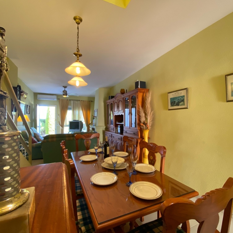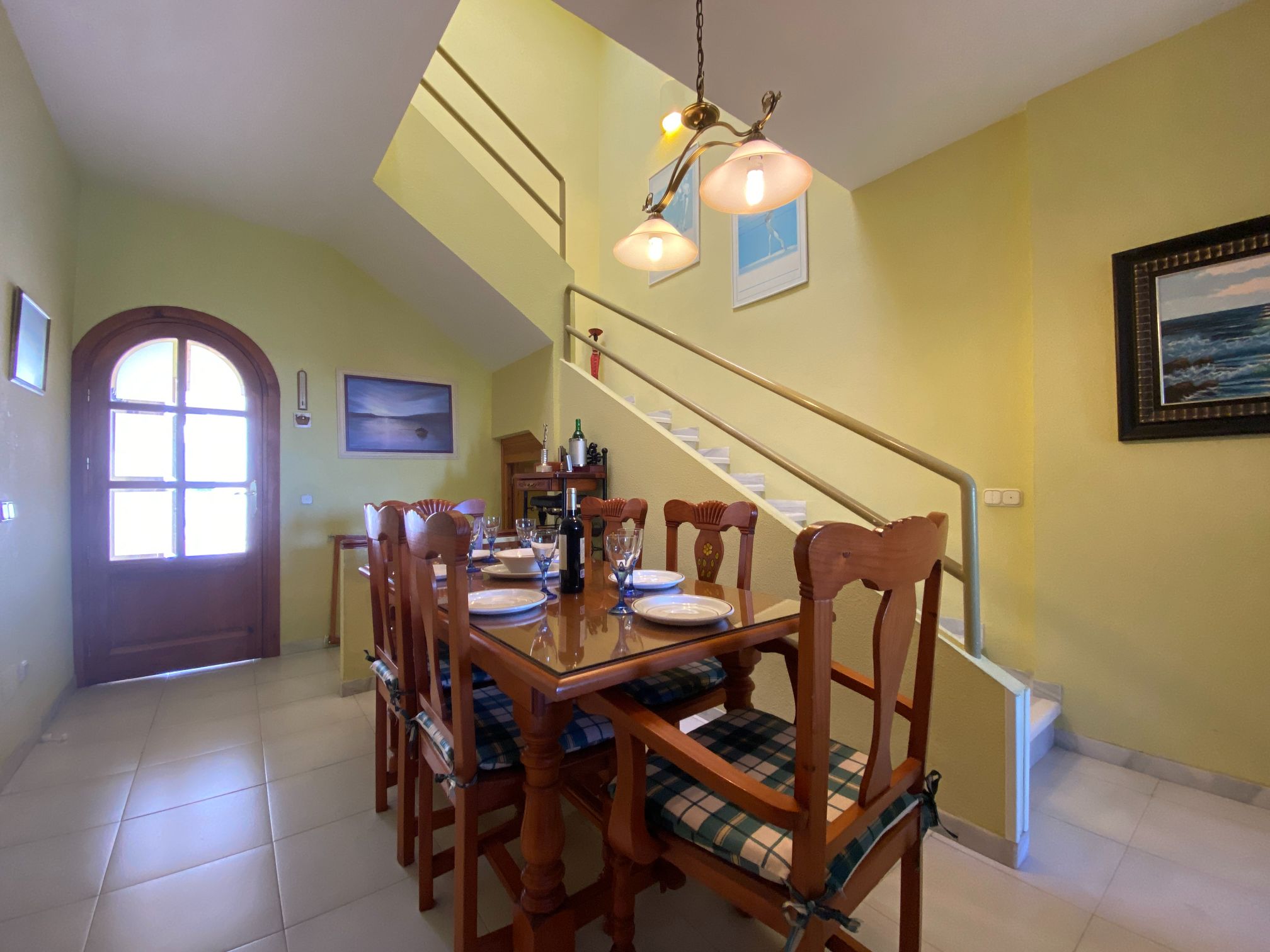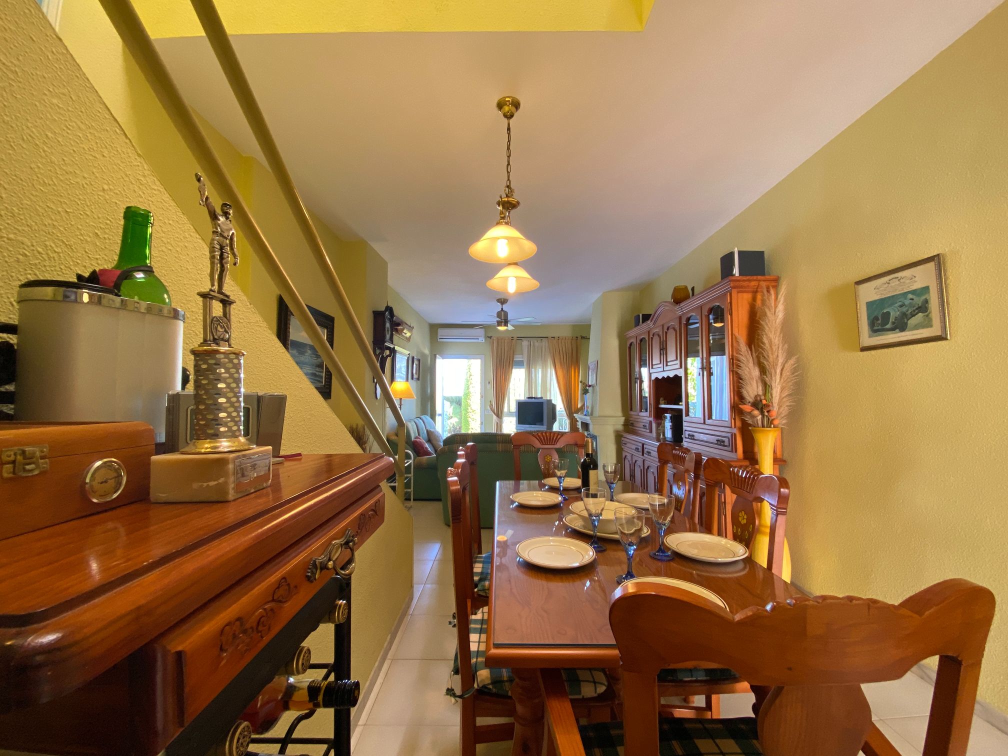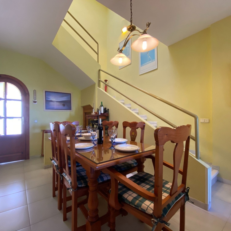 The house is located in a small urbanization of only 28/30 homes. It is accessed from the street directly to the house, from the entrance door it leads us to a small hall, and to its left we find the kitchen that is fully equipped and has a small patio, with a large awning to avoid the heat in summer. laundry area, which also leads to the interior of the garage.