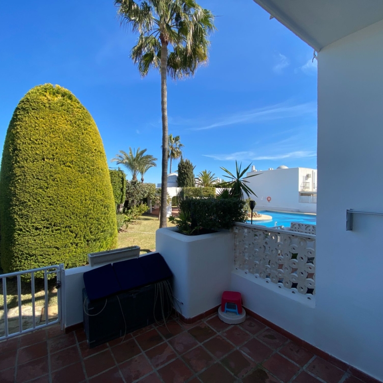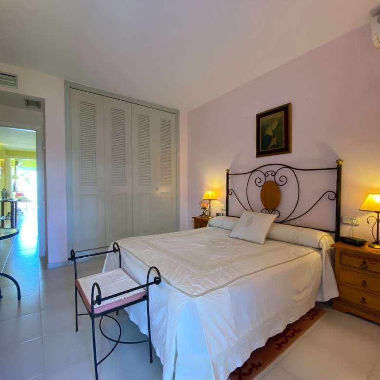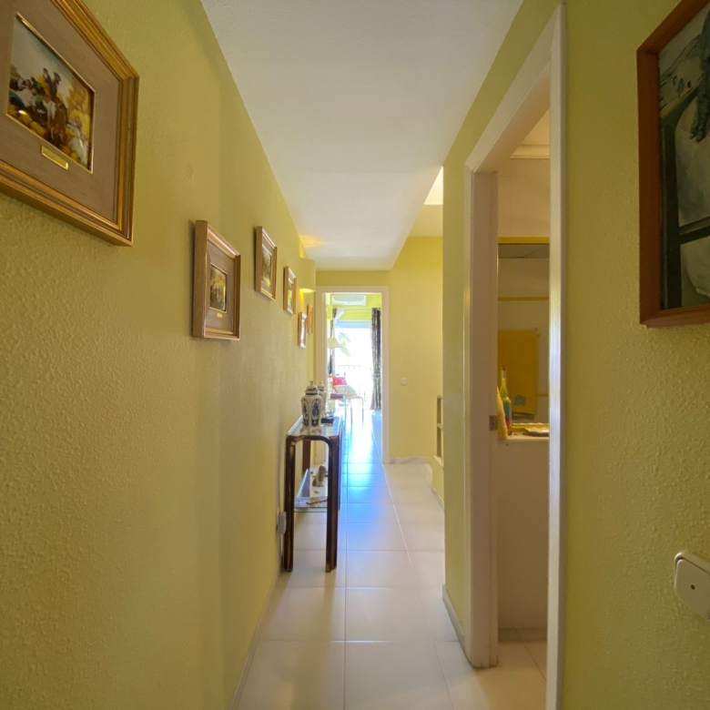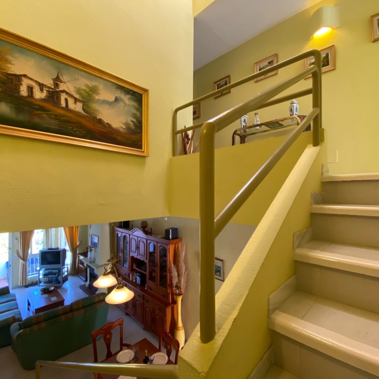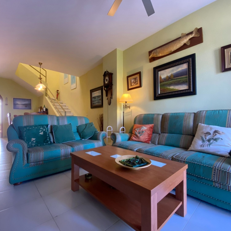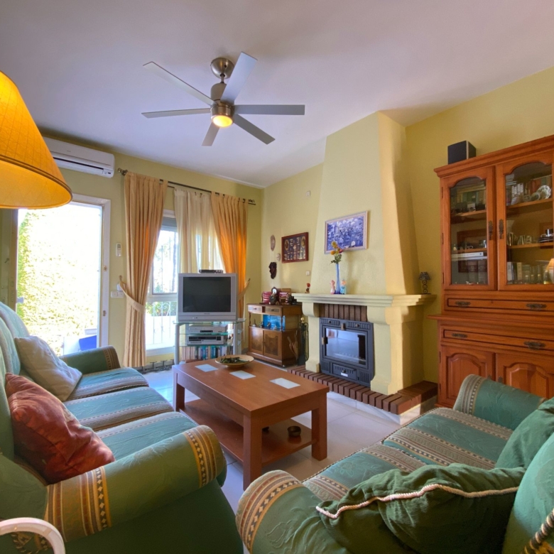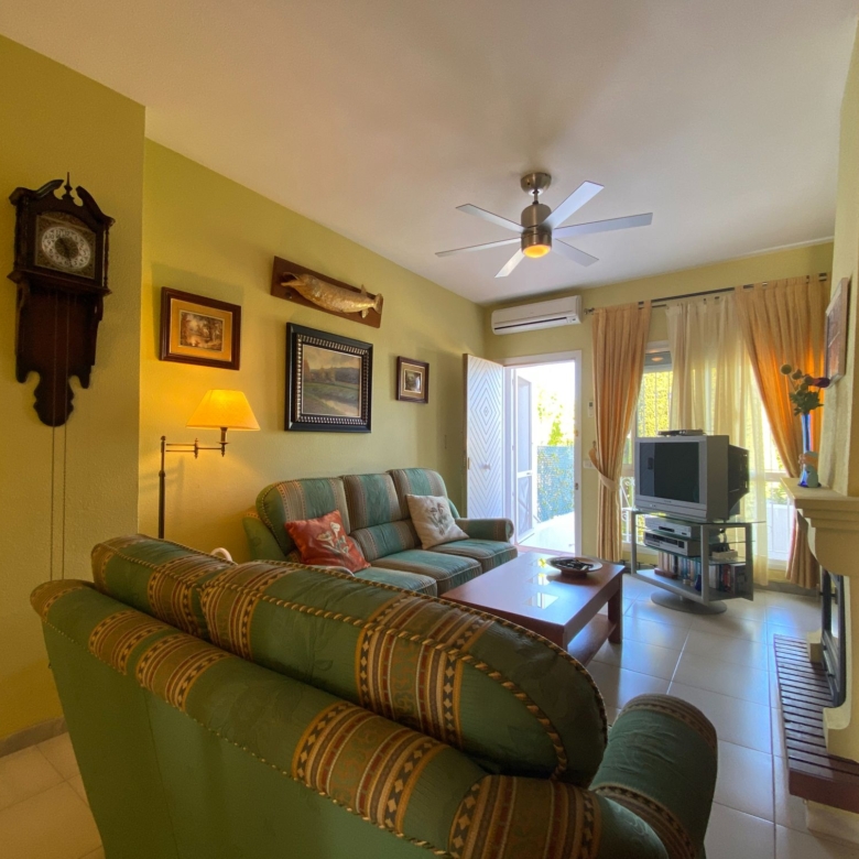 From the entrance – hall the rooms are distributed, next to the kitchen we find a small courtesy toilet, and just after we go directly to the living room where we have a beautiful fireplace for cold and wet days, from the living room we access to the back terrace with views of the common areas, gardens and the residential pool.
