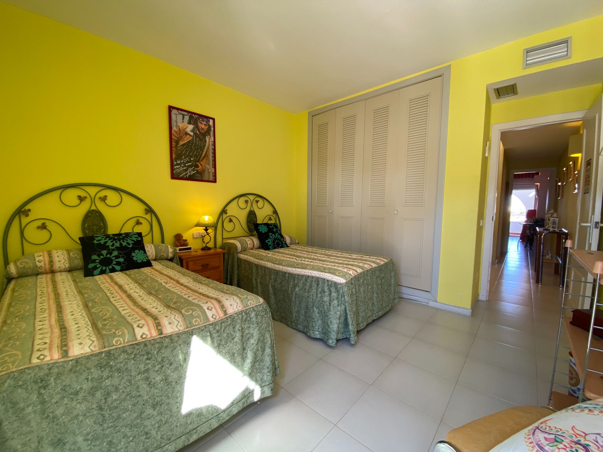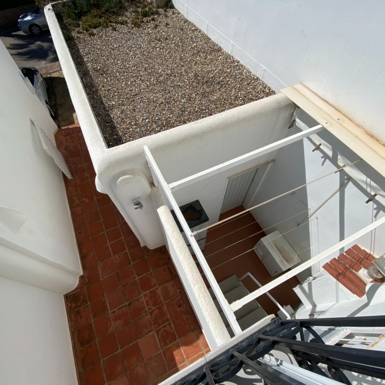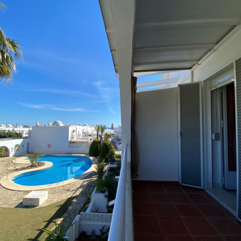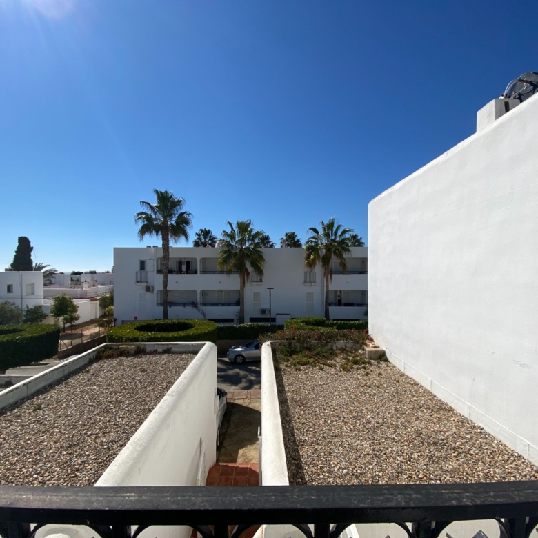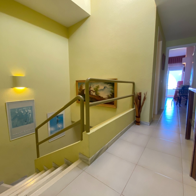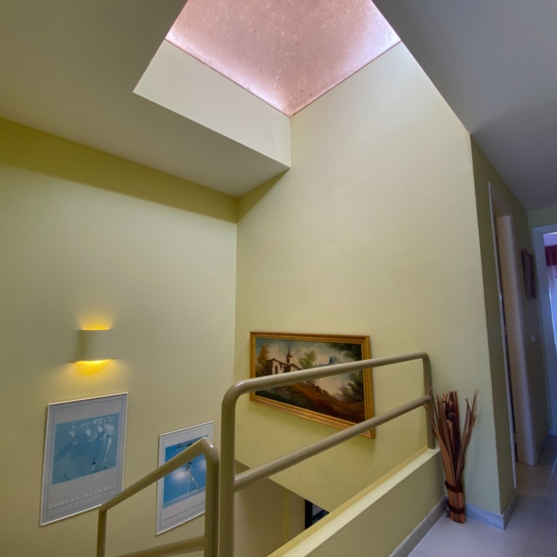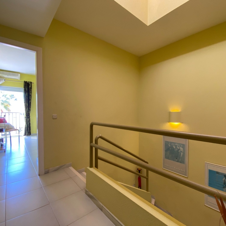 On the first floor, there are two large bedrooms with a large bathroom to share with built-in wardrobes. The master bedroom has a small terrace with views of the mountains, the pool and the town of Mojacar and Garrucha, and the other bedroom has a balcony with views of the sea and the main street. The entire plant is very illuminated thanks to a huge skylight in the upper part of the ceiling.
