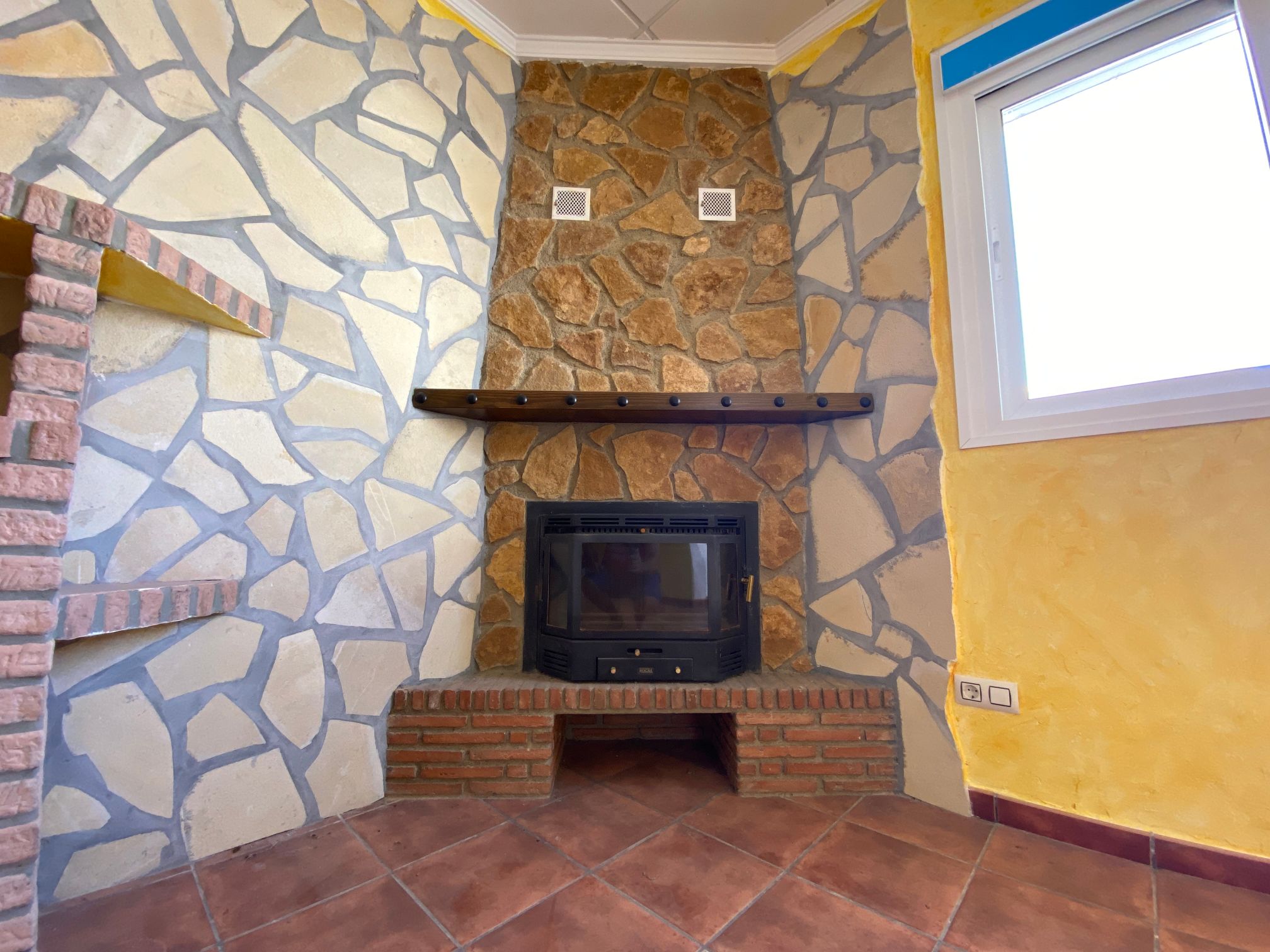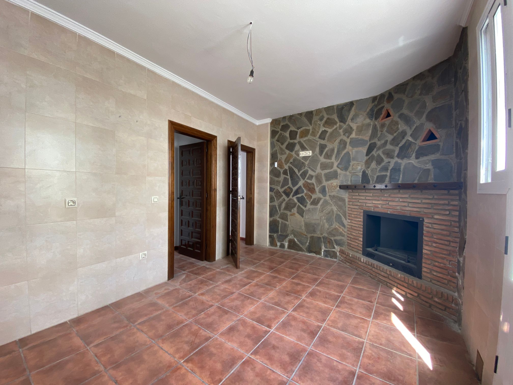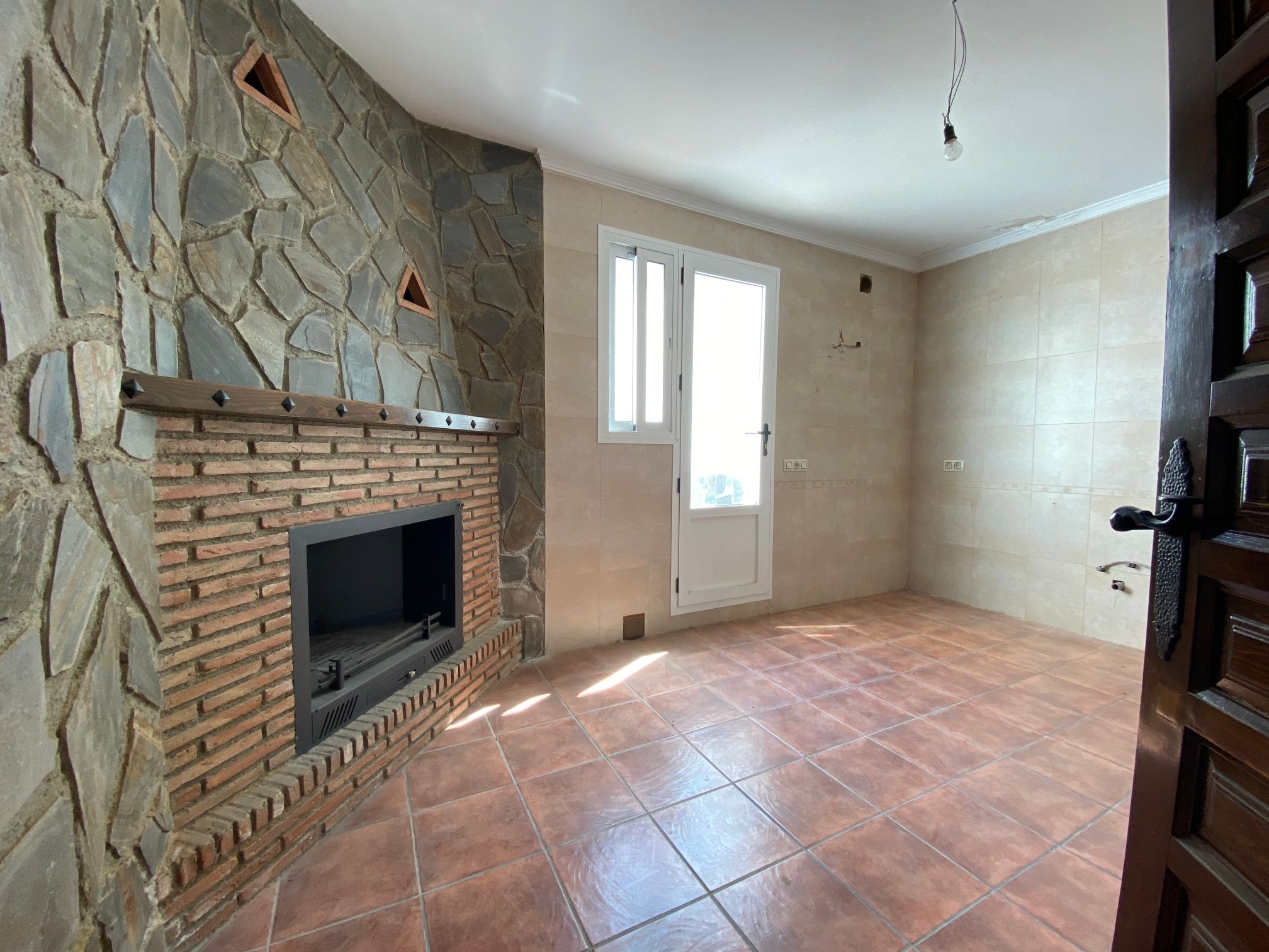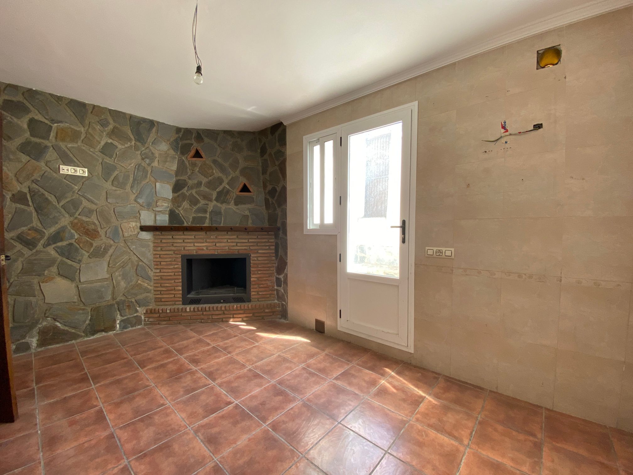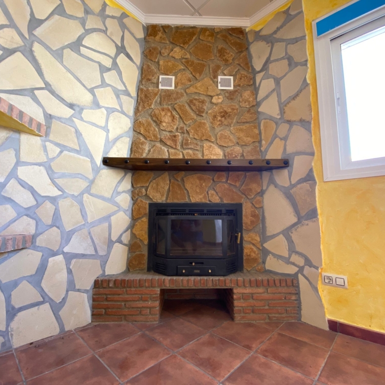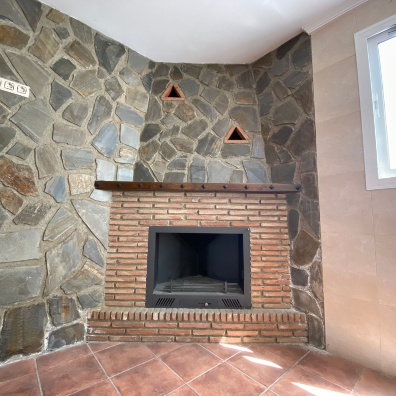 Excellent house with two floors. On the first floor, there is a rustic living room with a fireplace and stone walls, a kitchen with a patio, a bedroom and a bathroom. On the second floor, there are three bedrooms, one of them with a built-in wardrobe, a bathroom and a terrace. The house has a patio from the kitchen and an elevated door approximately one meter above the ground with access to a patio/solar. It is in very good condition