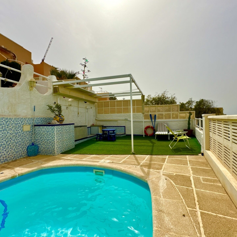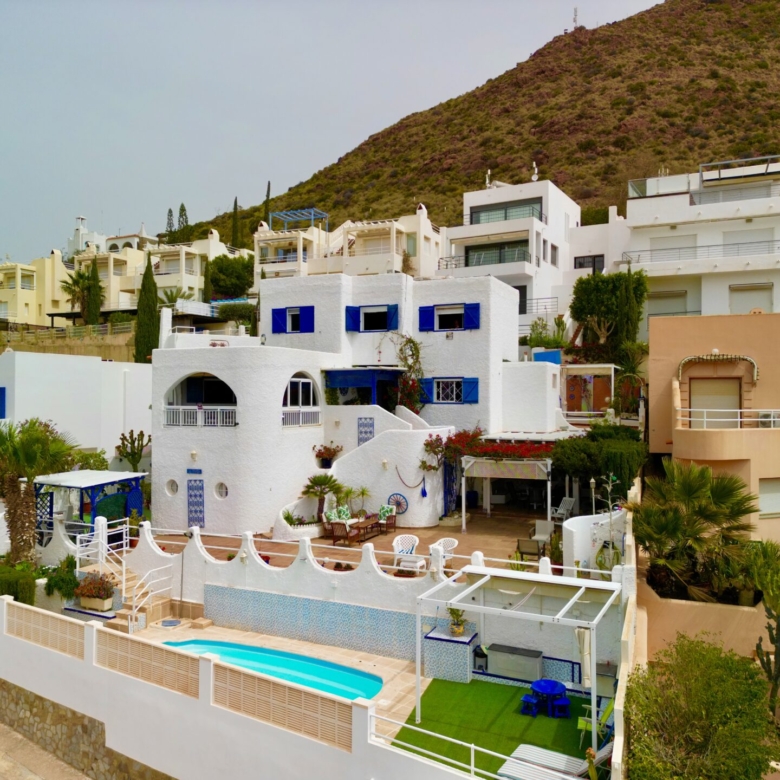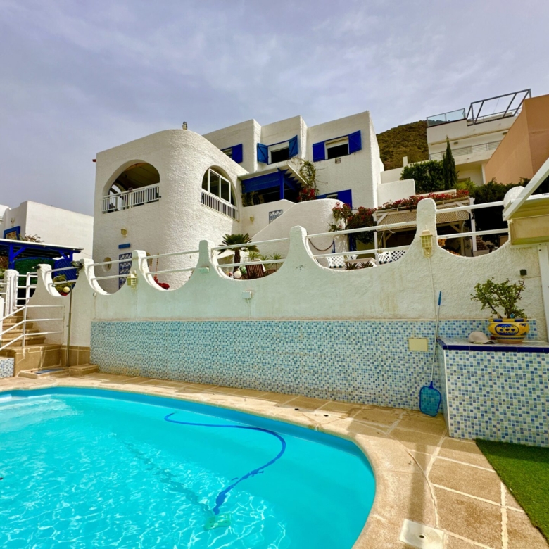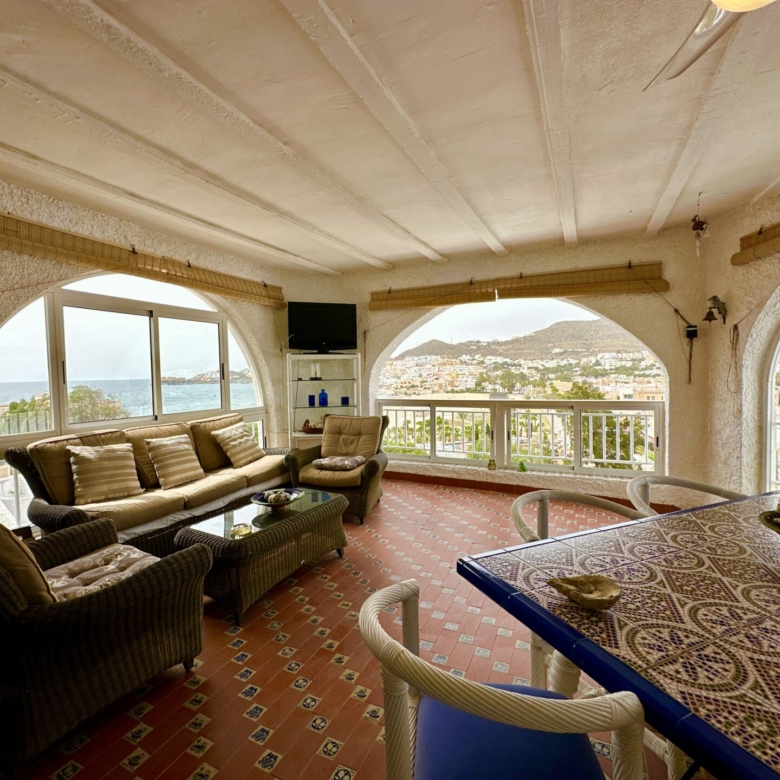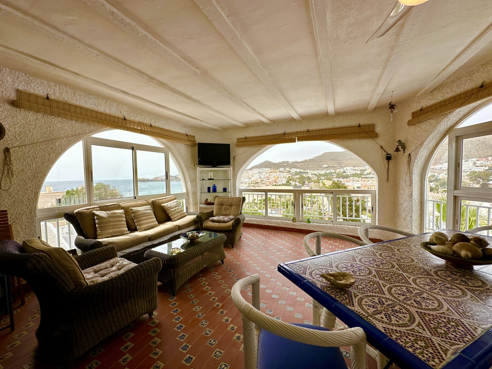 Step into the epitome of coastal living with this exquisite sea-view beach villa nestled in San Jose. Boasting 5 bedrooms and 4 bathrooms, this property offers expansive interiors designed to cater to the comfort of your entire family. Additionally, it features a fully equipped one-bedroom independent apartment, ideal for accommodating guests in style, complete with a bathroom, living room, full kitchen, and private terrace.