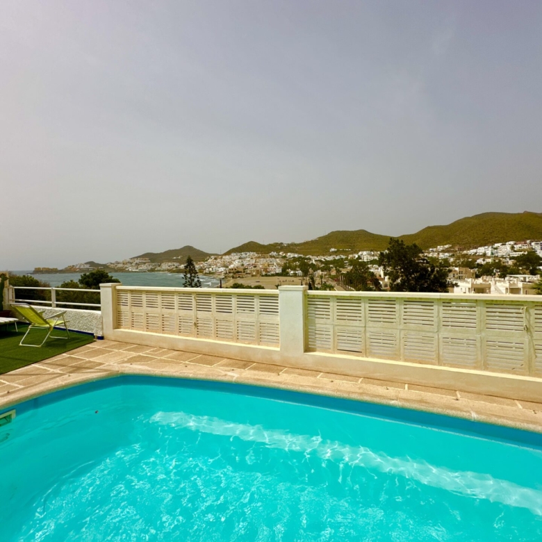 Perfectly situated just 150 meters from the beach, this villa offers unparalleled vistas of the entire bay of San Jose and the charming town below. Whether you’re soaking in the sunsets from the terrace or unwinding by the poolside, every moment is infused with the tranquility of the seascape.