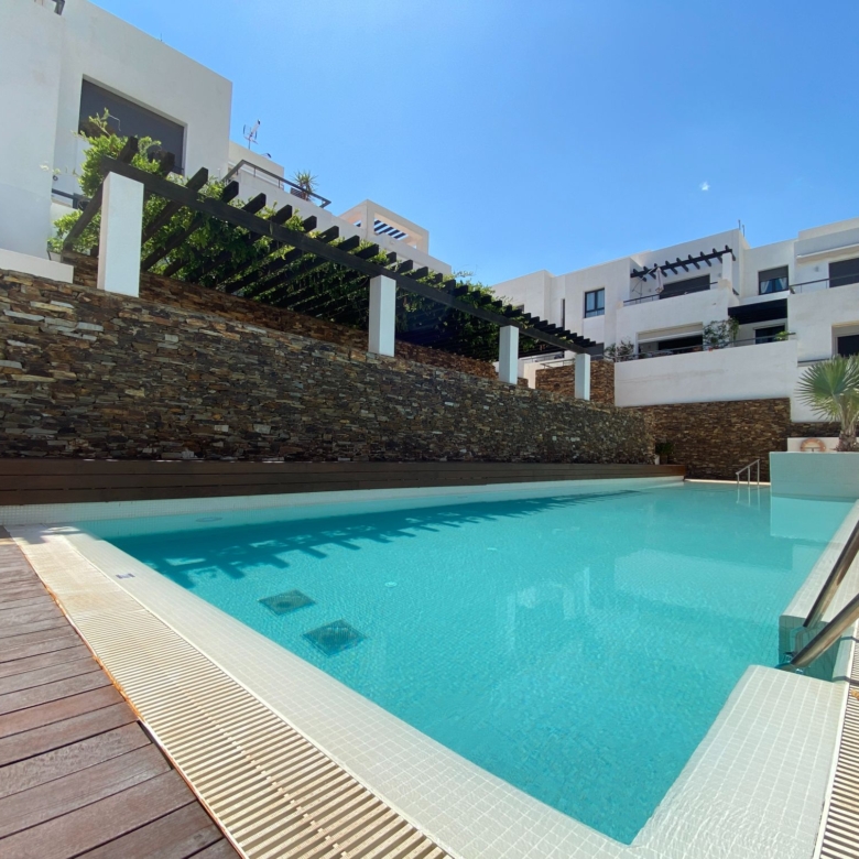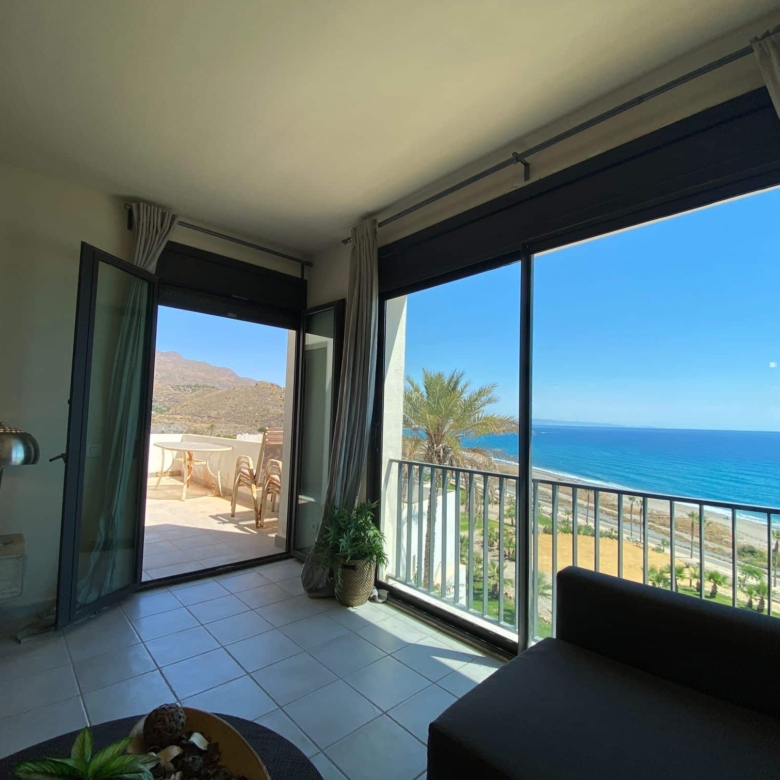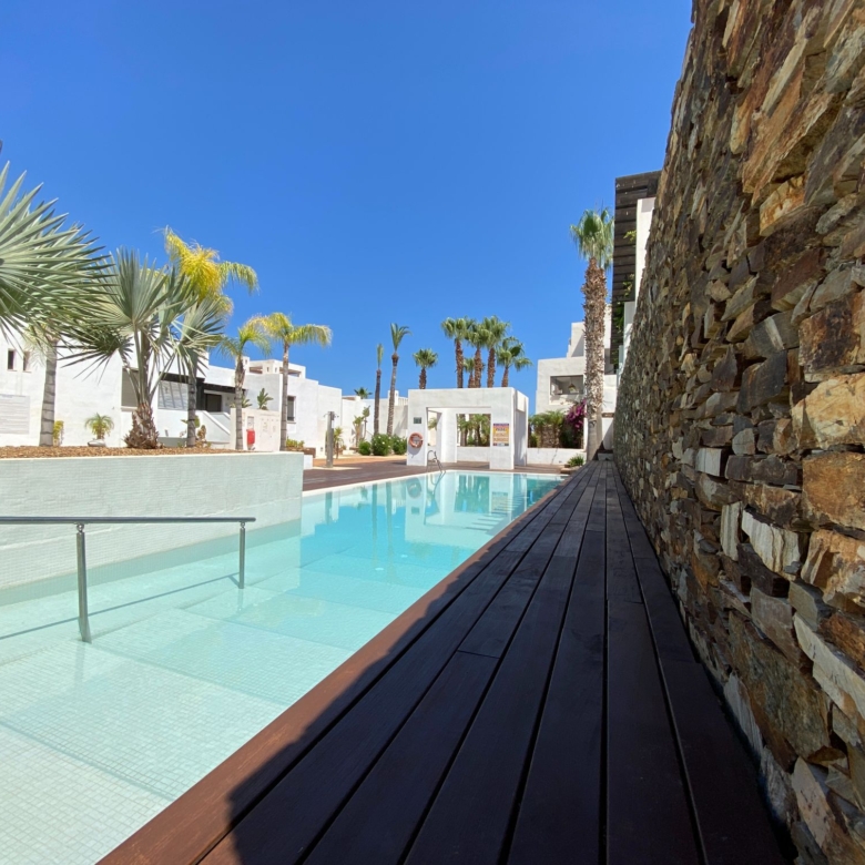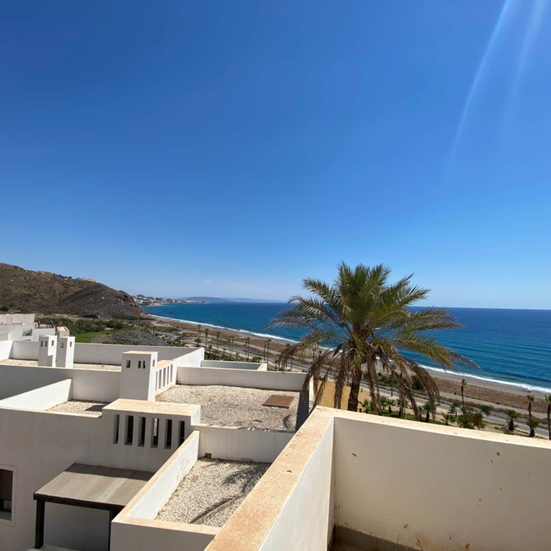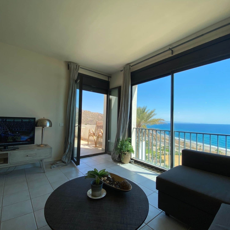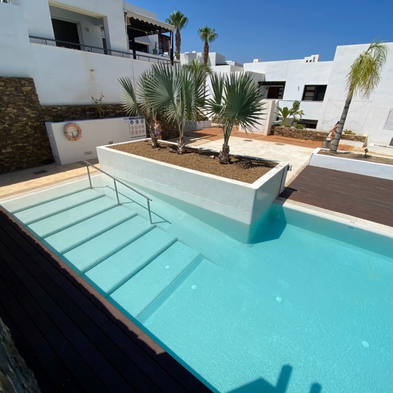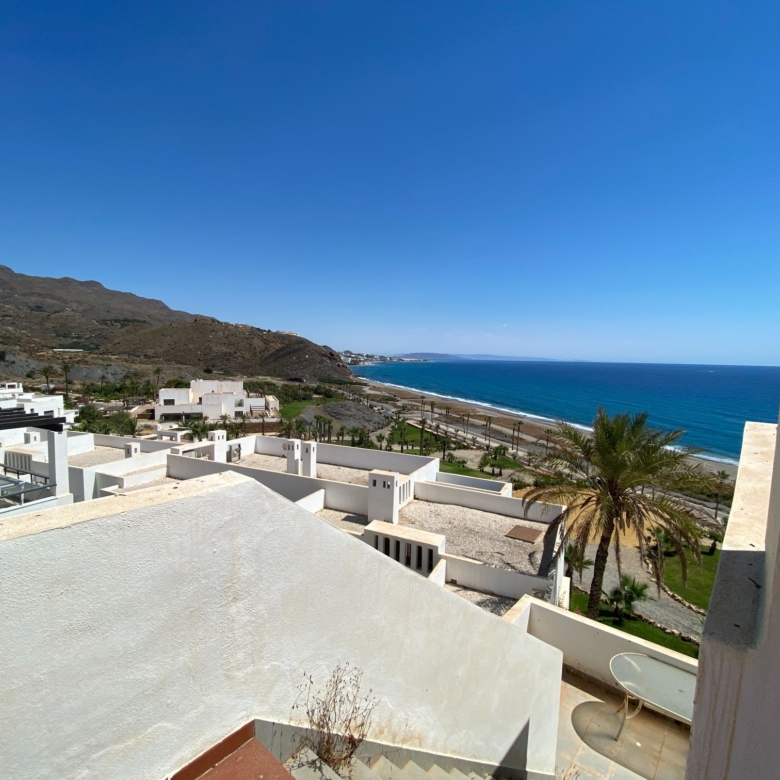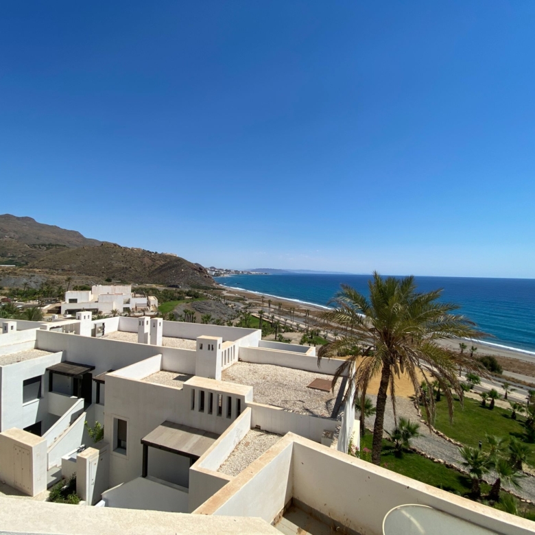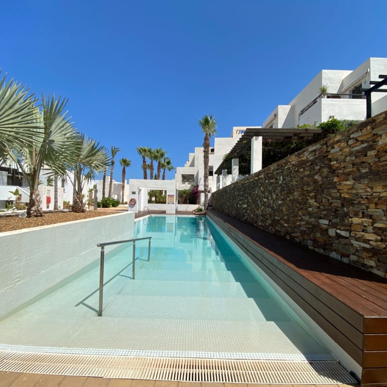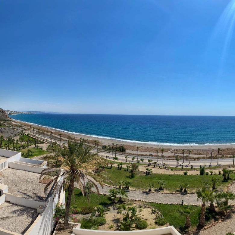 Playa Macenas beach resort is five minutes drive along the coast from Mojacar in the province of Almeria. This is an excellent location for a family holiday or a golfing break. The complex differs from the majority found in Spain with its superior build, architectural design, and high-quality finish. There are many top golf courses within a short drive of the resort including Desert Springs, Valle Des Este, and Aguillas. The nightlife of Mojacar provides an endless supply of evening entertainment in the form of restaurants, bars, and clubs. For the family there are numerous swimming pools on the resort plus off the resort there is 17km of unspoiled beaches to choose from, two great water parks, go-karting and also the mini Hollywood Studios at the Tabernas Desert. The romantic white village of Old Mojacar is perched high on the nearby hilltop.