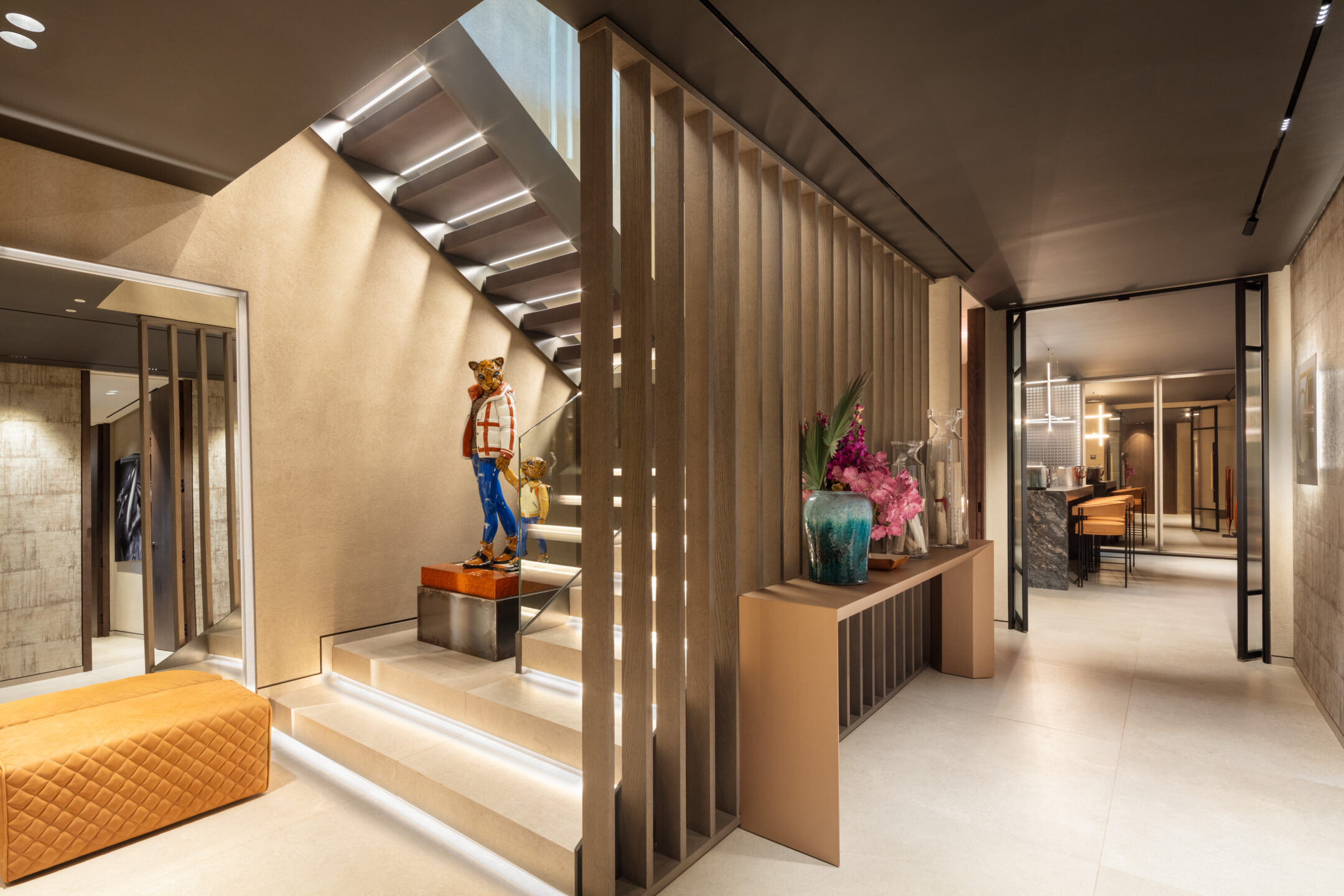Nestled within a gated community, Celeste 11 captivates with its modern architecture, featuring sleek lines and a geometric facade that commands attention. The exterior, adorned with neutral-toned natural materials, exudes elegance at every turn.