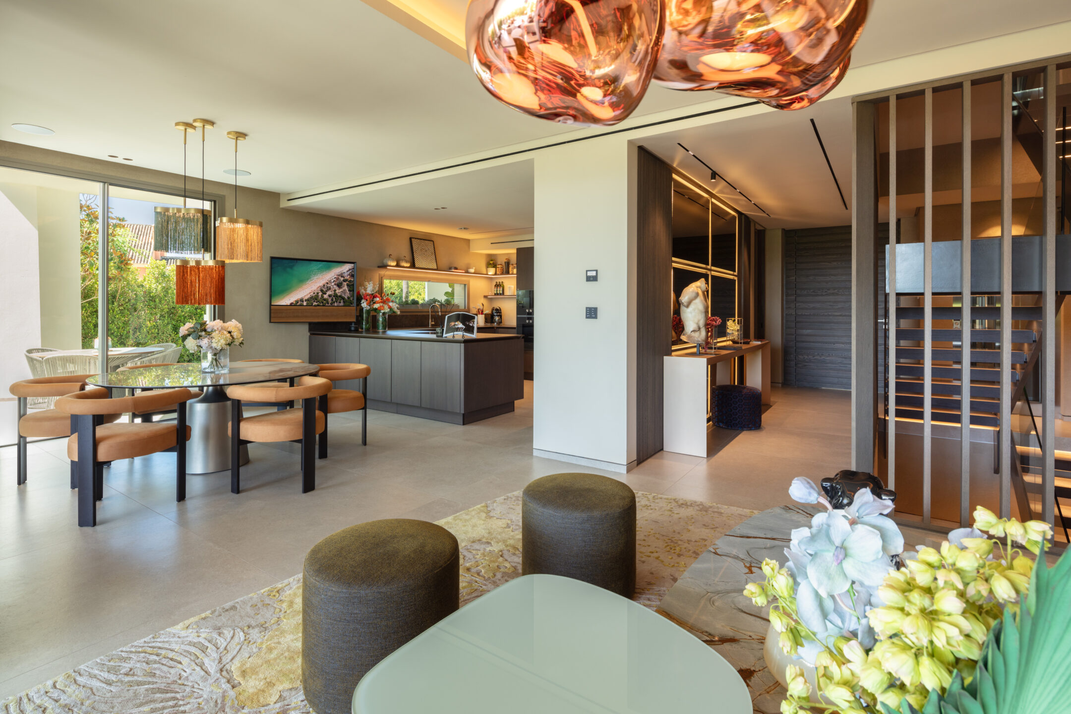 Step into luxury as the property unfolds to reveal multiple covered terraces, perfect for outdoor alfresco dining and relaxation. ️ Residents can seamlessly enjoy the outdoors, even during brief rain showers. A private pool adds to the allure, while the bespoke solarium treats you to panoramic views of Nueva Andalucia, La Concha, the Mediterranean Sea, and Gibraltar.