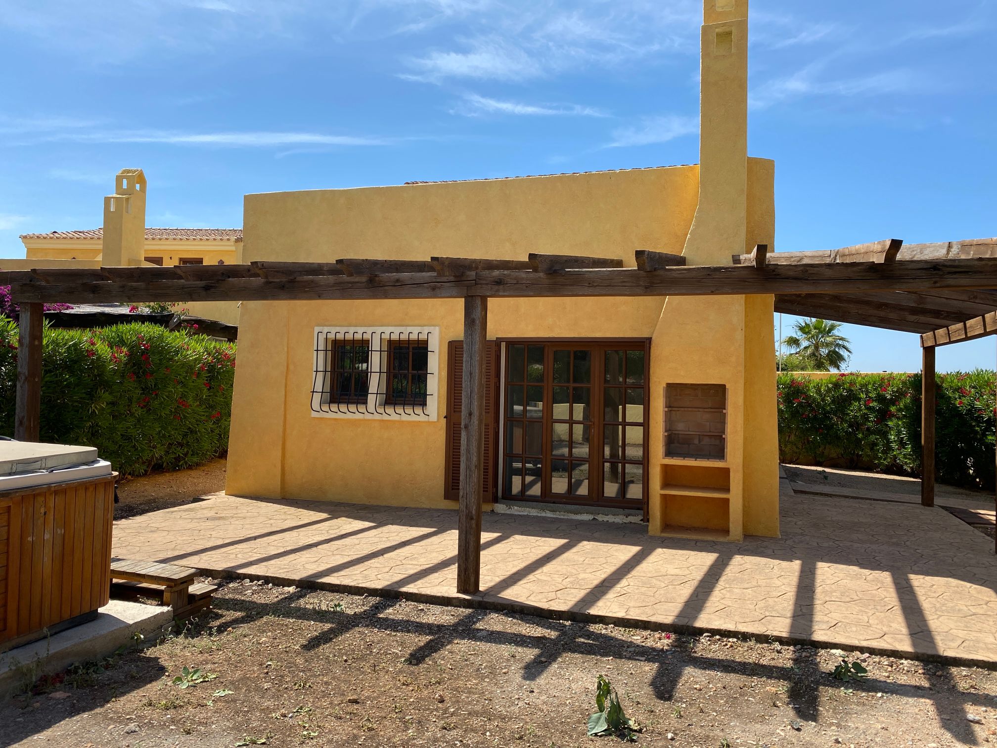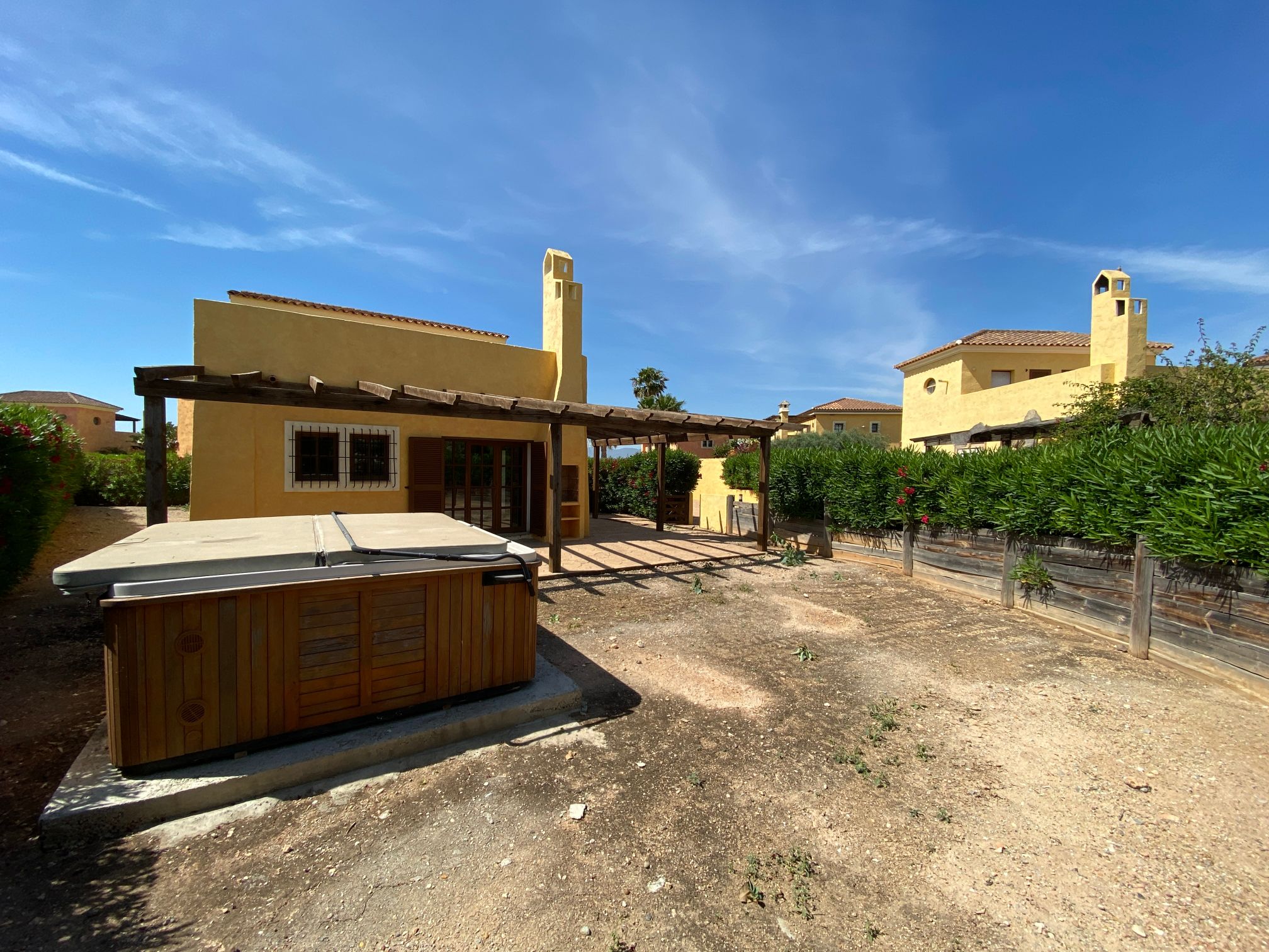 Our modern Pueblo Villas are of course built with all mod cons, with large terraces and pergolas in their own private gardens, but in clusters sharing beautiful individually landscaped gardens and swimming pools in semi-closed communities, with all the cost benefits implied. They are very tranquil and private.