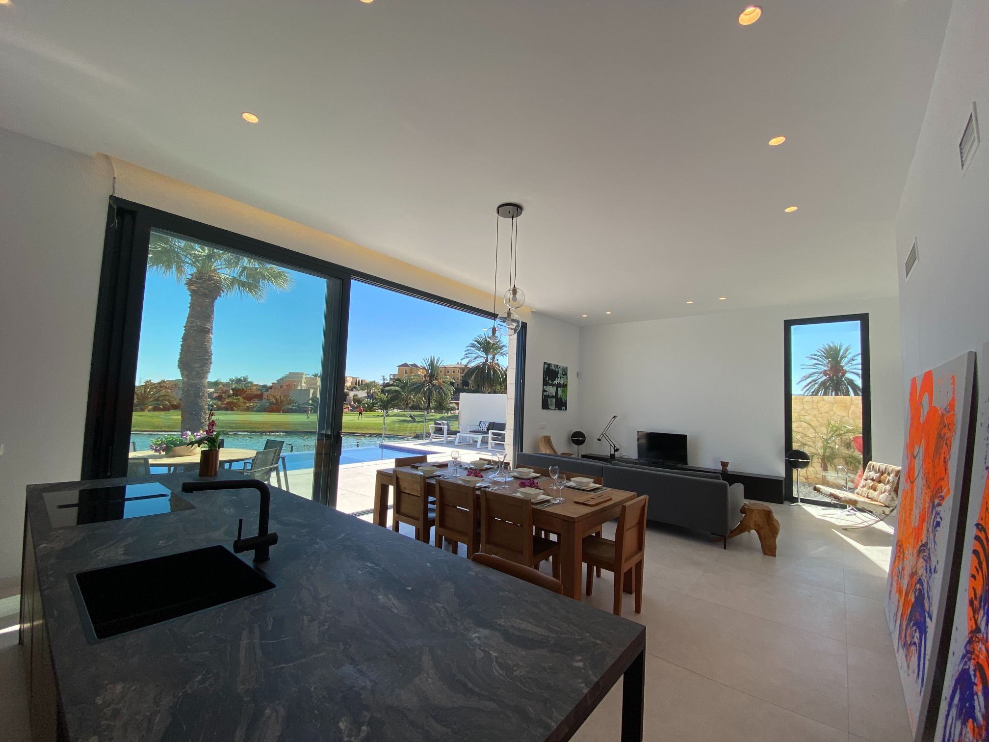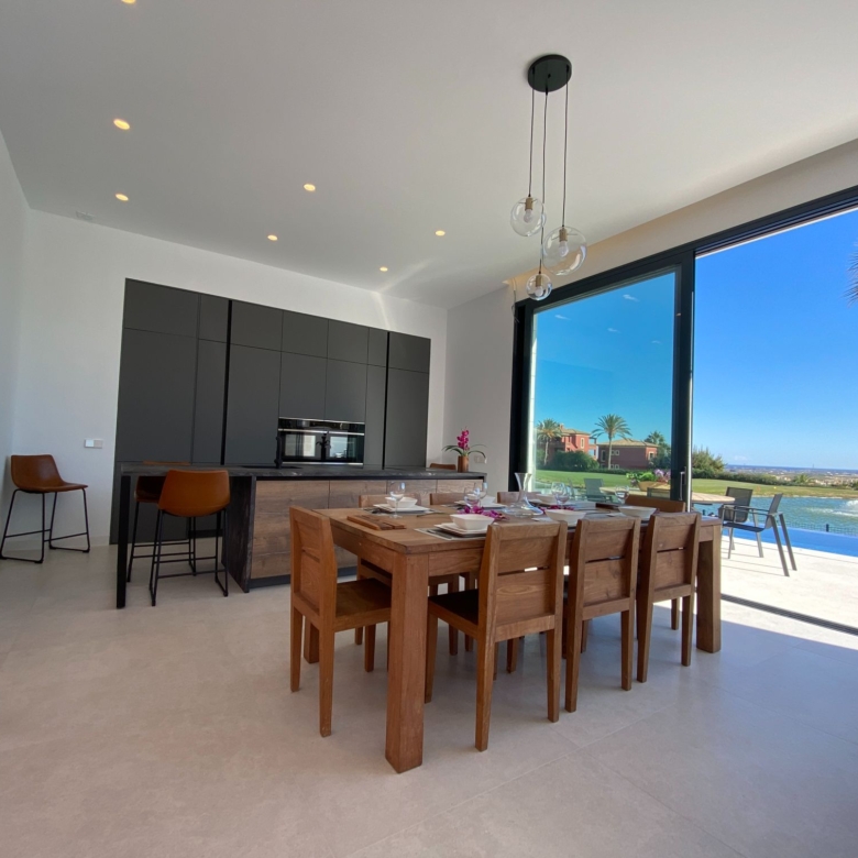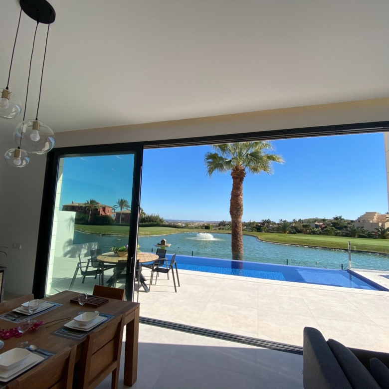 The properties are set in spacious yet manageable plots offering spectacular views over the lake and the 5th fairway of the Valle del Este golf course. Featuring large open plan living rooms and state of the art kitchens and dining rooms, the full height floor to ceiling windows open out to the front of your villa integrating the outdoor landscape with the interior enabling you to enjoy the Mediterranean climate and landscape to the full.