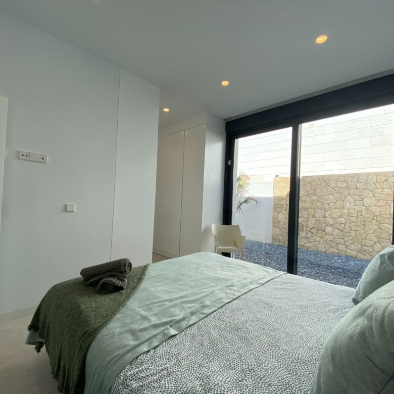 Double glazed windows and motorized aluminium blinds in the bedrooms