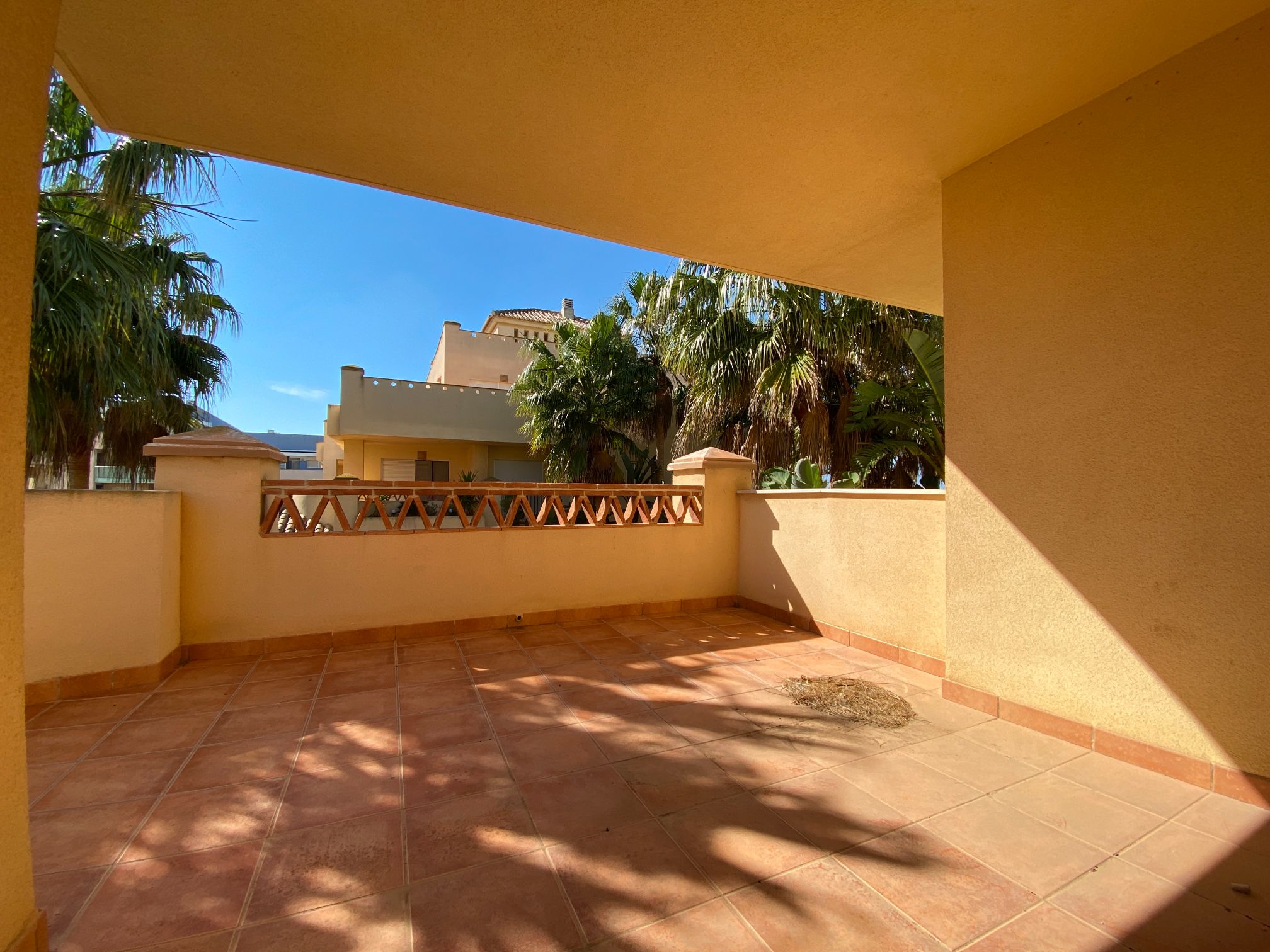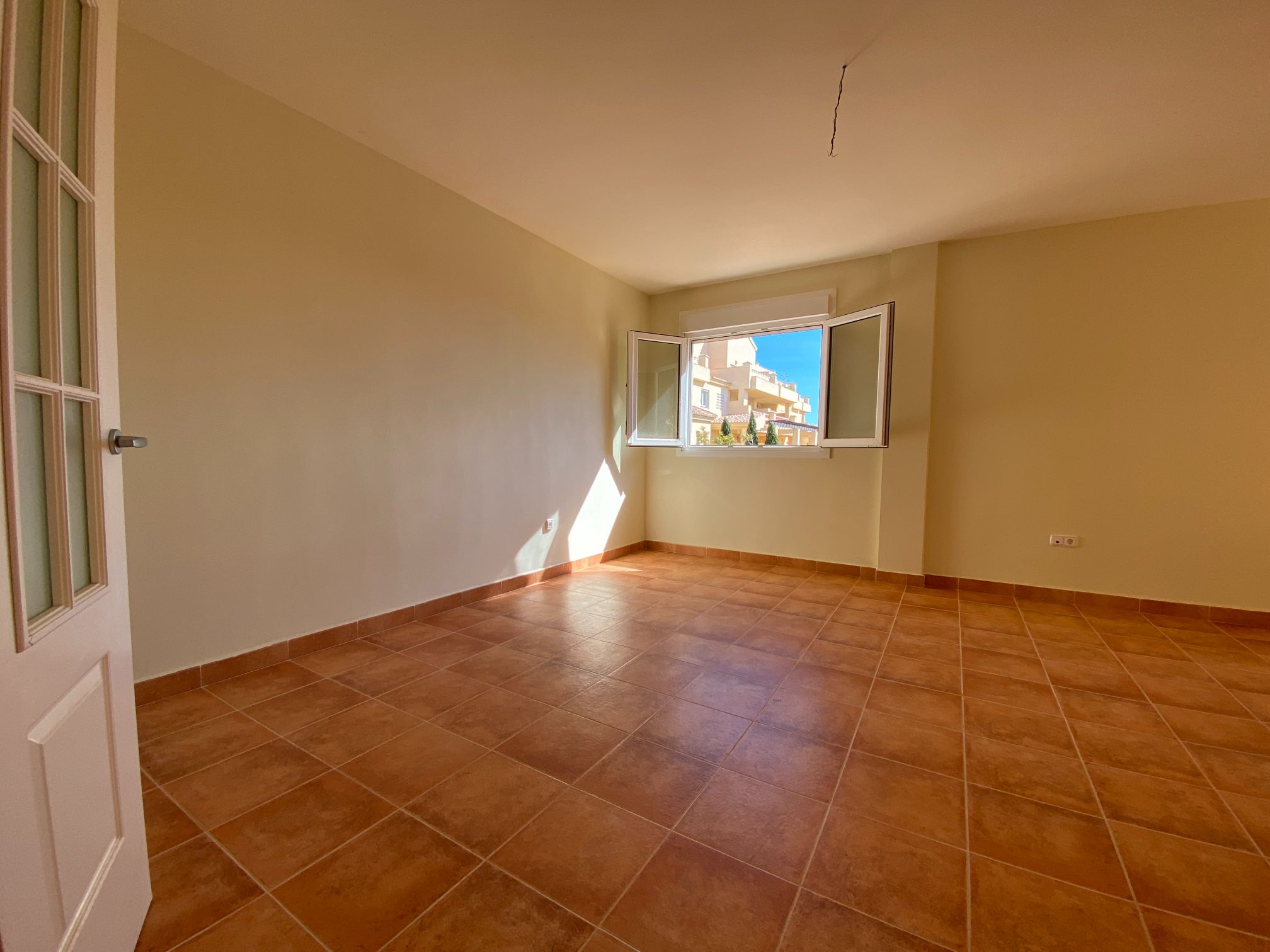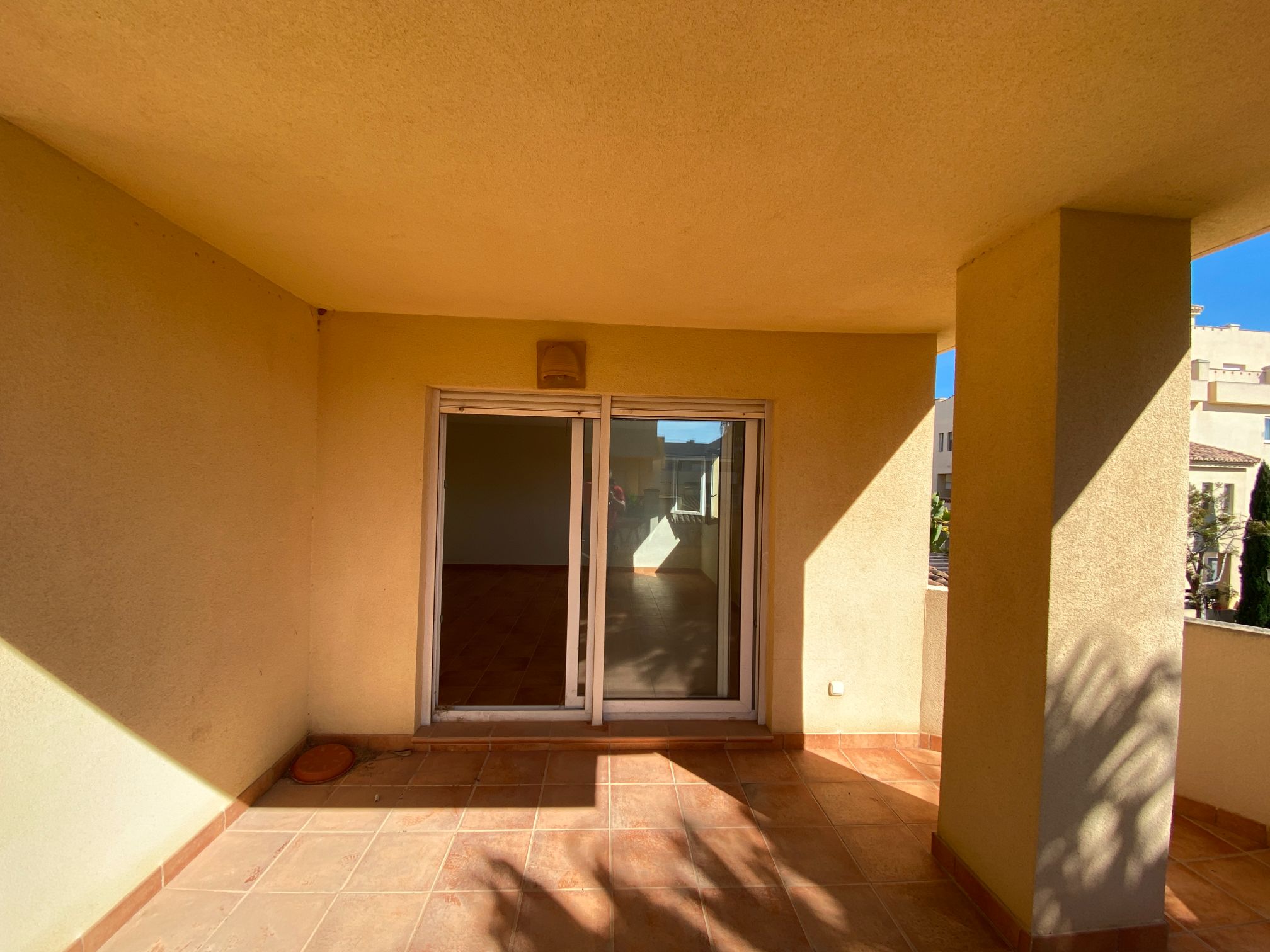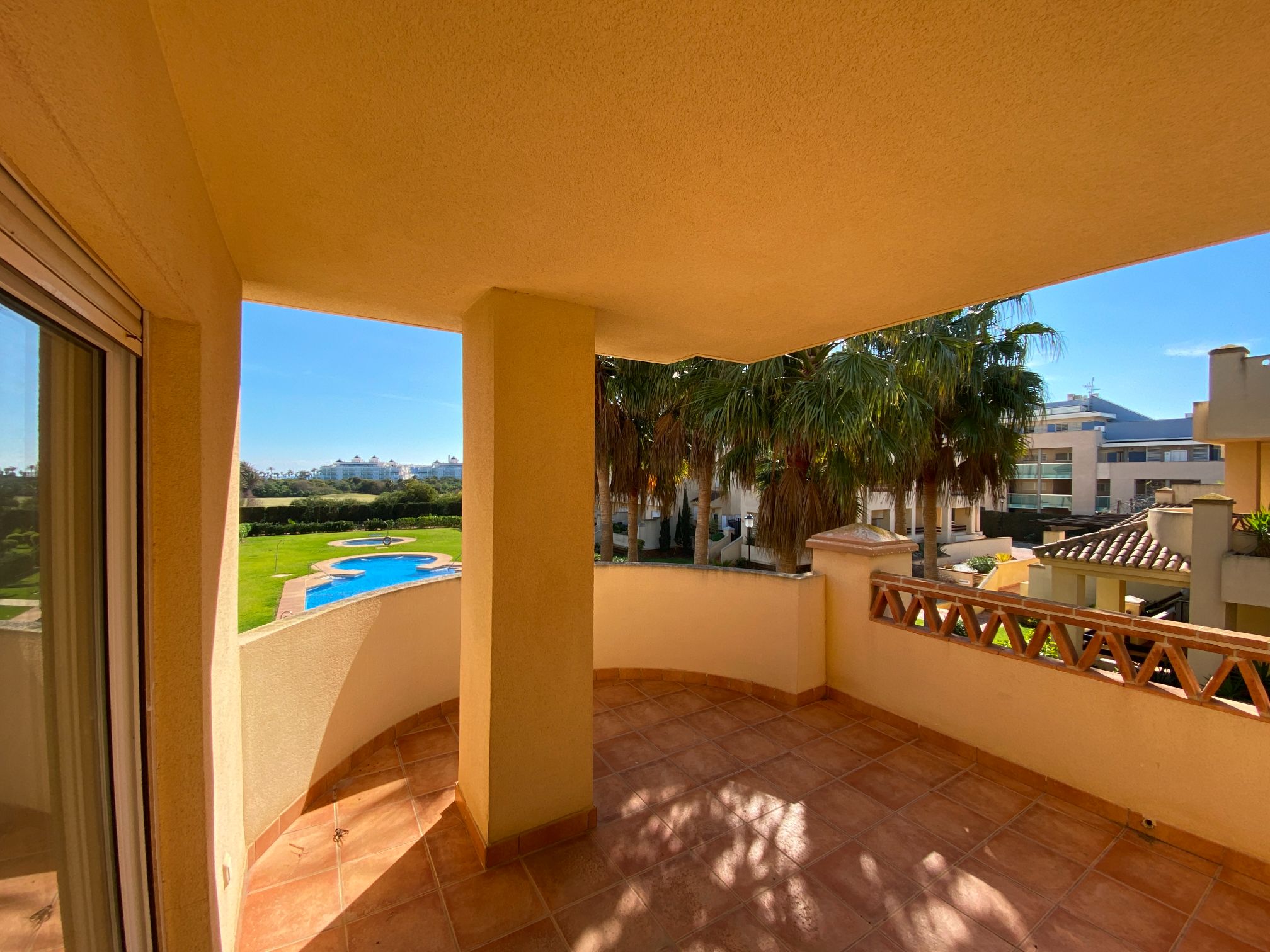 It has an area of 103.88 m², on the first floor south facing which is distributed in two bedrooms, two bathrooms, living room, kitchen and a large terrace. It is located in a beautiful residential area with a garden where you can walk around and enjoy the park, large and small swimming pools and paddle tennis courts. Sea View and Snowy Mountains View