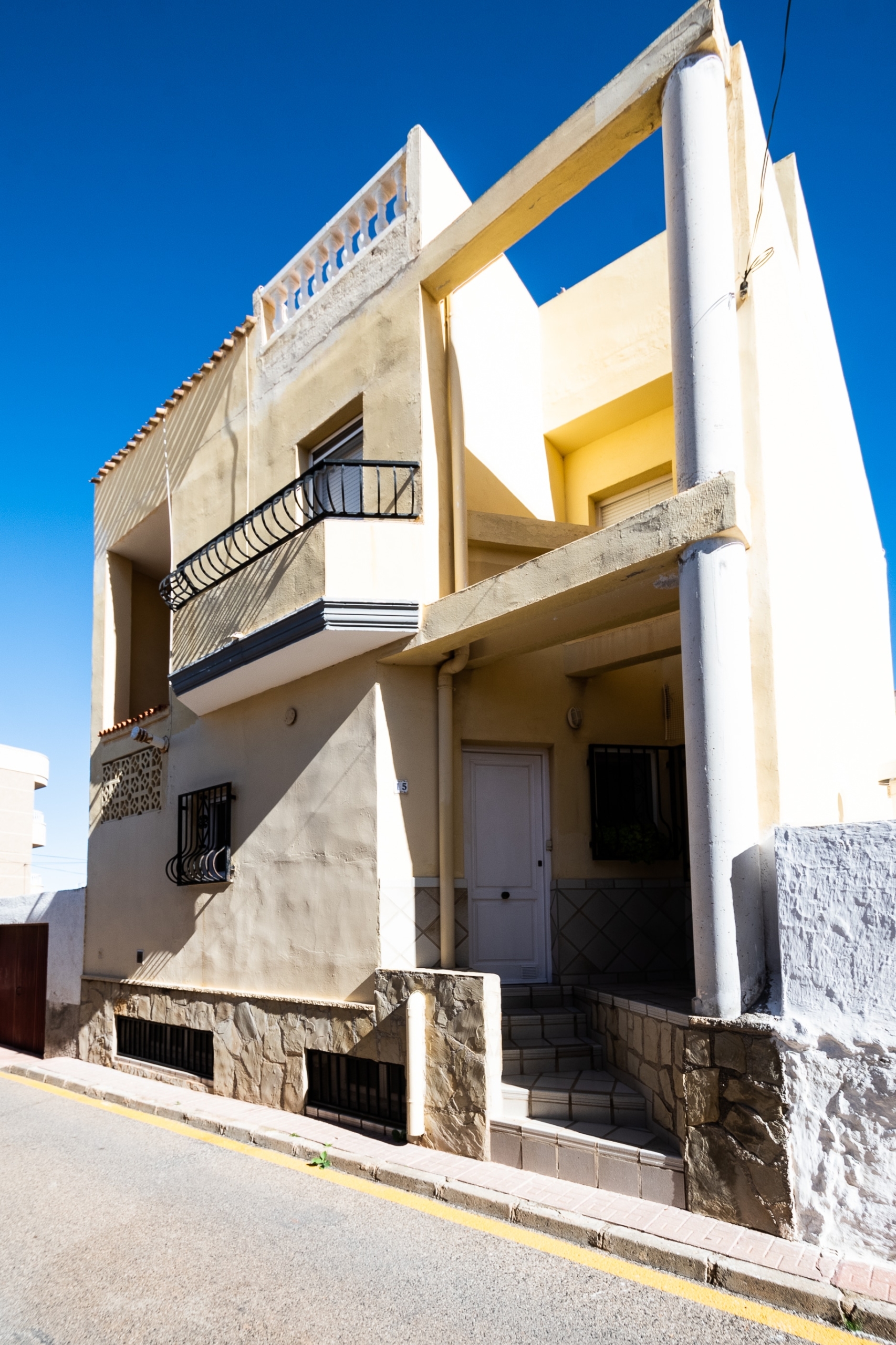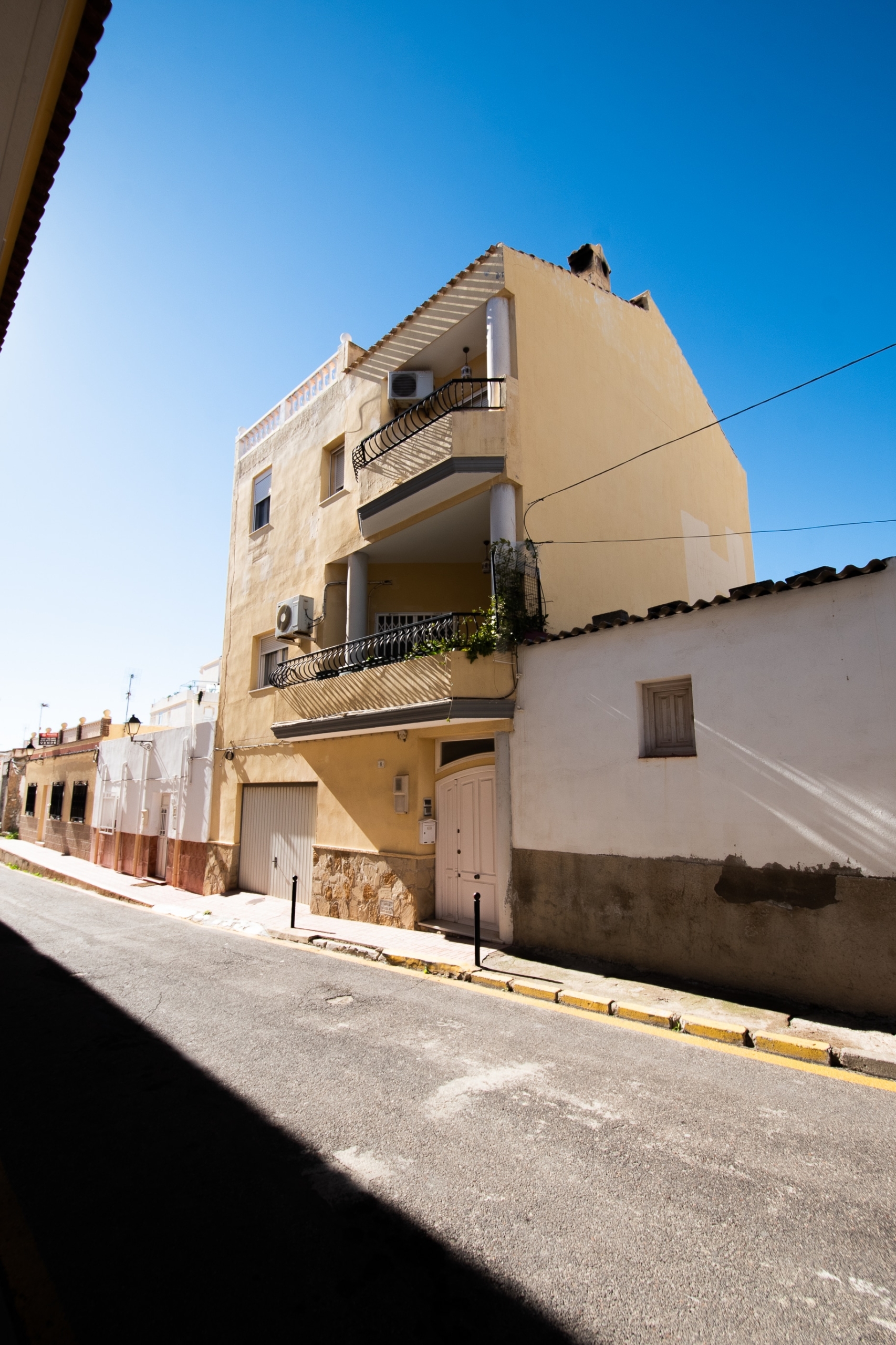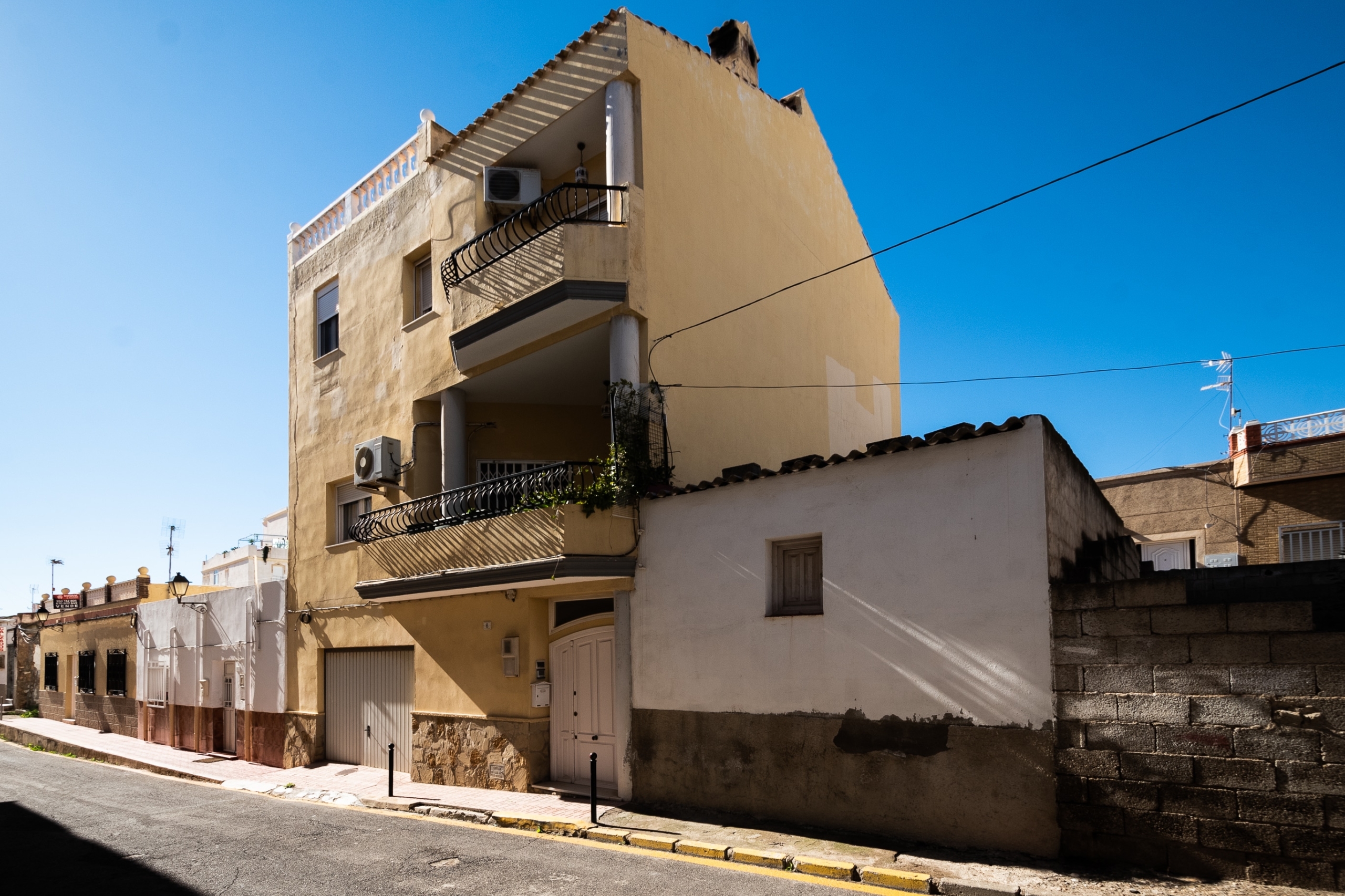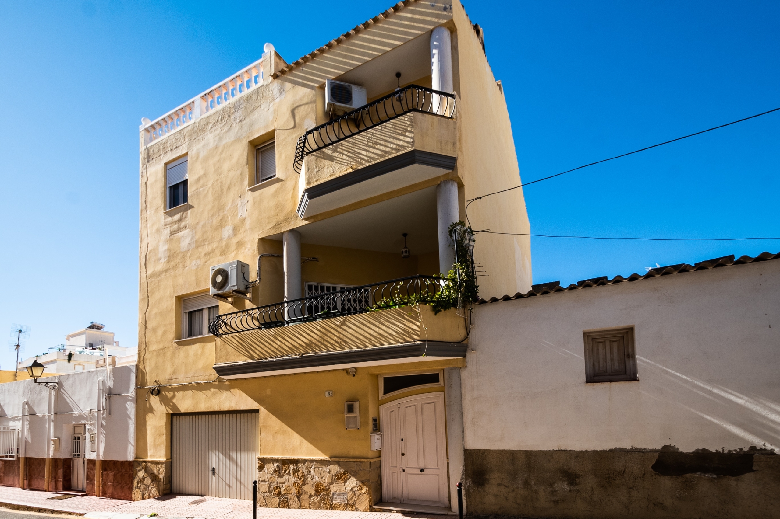 Triplex House in the heart of Garrucha, has access from two streets, 150m2 on two floors, consisting of four bedrooms, two bathrooms and a toilet (one en-suite). Equipped kitchen and Fully Furnished. Air conditioning hot and cold. Porcelain floors and a loft of 20 m2. On the ground floor and at the foot of the street is the Garage – storage room of 90 m2. Excellent location. Next to schools, medical centre and shops. 5 Minutes walking distance to the beach and the Marina