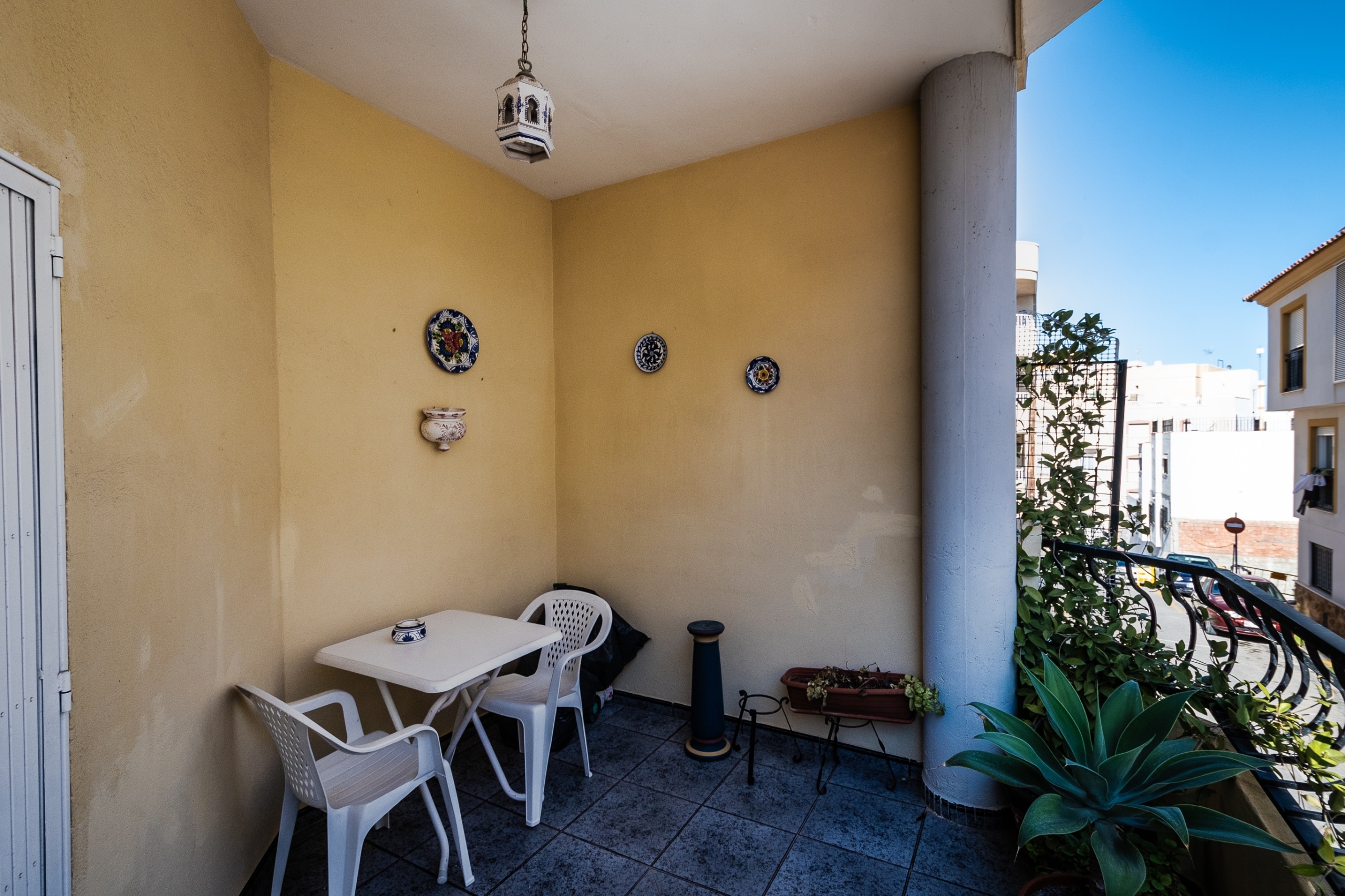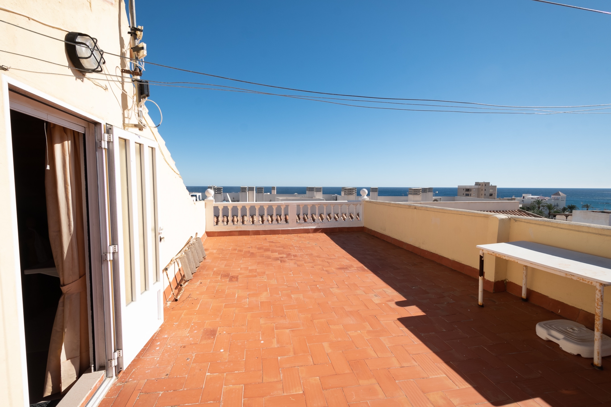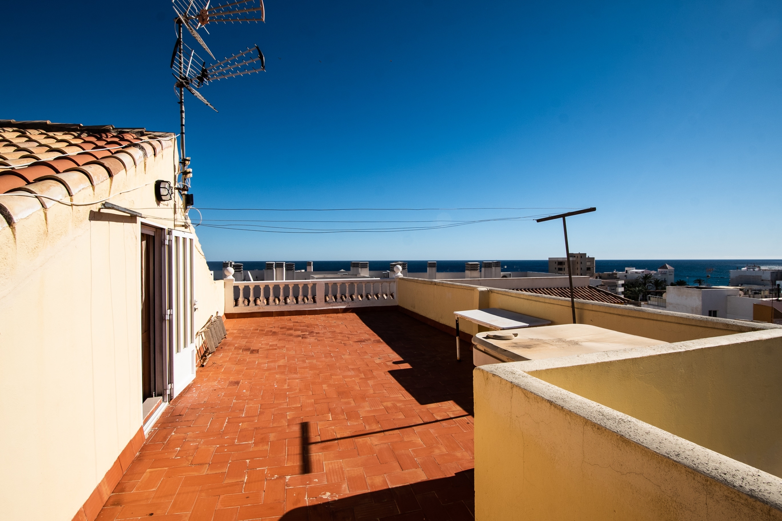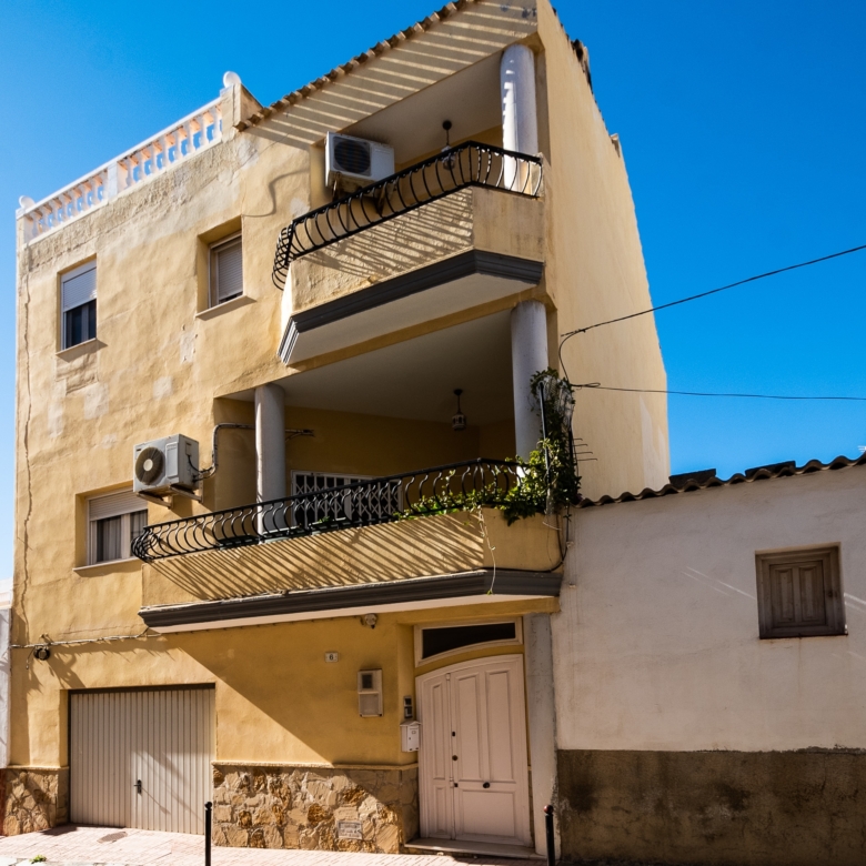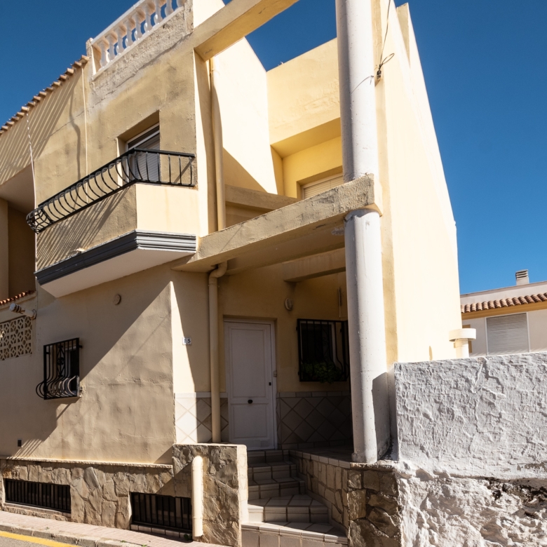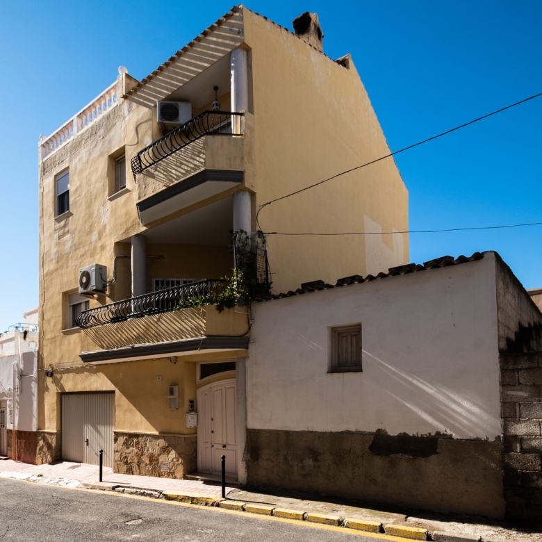 Triplex House in the heart of Garrucha, has access from two streets, 150m2 on two floors, consisting of four bedrooms, two bathrooms and a toilet (one en-suite). Equipped kitchen and Fully Furnished. Air conditioning hot and cold. Porcelain floors and a loft of 20 m2. On the ground floor and at the foot of the street is the Garage – storage room of 90 m2. Excellent location. Next to schools, medical centre and shops. 5 Minutes walking distance to the beach and the Marina