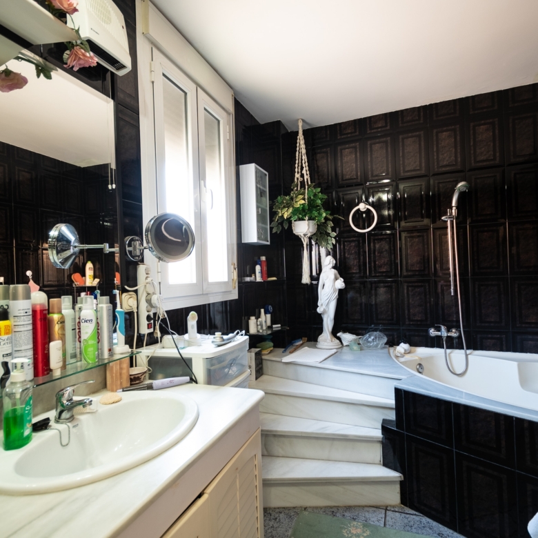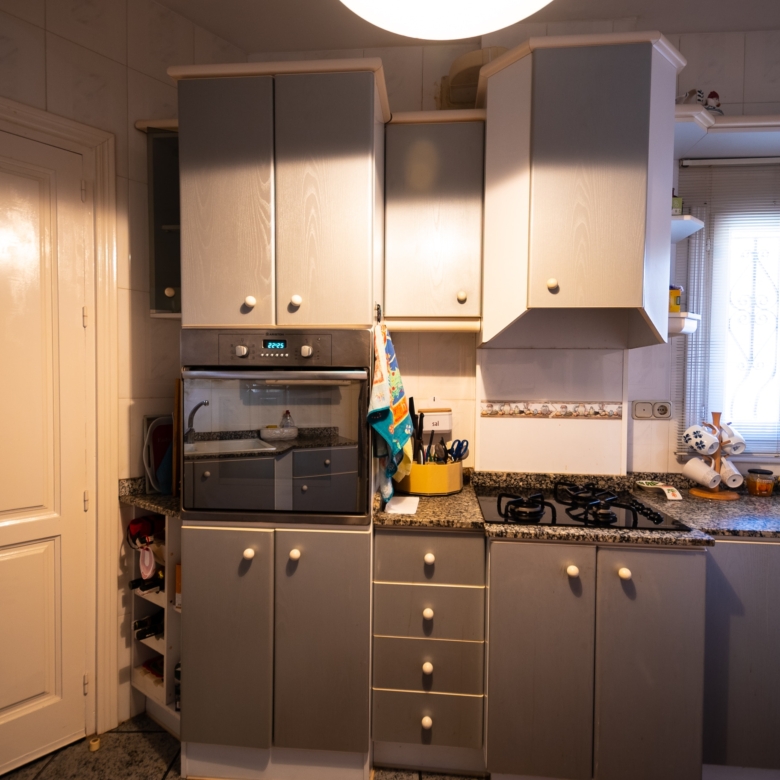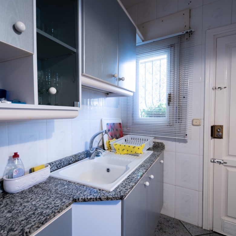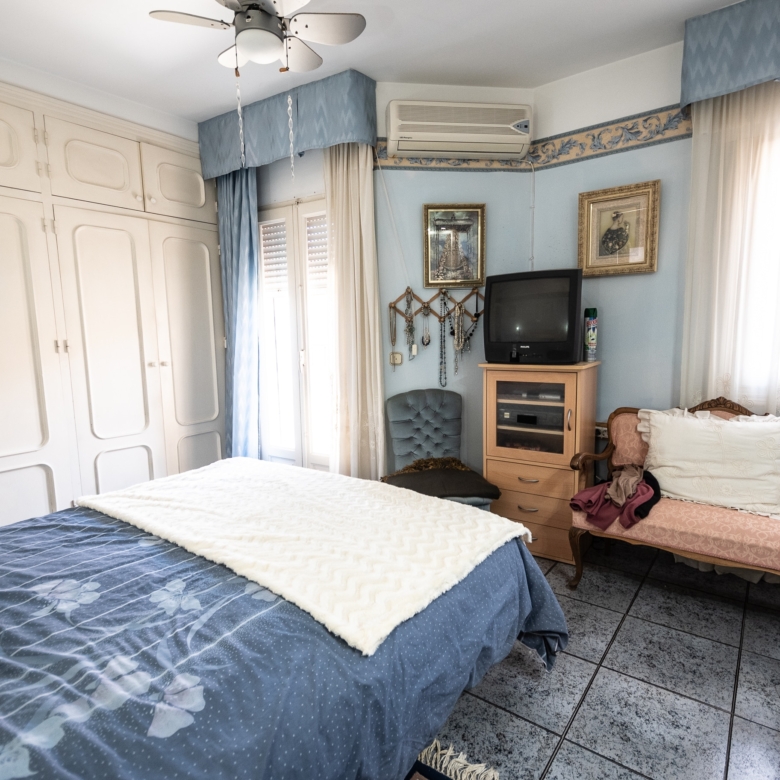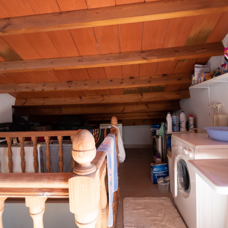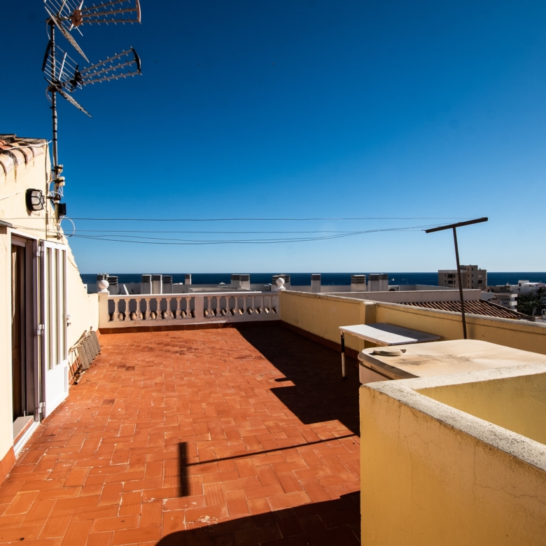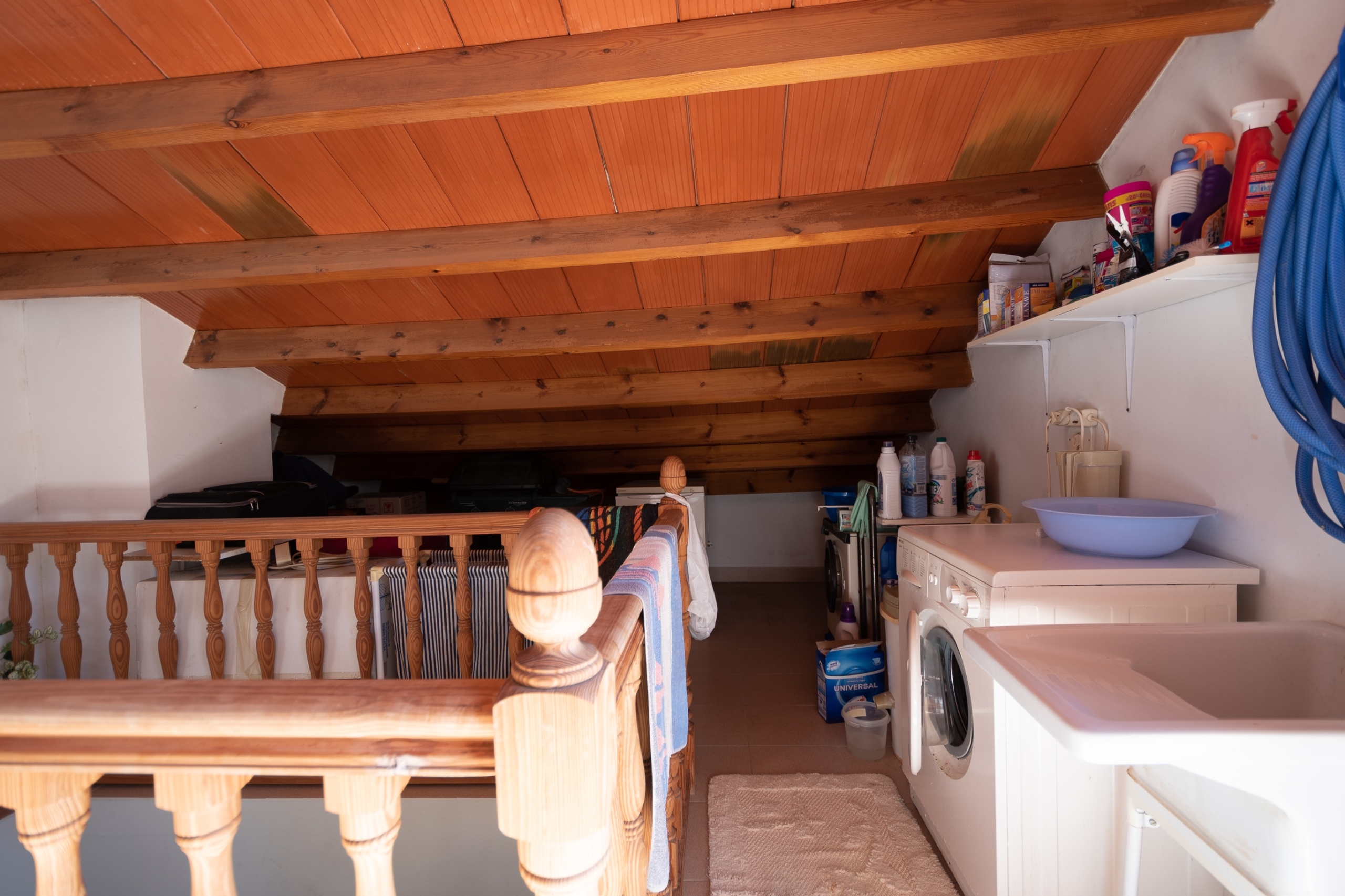 Triplex House in the heart of Garrucha, has access from two streets, 150m2 on two floors, consisting of four bedrooms, two bathrooms and a toilet (one en-suite). Equipped kitchen and Fully Furnished. Air conditioning hot and cold. Porcelain floors and a loft of 20 m2. On the ground floor and at the foot of the street is the Garage – storage room of 90 m2. Excellent location. Next to schools, medical centre and shops. 5 Minutes walking distance to the beach and the Marina
