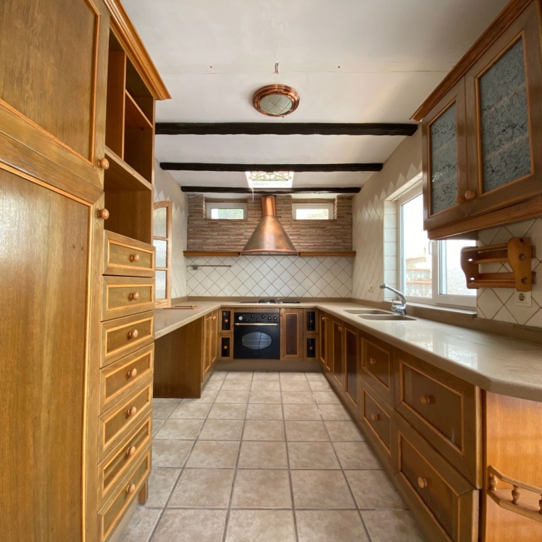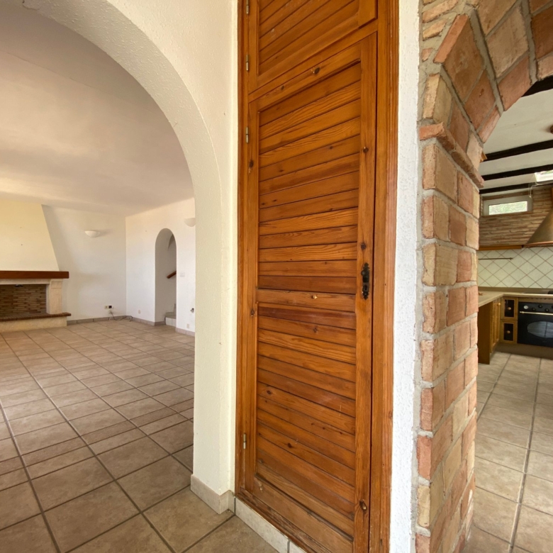 It has an area of 144 m² distributed over 3 floors. The basement consists of a double garage and parking space The ground floor is distributed in a large living room with access to a terrace, kitchen, and an outside kitchenette.