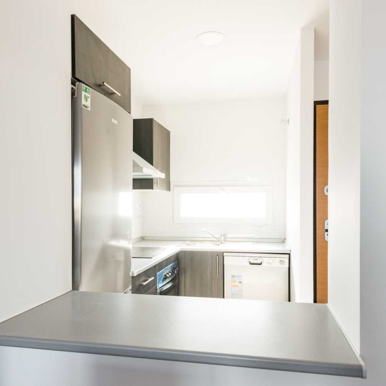 They have surfaced of 66 m² distributed in living room-kitchen-office 1, 2 or 3 bedrooms, 1 bathroom, and a terrace solarium. The houses on the ground floor have a private garden.