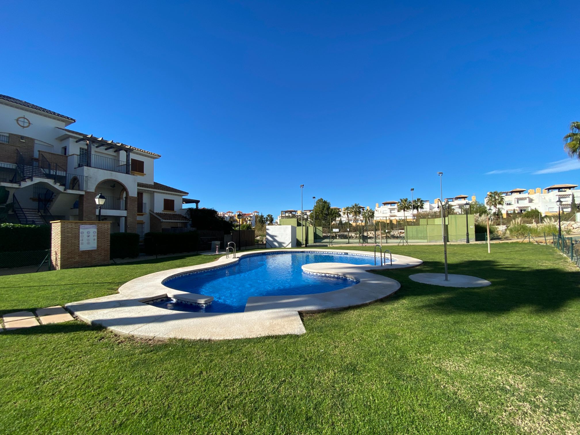 The residential complex has various areas for leisure such as an indoor pool that you can enjoy on the coldest and wettest days of winter, it also has two summer pools, a paddle tennis court and playground, as well as different green areas, and sources, the residential is in perfect condition and well preserved. It also has different parking and parking areas. All homes are assigned a square as an inseparable annexe.”