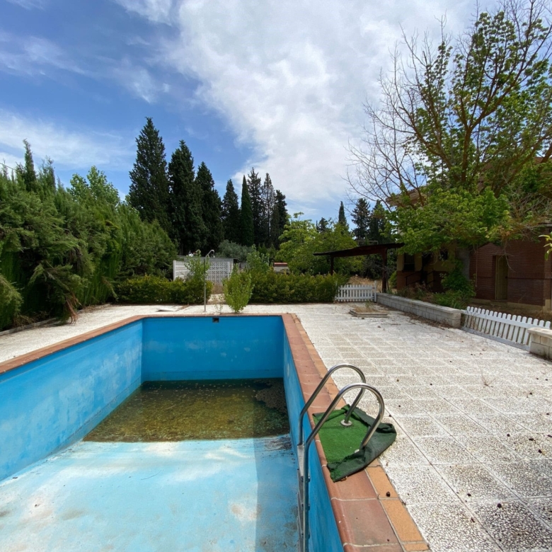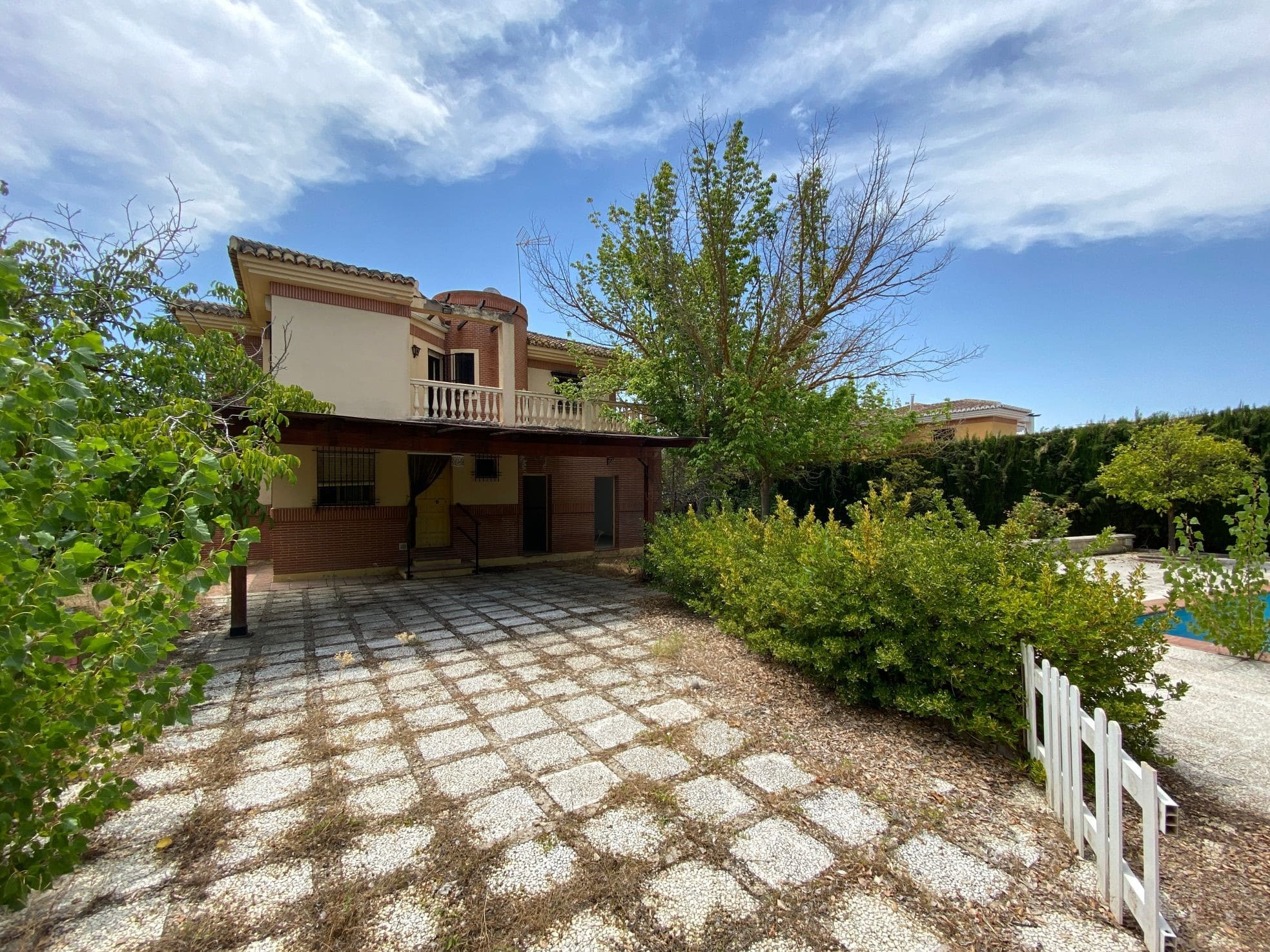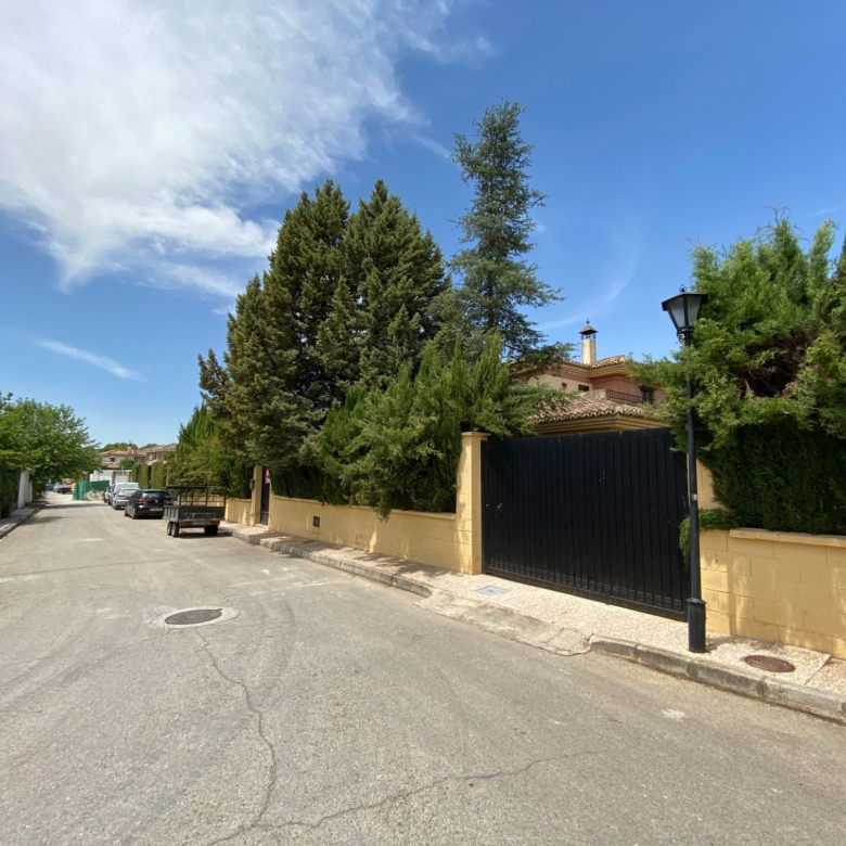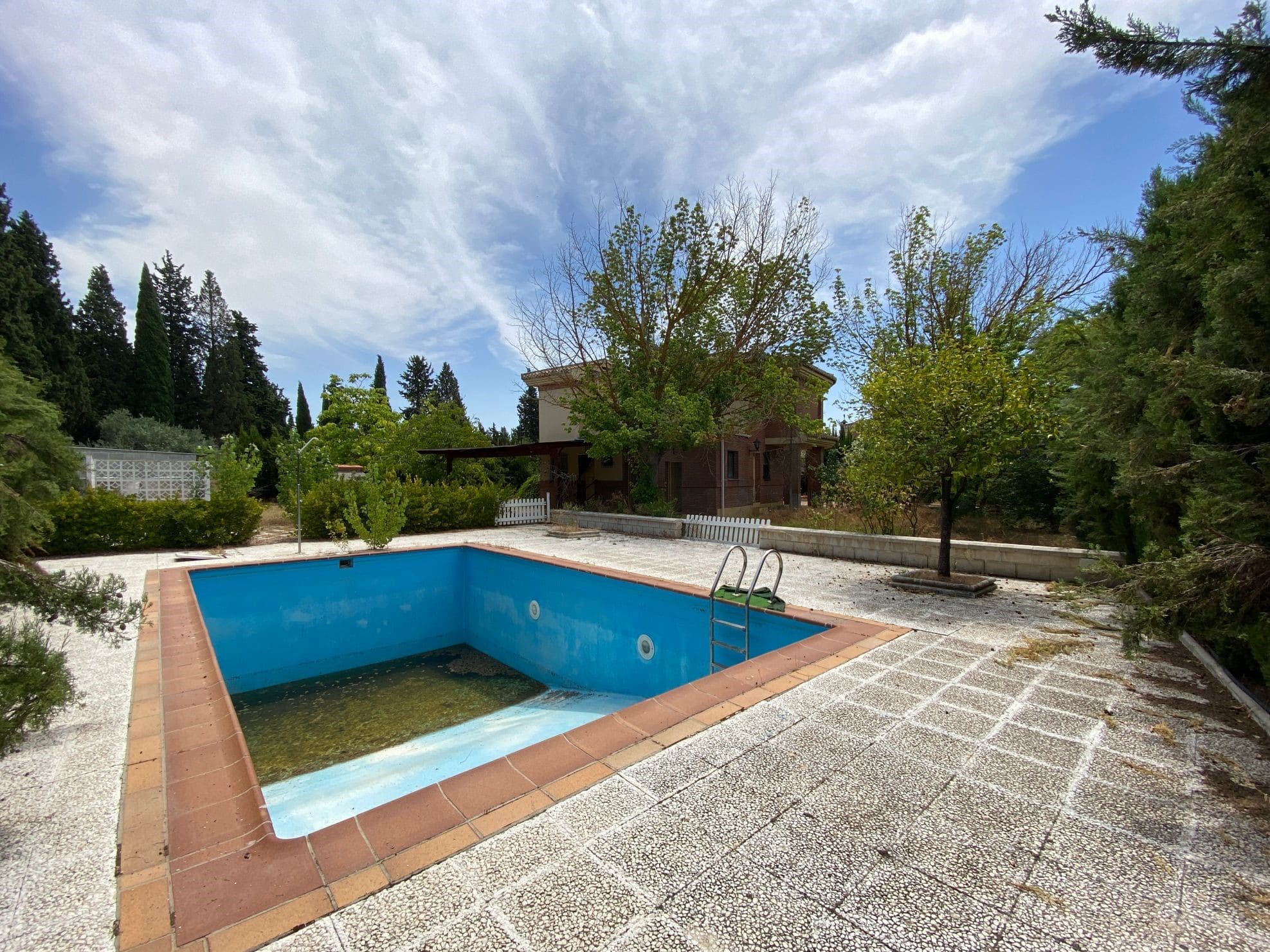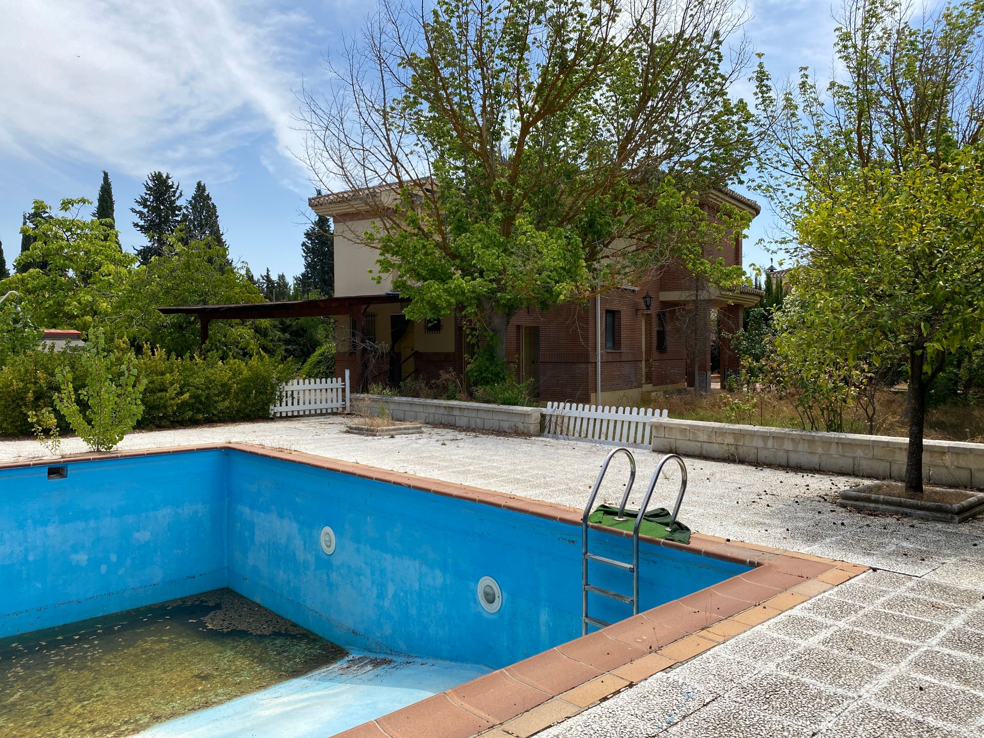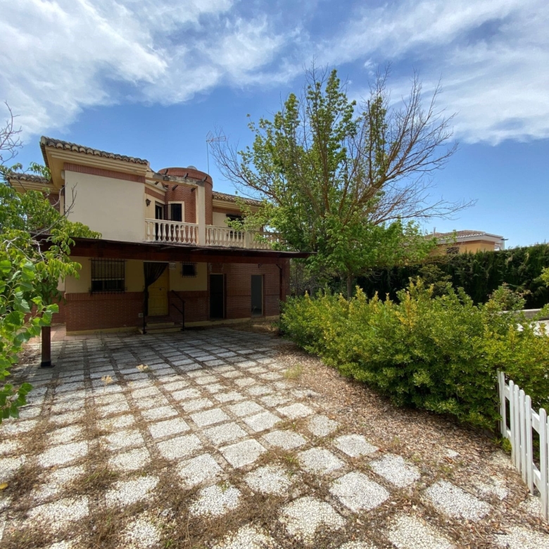 Two-storey villa located on Canales Street, in the municipality of Albolote, Granada. The villa has a large plot area and an entrance porch with columns, it also has a bright living-dining room, four bedrooms, three bathrooms and a kitchen with access to the outside. The rooms have high-quality finishes, heating and natural stone floors, which together with the landscaped patio that completely surrounds the house, make it the perfect home. Besides, it has a barbecue, a pool and a driveway outside. Nearby we find various shops and restaurants in a rural setting; also the N-323 national road and the spectacular Cubillas reservoir, just a few minutes by car.