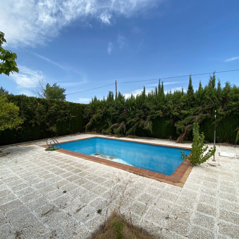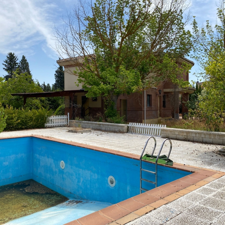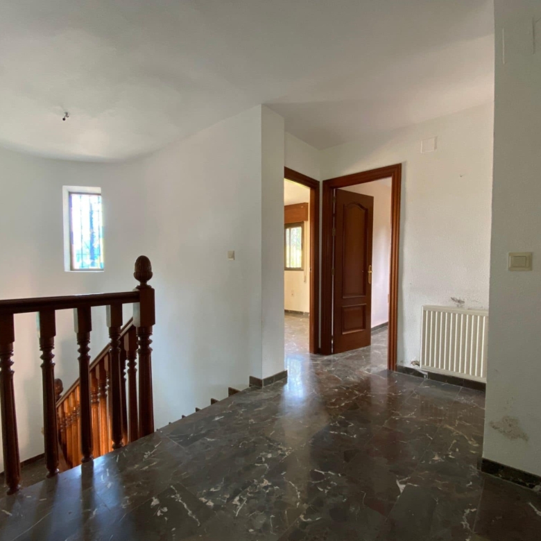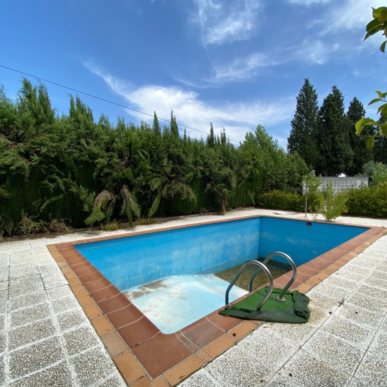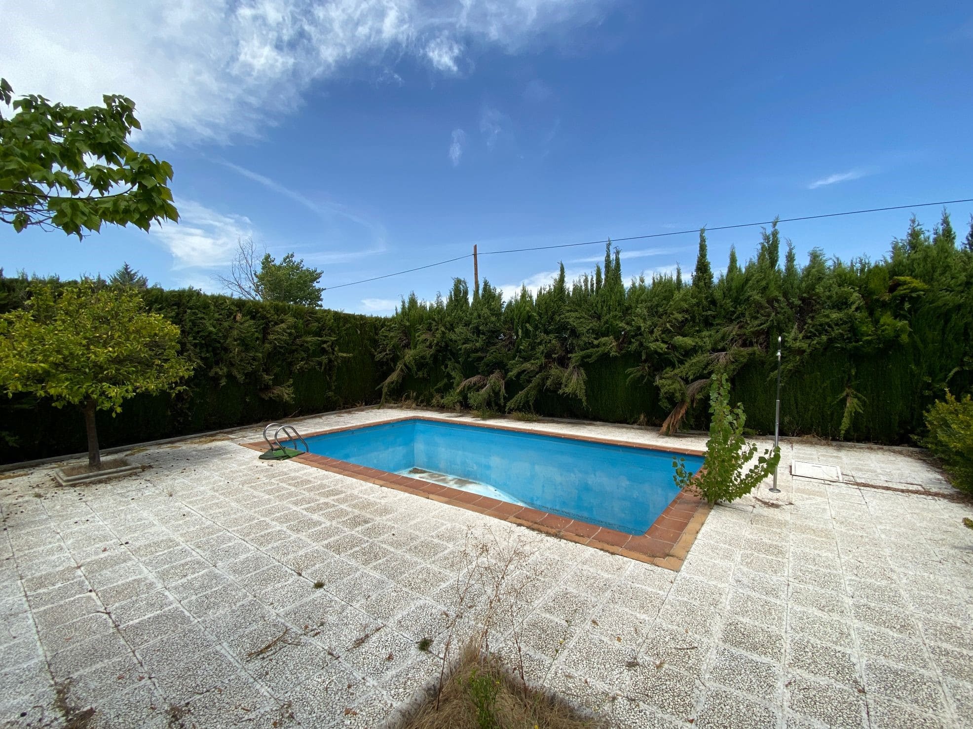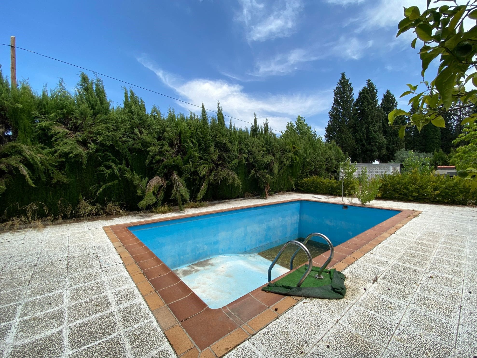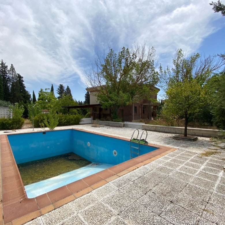 Two-storey villa located on Canales Street, in the municipality of Albolote, Granada. The villa has a large plot area and an entrance porch with columns, it also has a bright living-dining room, four bedrooms, three bathrooms and a kitchen with access to the outside. The rooms have high-quality finishes, heating and natural stone floors, which together with the landscaped patio that completely surrounds the house, make it the perfect home. Besides, it has a barbecue, a pool and a driveway outside. Nearby we find various shops and restaurants in a rural setting; also the N-323 national road and the spectacular Cubillas reservoir, just a few minutes by car.