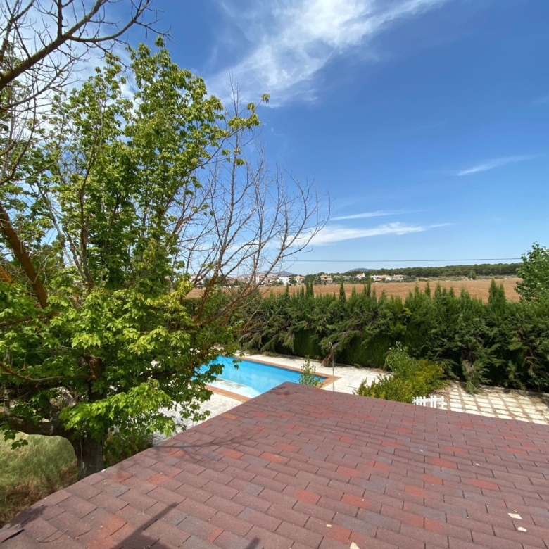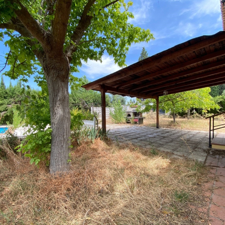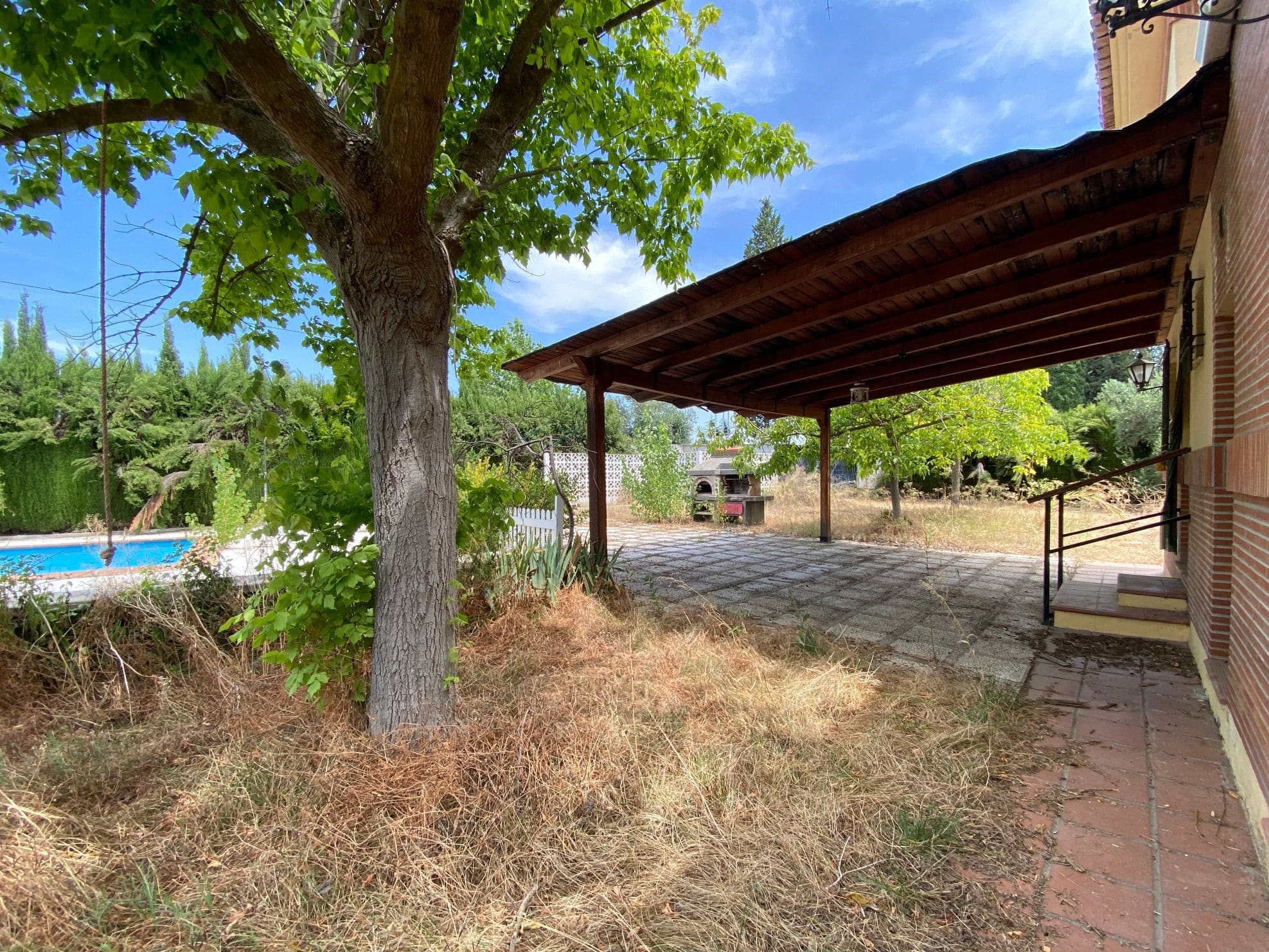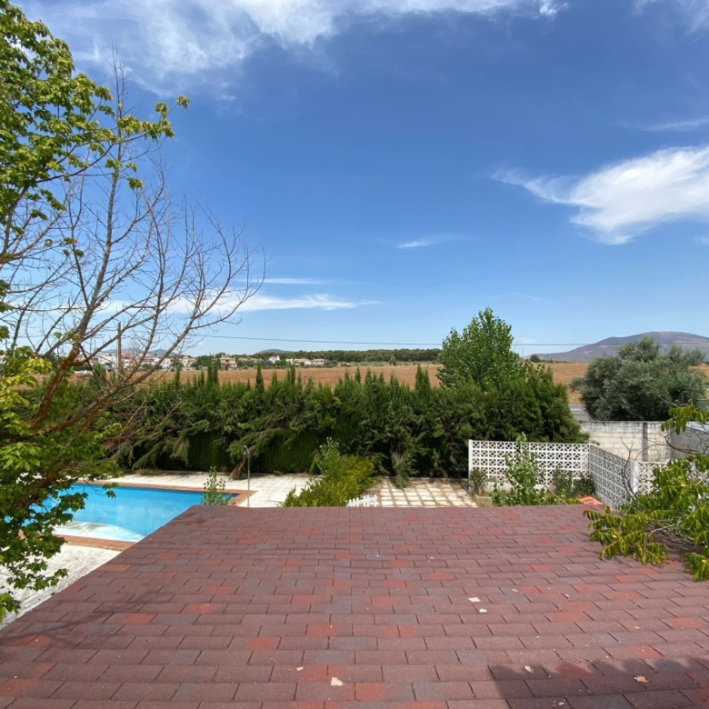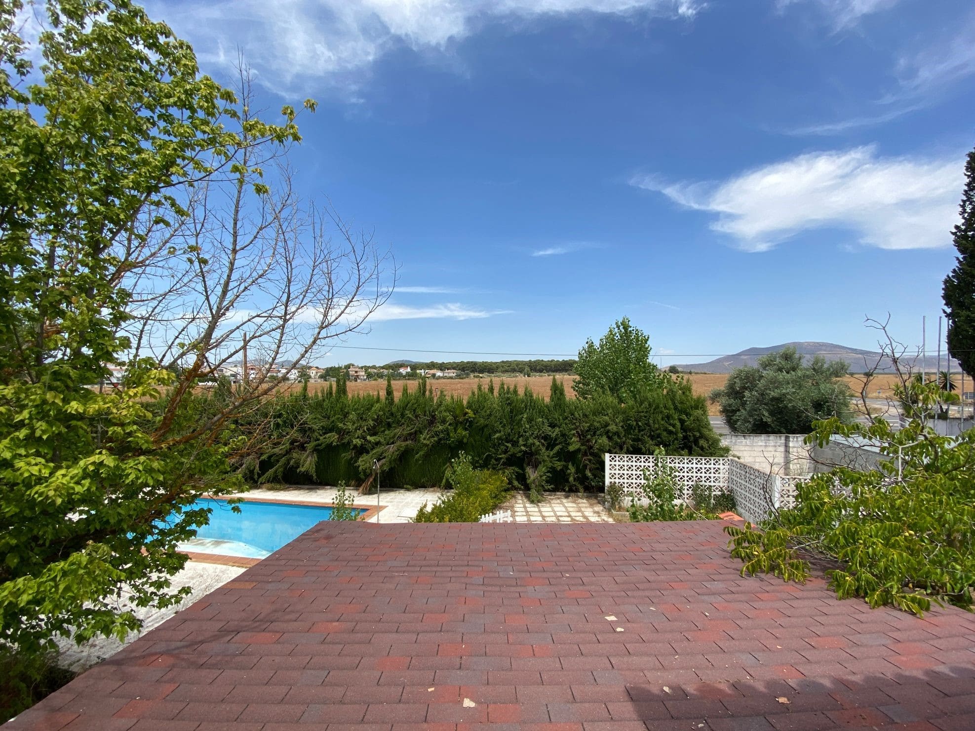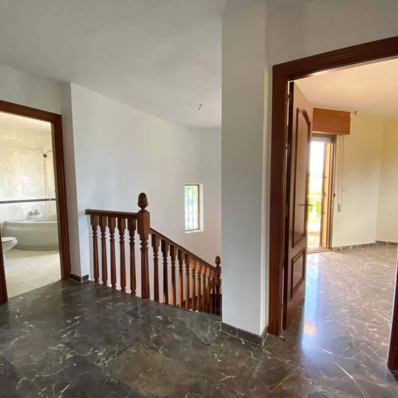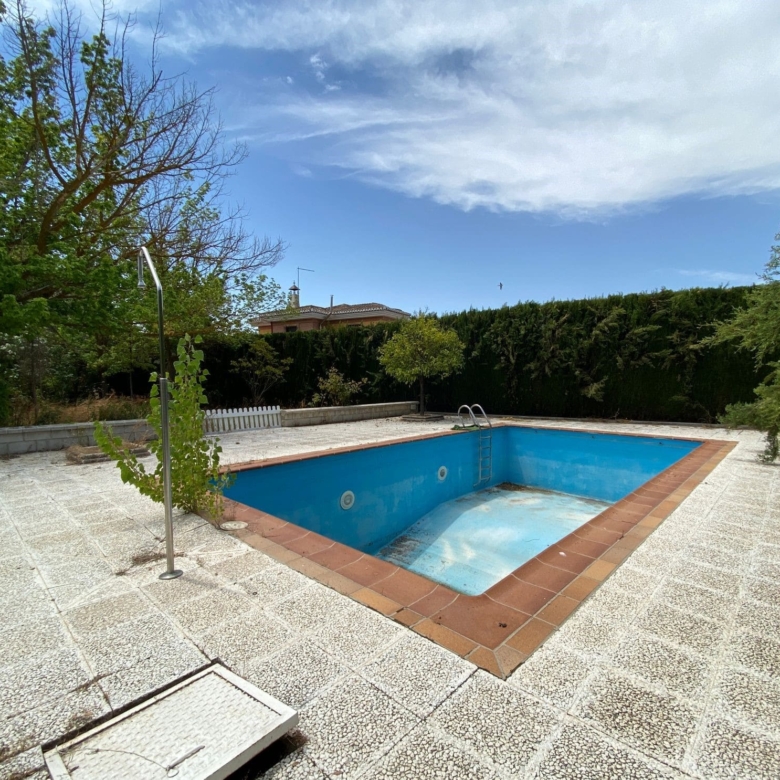 Two-storey villa located on Canales Street, in the municipality of Albolote, Granada. The villa has a large plot area and an entrance porch with columns, it also has a bright living-dining room, four bedrooms, three bathrooms and a kitchen with access to the outside. The rooms have high-quality finishes, heating and natural stone floors, which together with the landscaped patio that completely surrounds the house, make it the perfect home. Besides, it has a barbecue, a pool and a driveway outside. Nearby we find various shops and restaurants in a rural setting; also the N-323 national road and the spectacular Cubillas reservoir, just a few minutes by car.