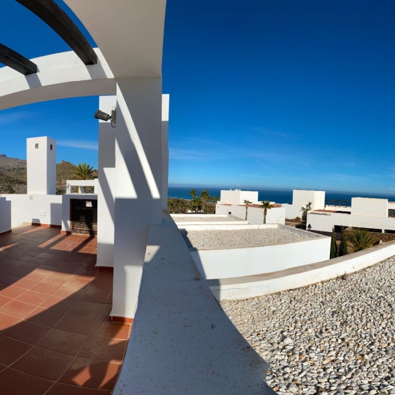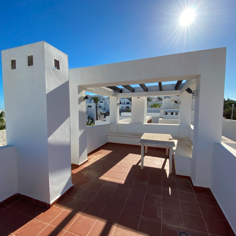 Inside, the house is light and airy with Living space: 120 m² located on the Playa Macenas Golf Course, Mojacar Playa. It was built in 2008.