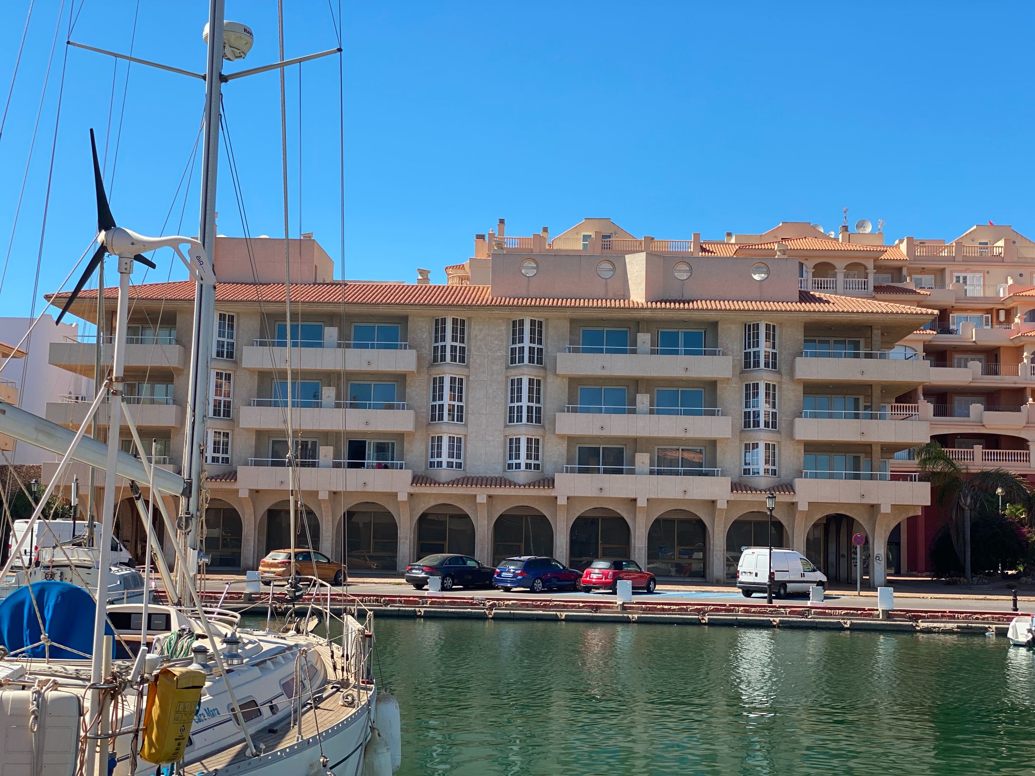In the Nautilus Building, on the first line of the Marina, 250 meters from the beach and next to the Almerimar Golf Course.