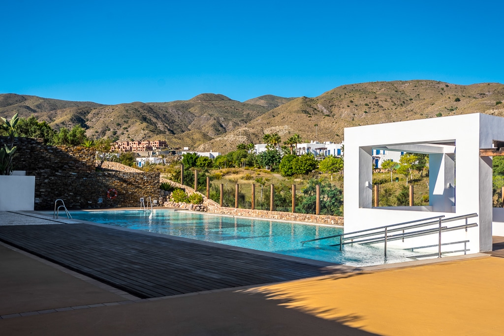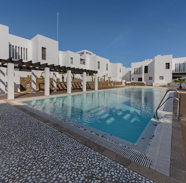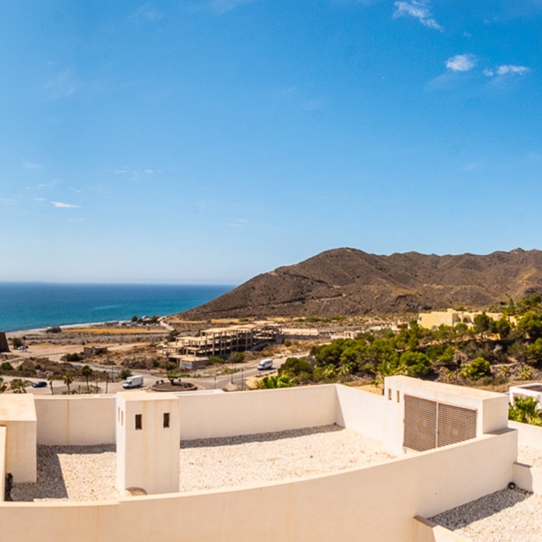 Playa Macenas beach resort is five minutes drive along the coast from Mojacar in the province of Almeria. This is a great location for a family holiday or a golfing break. The complex is quite different than the majority found in Spain with its superior build, architectural design, and high-quality finish. There are many top golf courses within a short drive of the resort including Desert Springs, Valle Des Este, and Aguillas. The nightlife of Mojacar provides an endless supply of evening entertainment in the form of restaurants, bars, and clubs. For the family there are numerous swimming pools on the resort plus off resort there is 17 km of unspoiled beaches to choose from, two great water parks, go-karting and also the mini Hollywood Studios at the Tabernas Desert. The romantic white village of Old Mojacar is perched high on the nearby hilltop.