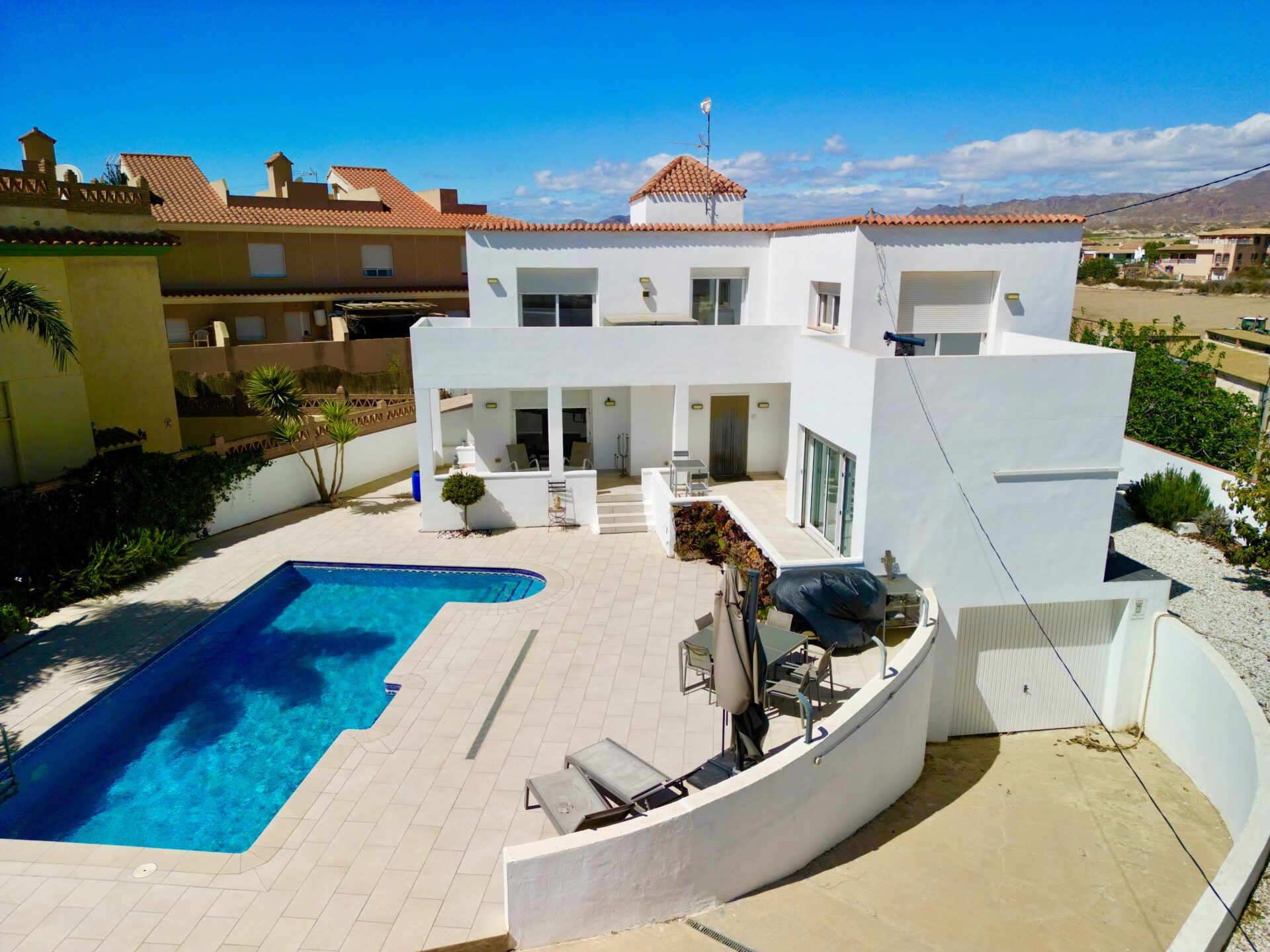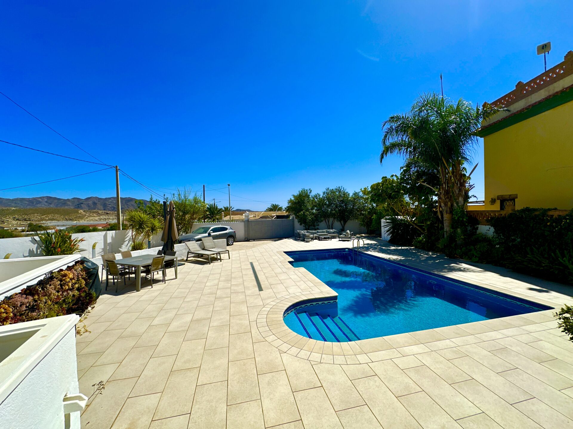 Ideally situated in the picturesque hamlet of Bujulu, this residence offers the perfect blend of rural tranquility and urban convenience. Just a short drive away, the vibrant town of Cuevas Del Almanzora awaits, offering an array of amenities and cultural experiences. For beach enthusiasts, the pristine shores are a mere 5 kilometers away, while golf enthusiasts can indulge in a round at the esteemed Desert Springs golf club, located just a short distance from your doorstep.