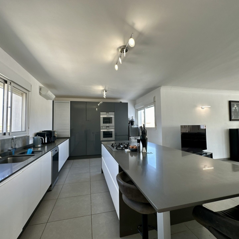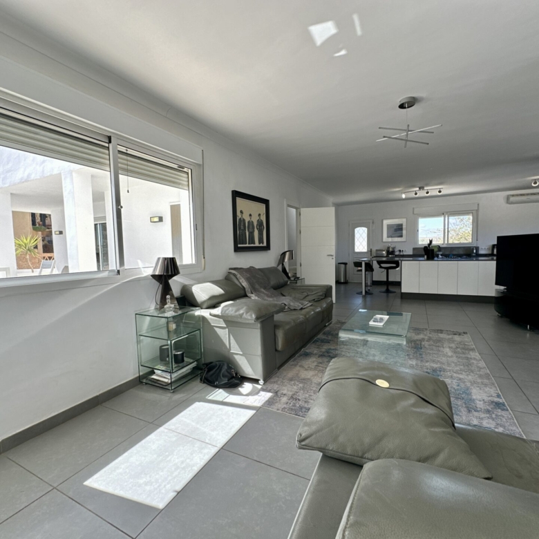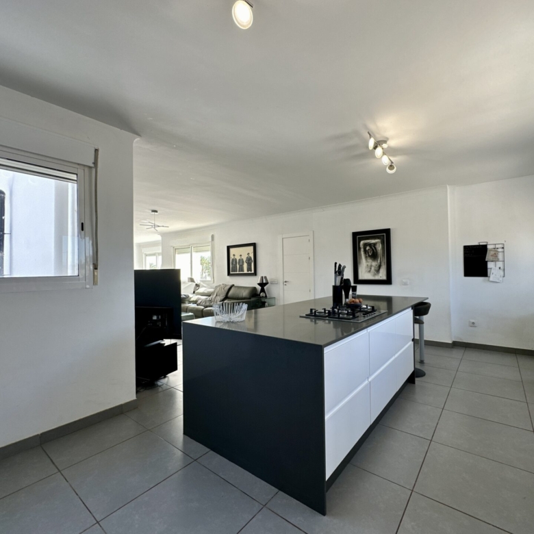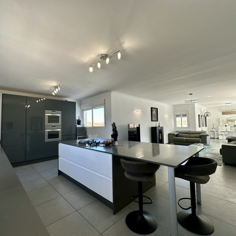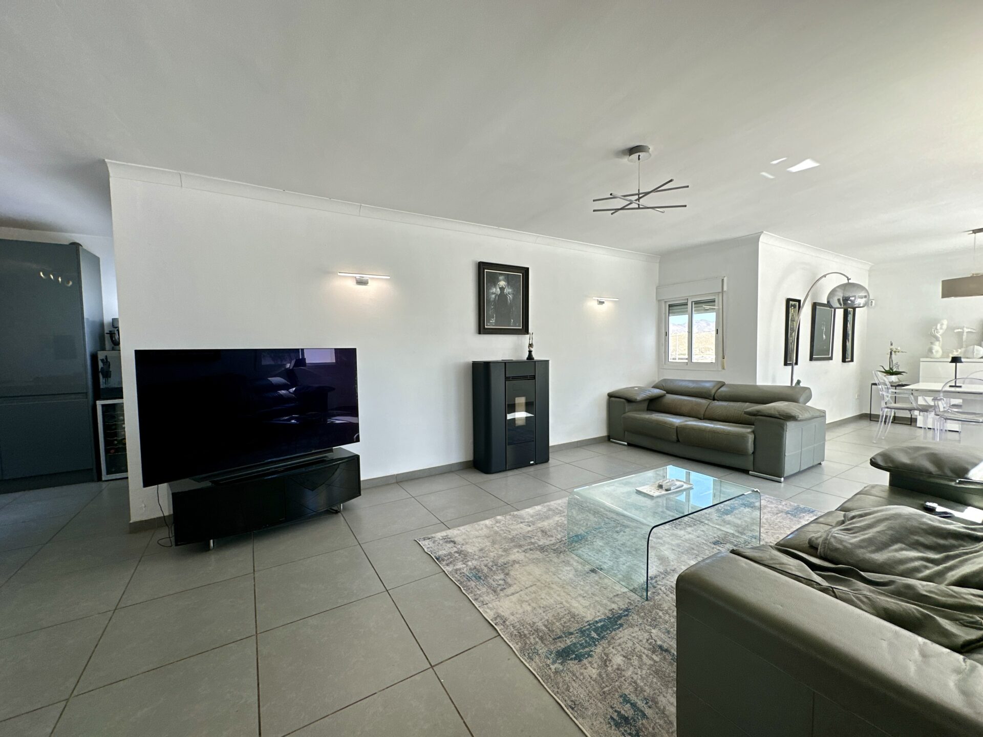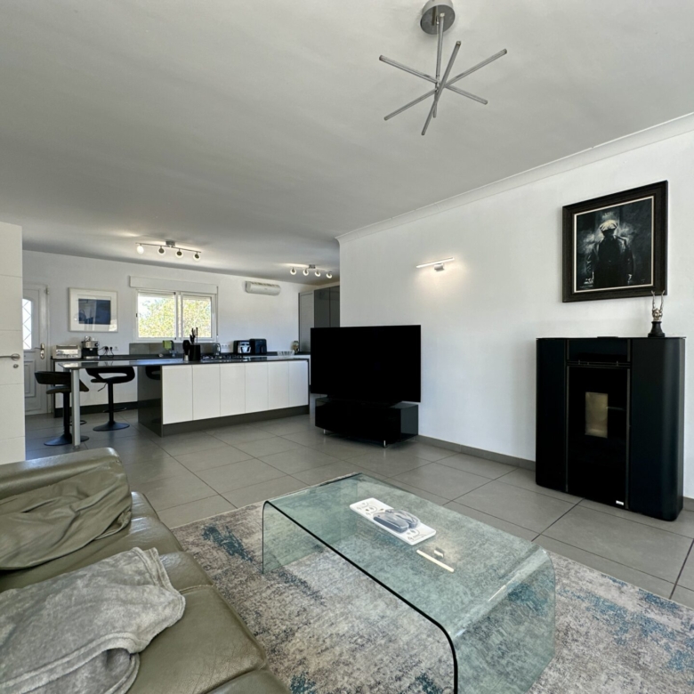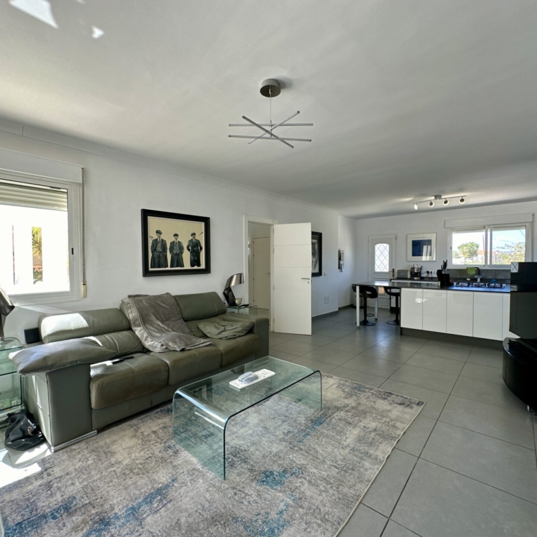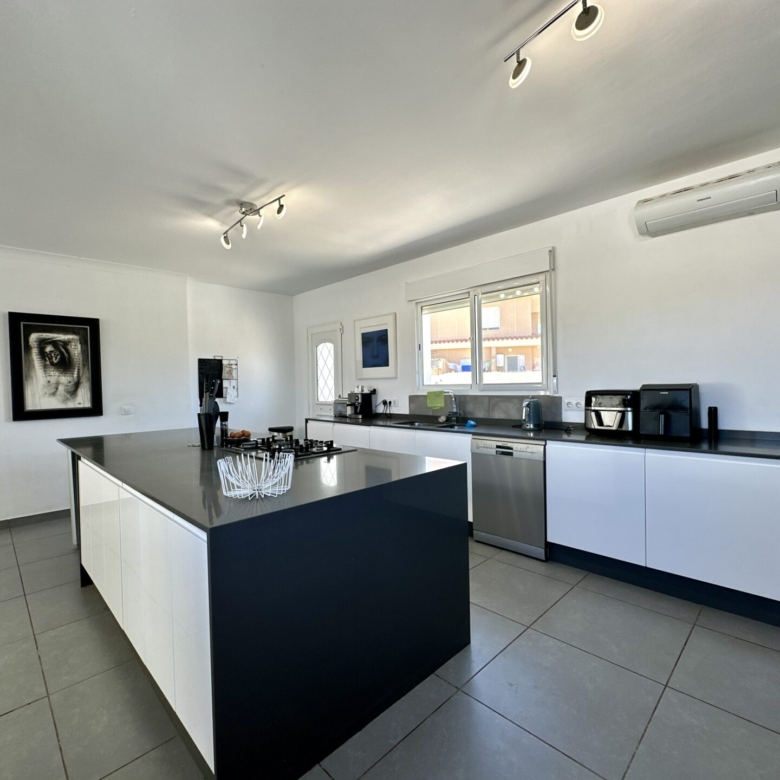 The heart of the home lies in the sprawling open-plan living/dining/kitchen area, where natural light pours in through large windows, illuminating the sleek modern design. Whether you’re hosting gatherings with loved ones or enjoying intimate family moments, this space effortlessly caters to your every need.