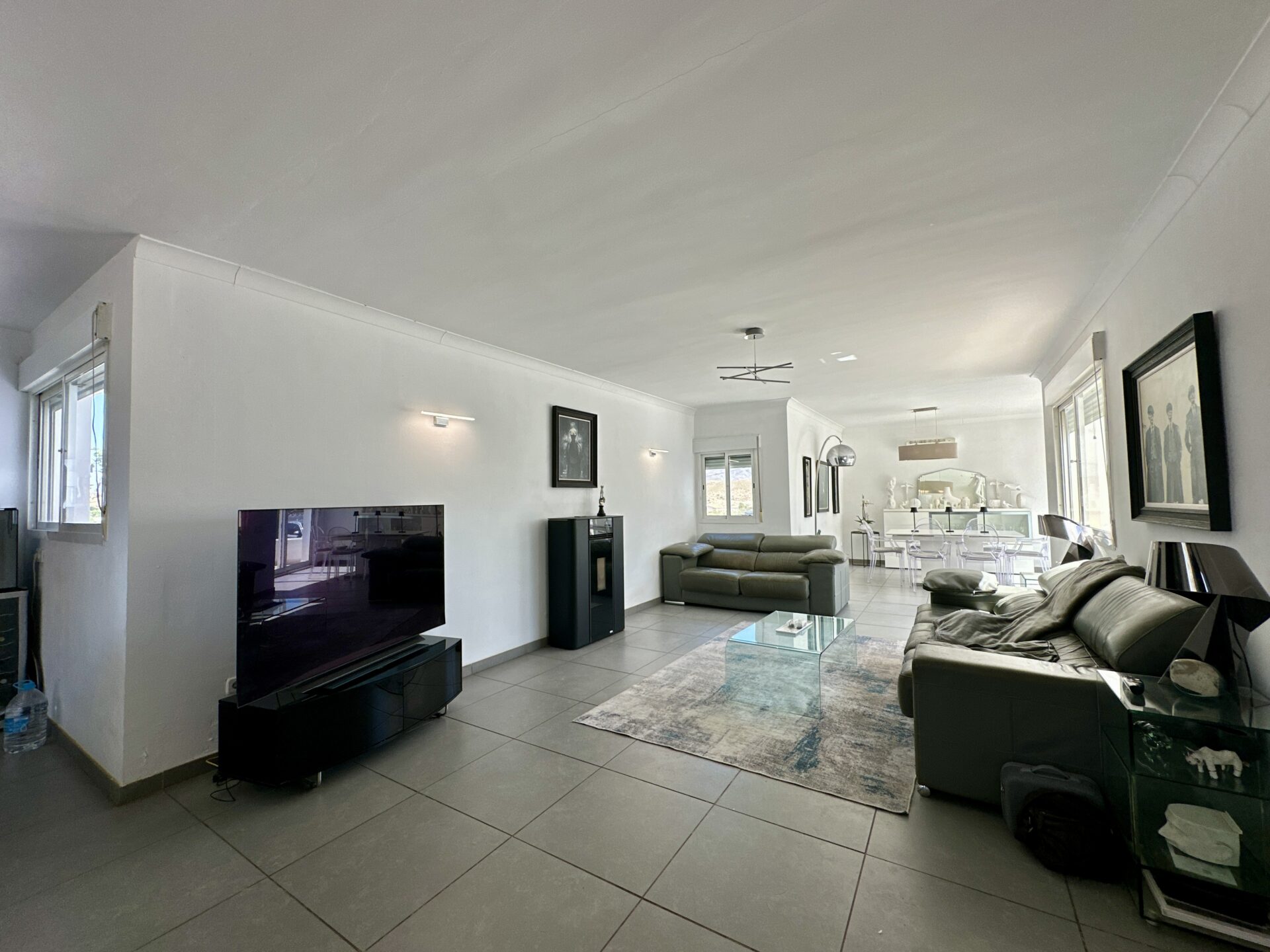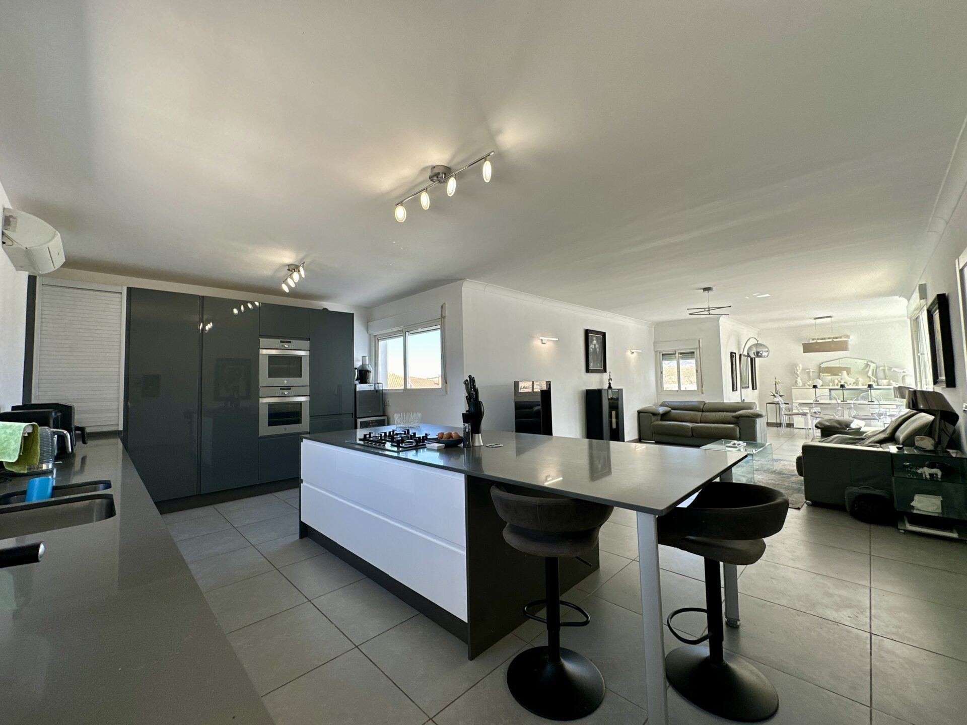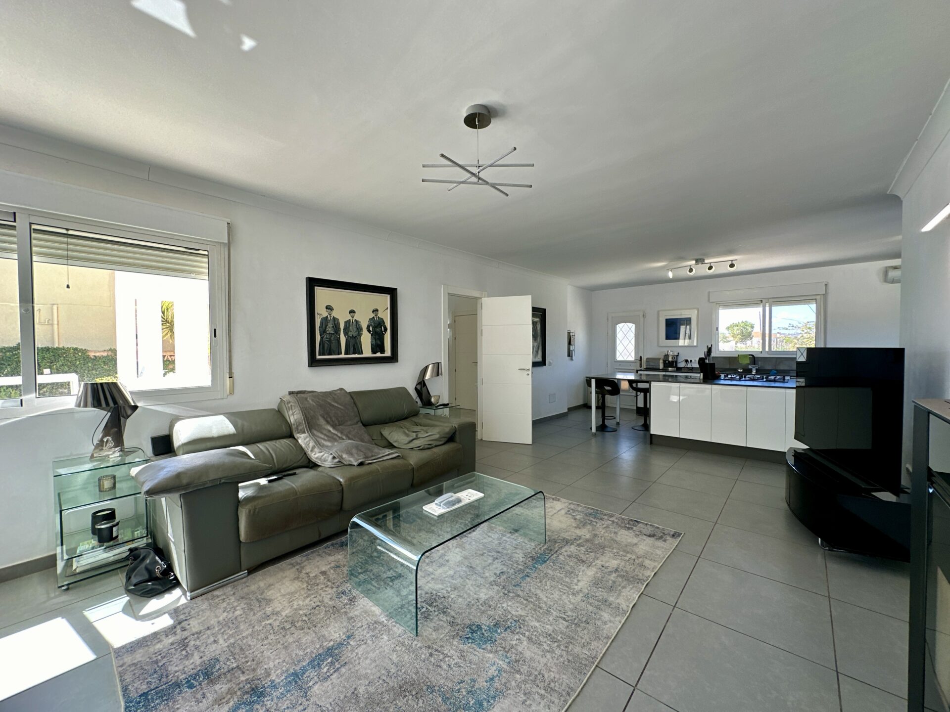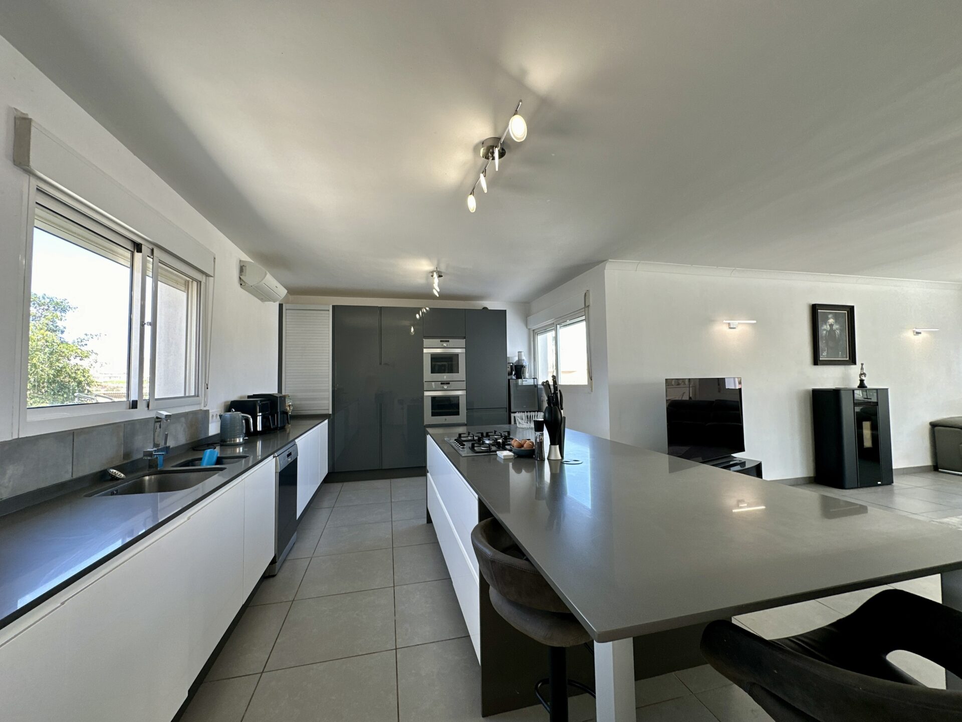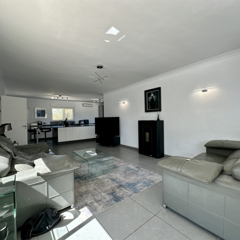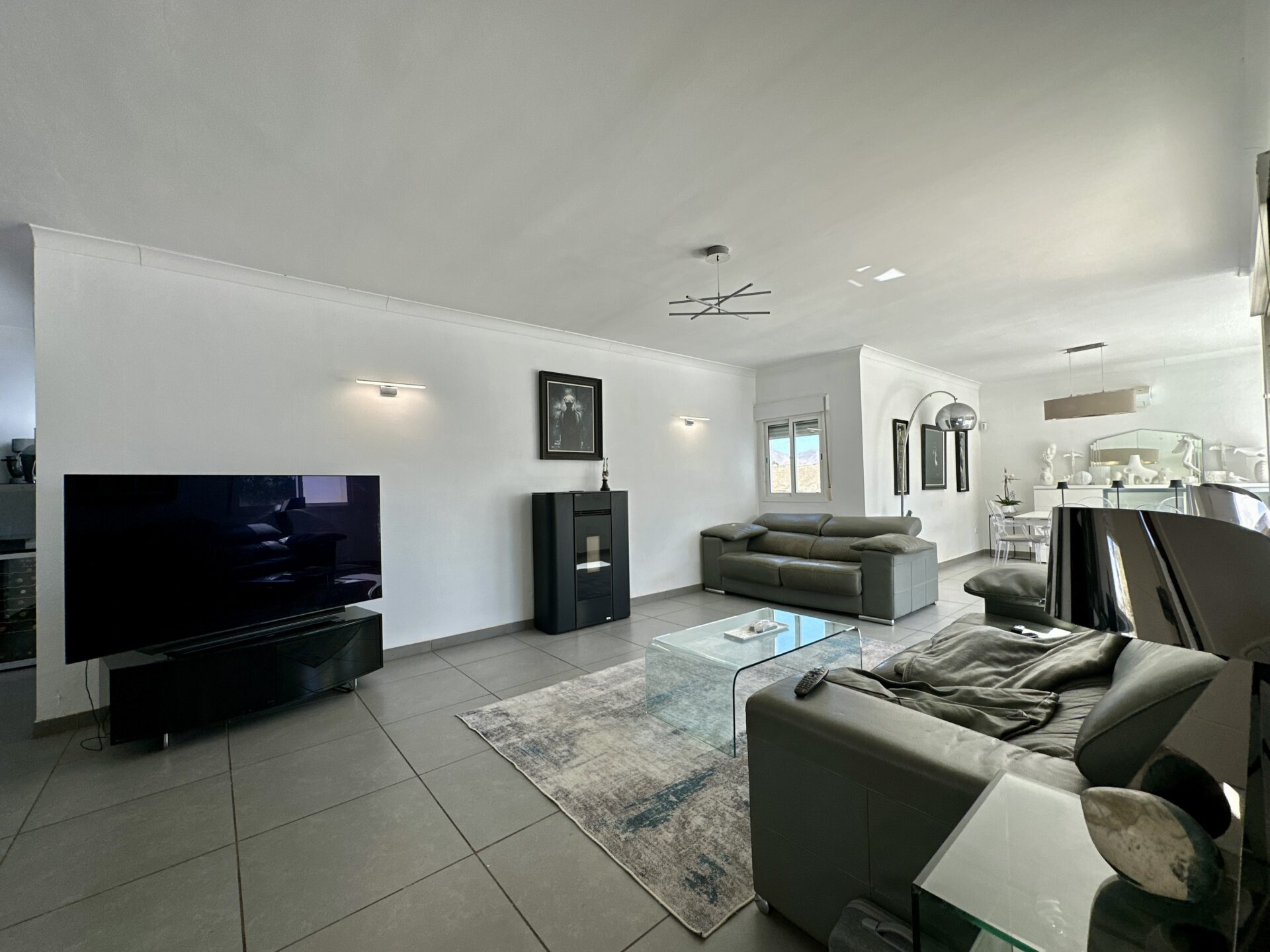 The heart of the home lies in the sprawling open-plan living/dining/kitchen area, where natural light pours in through large windows, illuminating the sleek modern design. Whether you’re hosting gatherings with loved ones or enjoying intimate family moments, this space effortlessly caters to your every need.