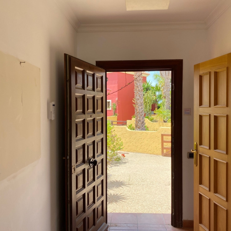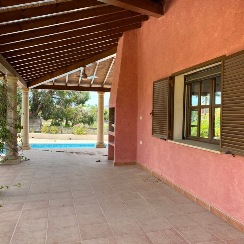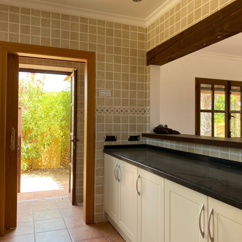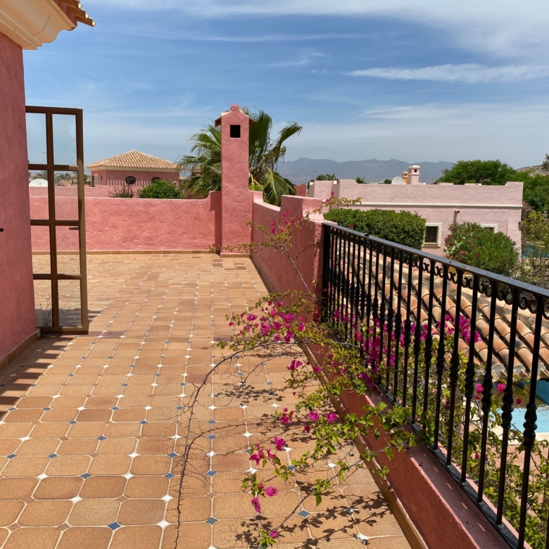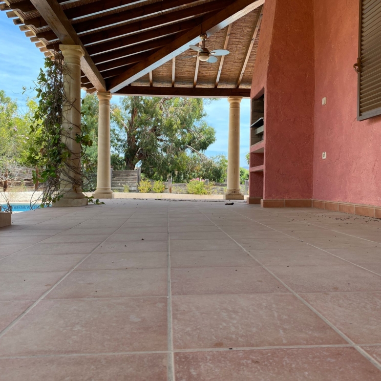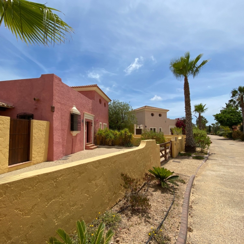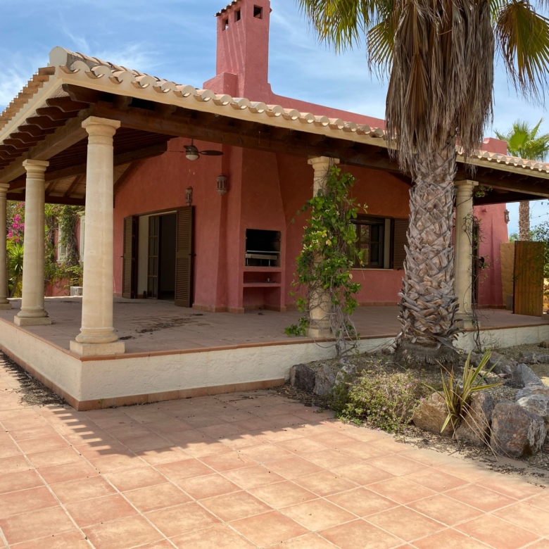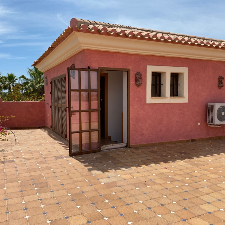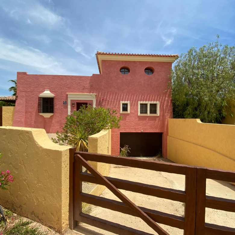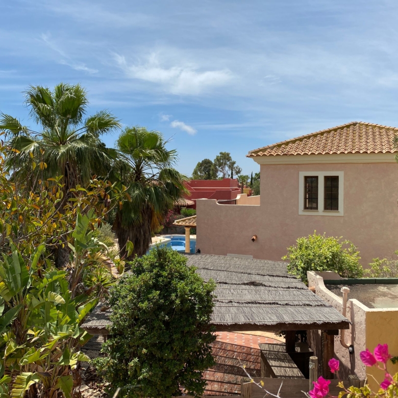 The spacious internal reception area opens out, with a ‘level through’ floor, onto the covered verandas to offer over 93m2 of combined interior/exterior living and dining space, designed to be used as one in this specially privileged climate. A stone-built fireplace internally and a built-in barbecue externally are provided. The master bedroom has an extensive private roof terrace with great views and a separate dressing and bathroom.