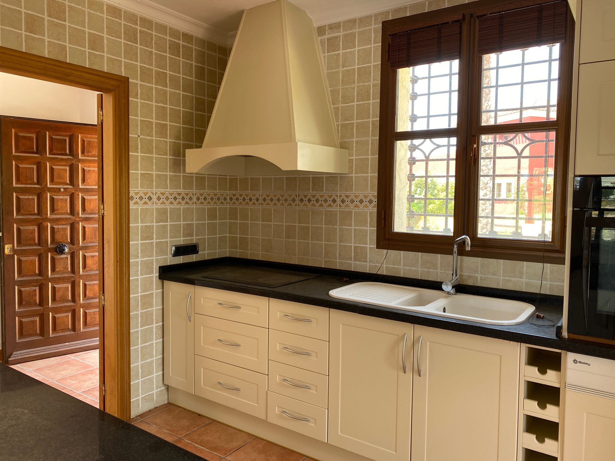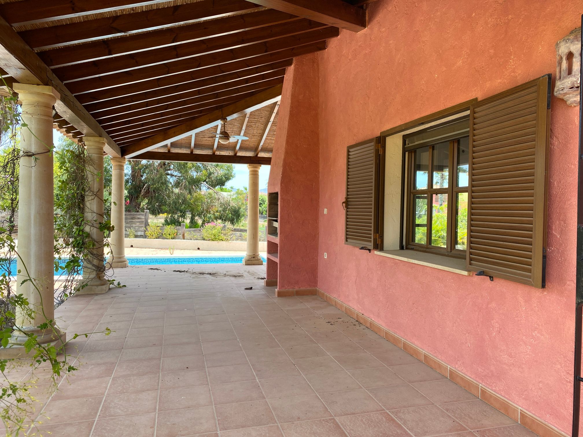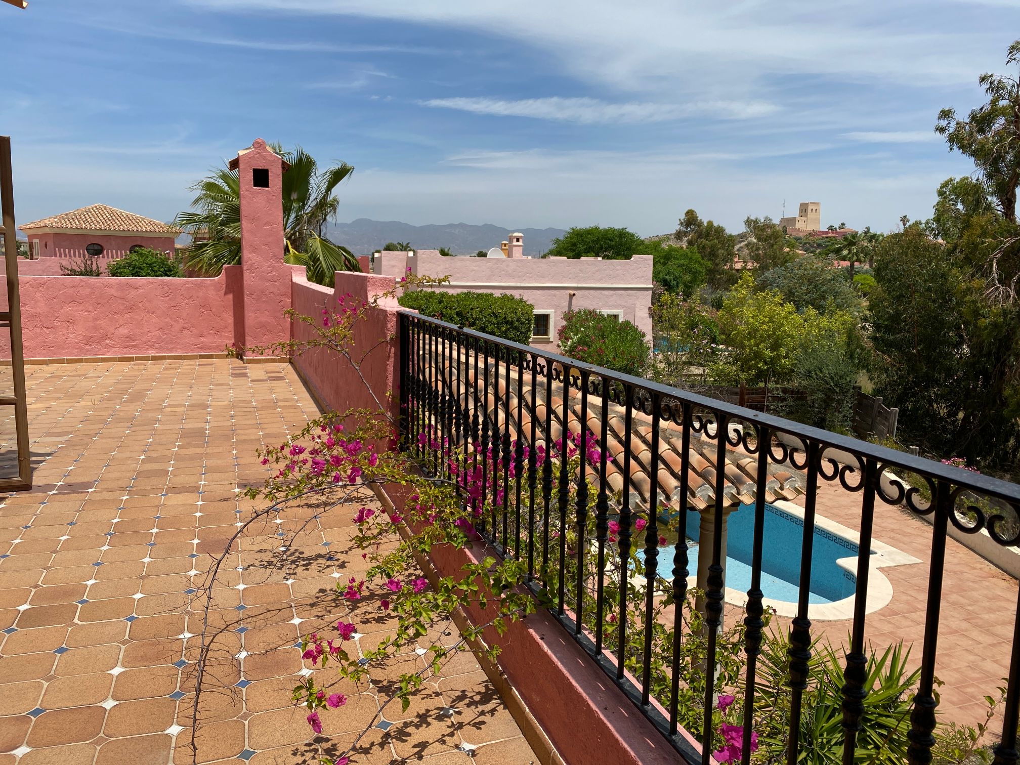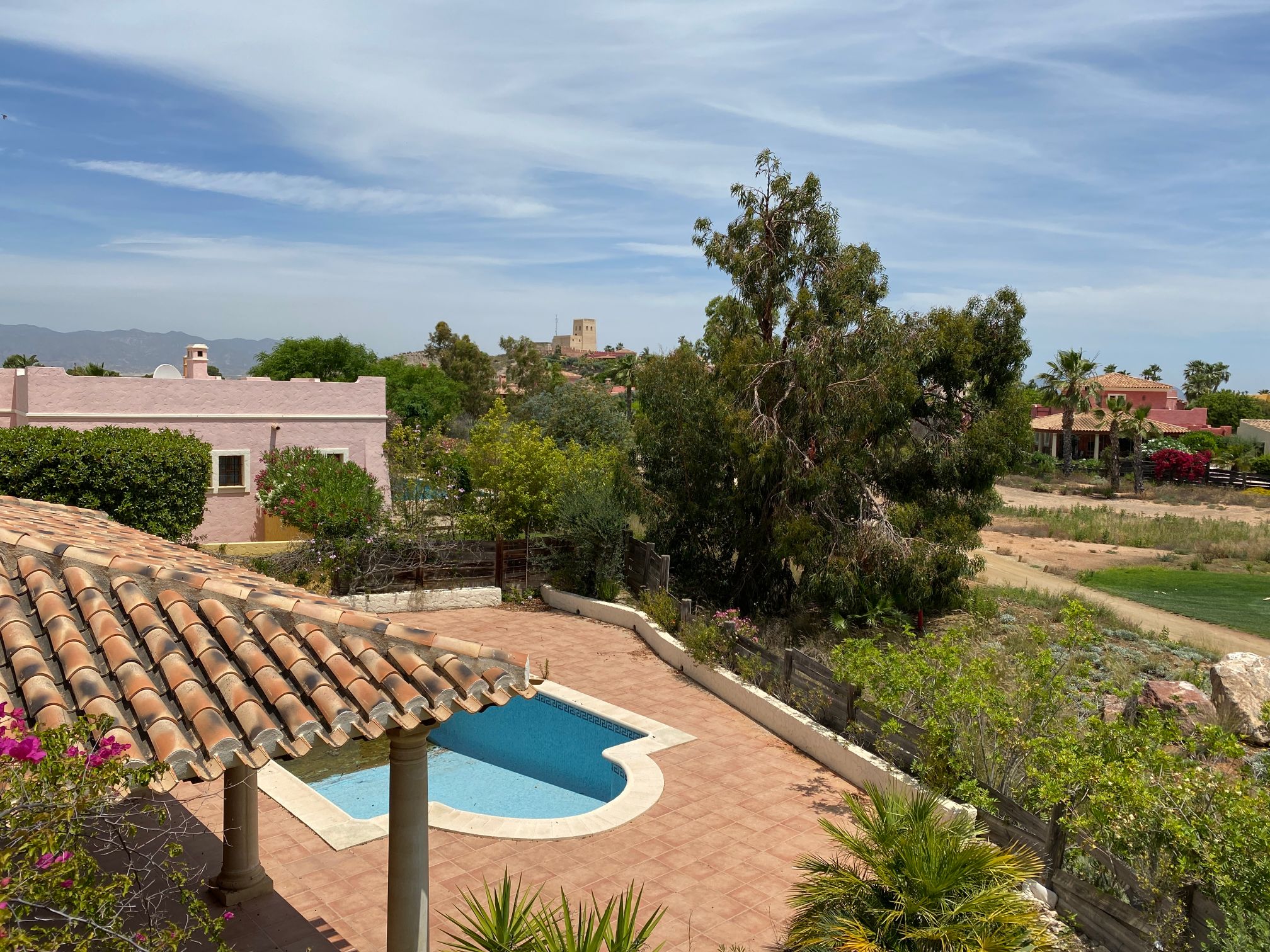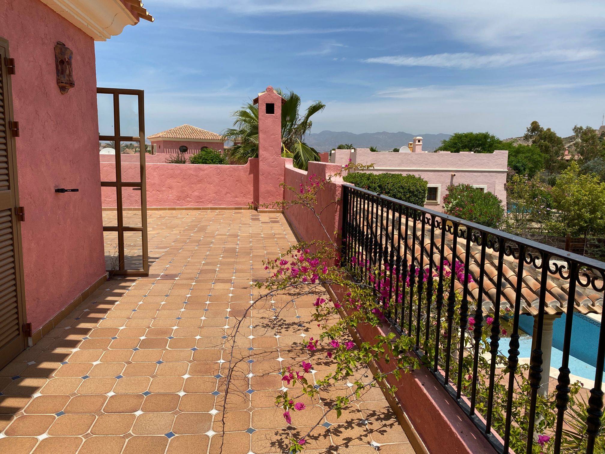 The spacious internal reception area opens out, with a ‘level through’ floor, onto the covered verandas to offer over 93m2 of combined interior/exterior living and dining space, designed to be used as one in this specially privileged climate. A stone-built fireplace internally and a built-in barbecue externally are provided. The master bedroom has an extensive private roof terrace with great views and a separate dressing and bathroom.