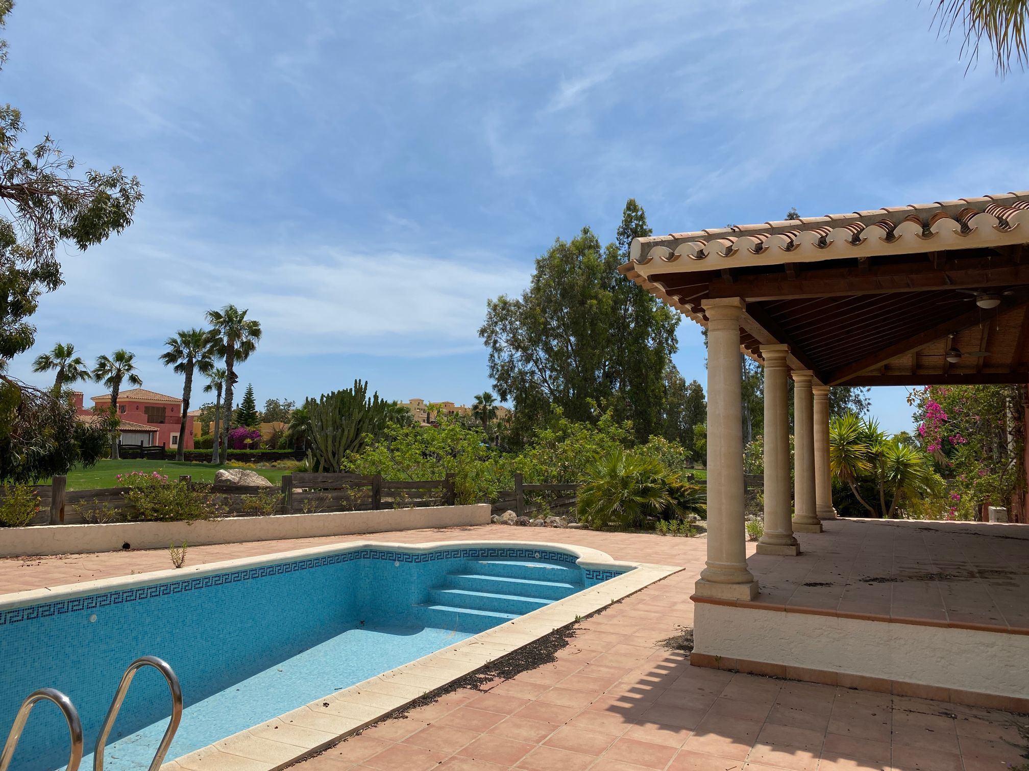 Located overlooking the 15th fairway this stylish Country Villa offers stunning fairway frontage views of the championship Indiana golf course and mountain ranges beyond. A gated front courtyard, deep shady verandas, a private garden looking directly onto the golf course, individual swimming pool, built-in barbecue, extensive roof terraces and double underground parking.