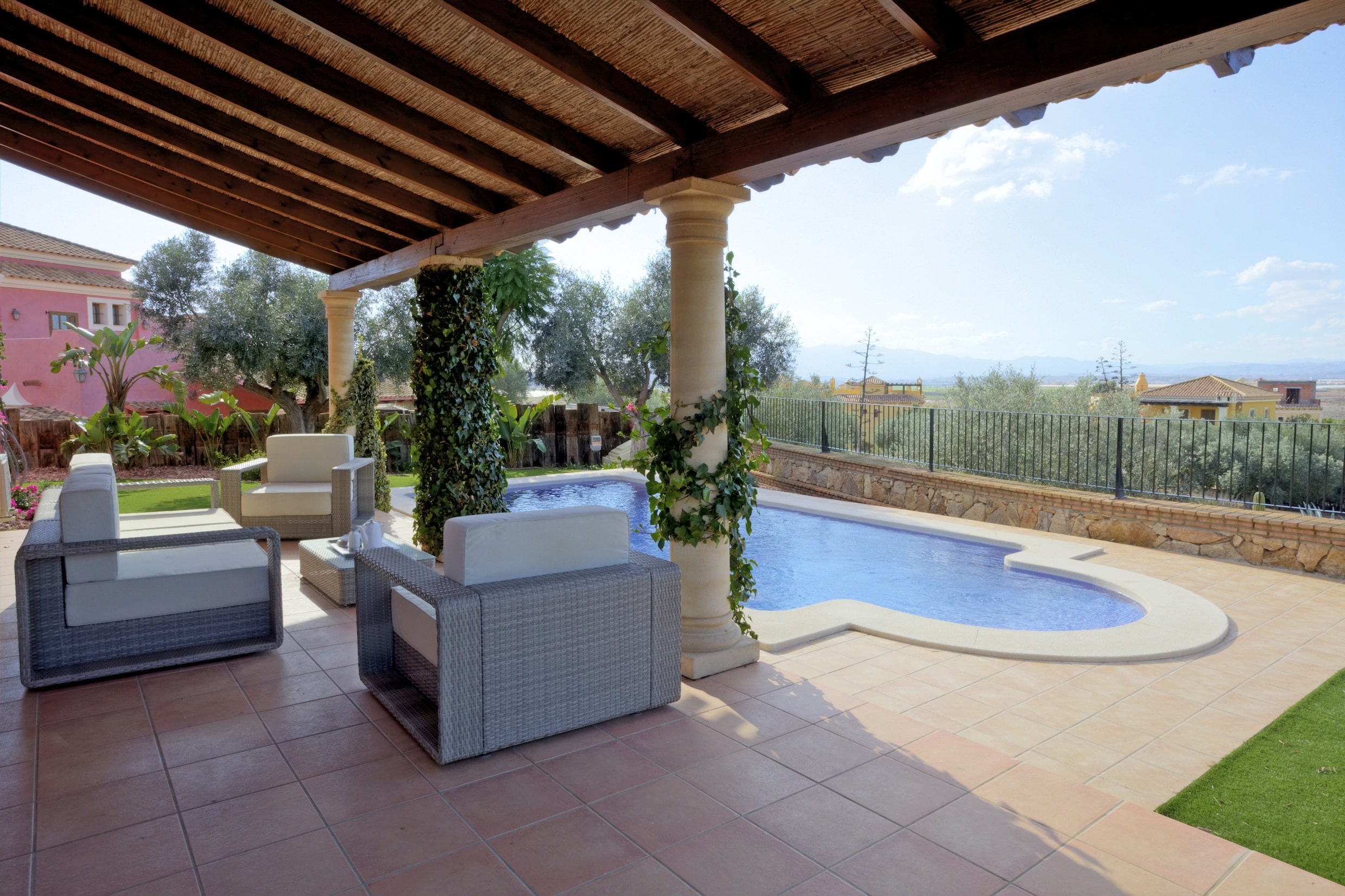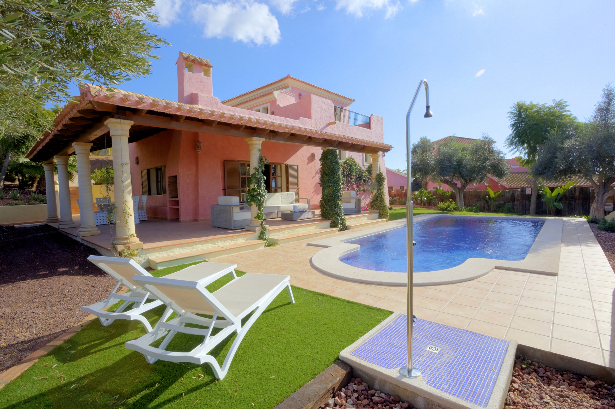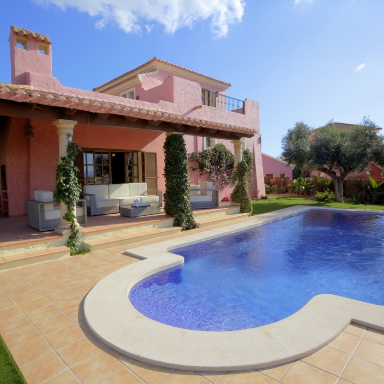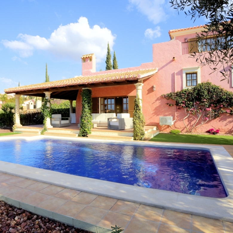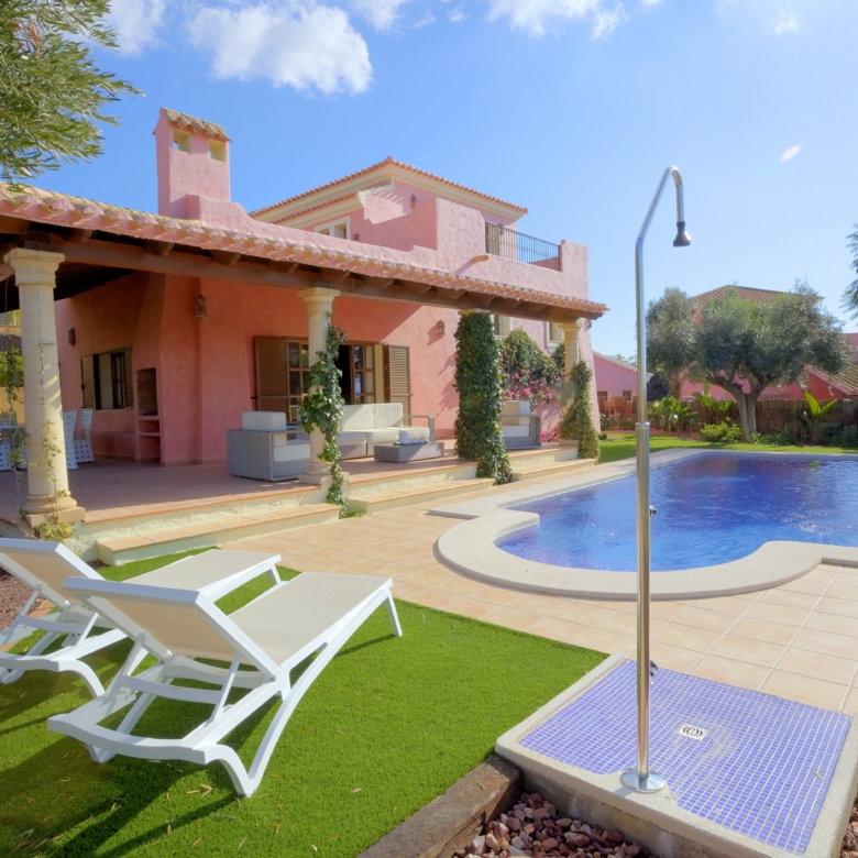 These are large 3 & 4 bedroom detached country villas, ranged along the fairways of the Indiana golf course. Their design faithfully reflects that of the larger country ‘cortijos’ and ‘haciendas’ of the Almanzora and Spanish Levante region.