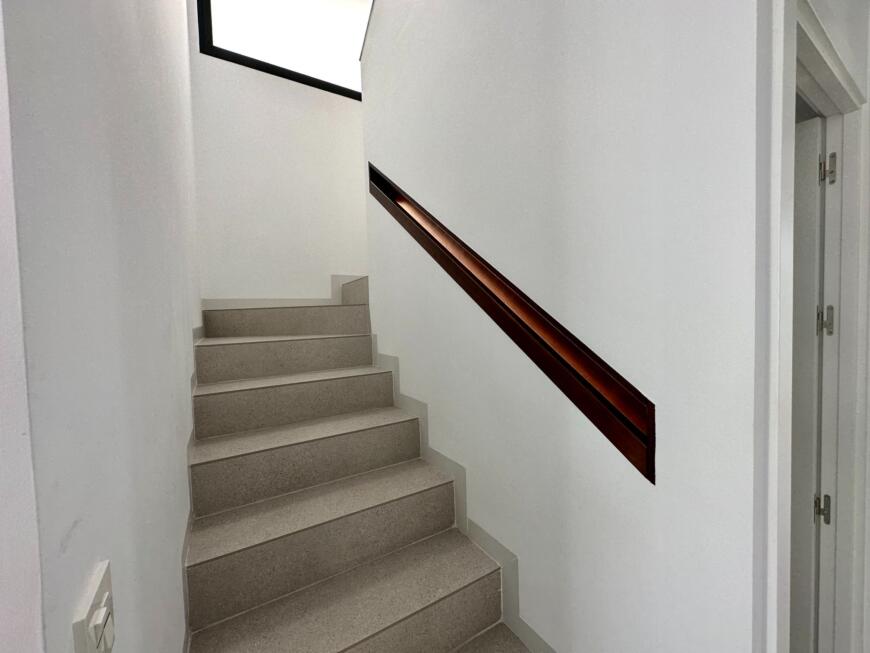 Bannisters of steel profiles finished in anthracite grey or white.