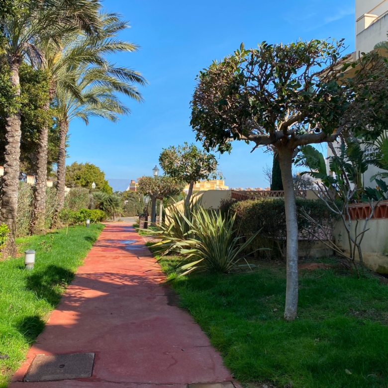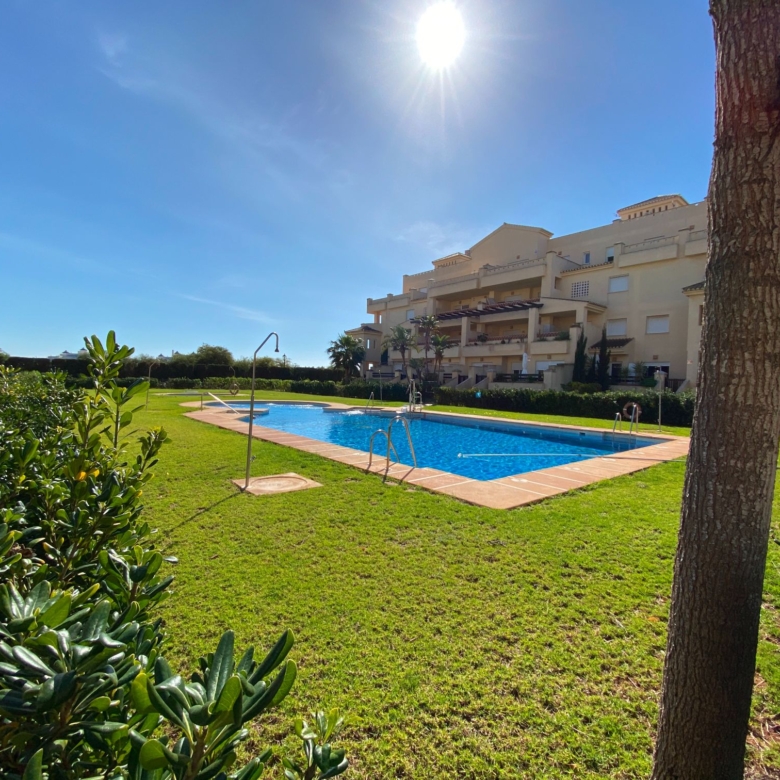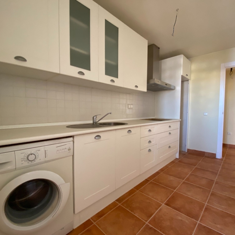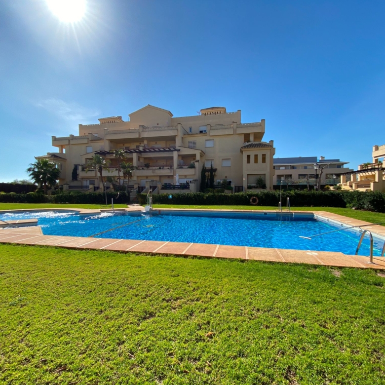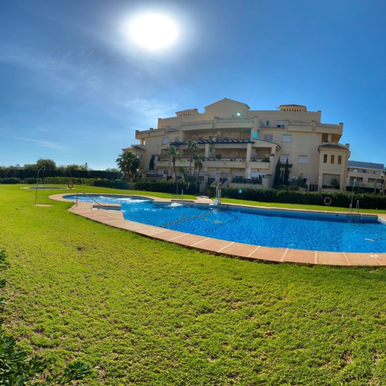 It has an area of 103.88 m², on the first floor south facing which is distributed in two bedrooms, two bathrooms, living room, kitchen and a large terrace. It is located in a beautiful residential area with a garden where you can walk around and enjoy the park, large and small swimming pools and paddle tennis courts. Sea View and Snowy Mountains View