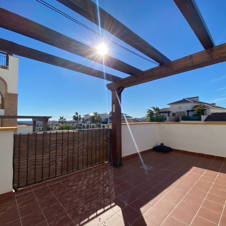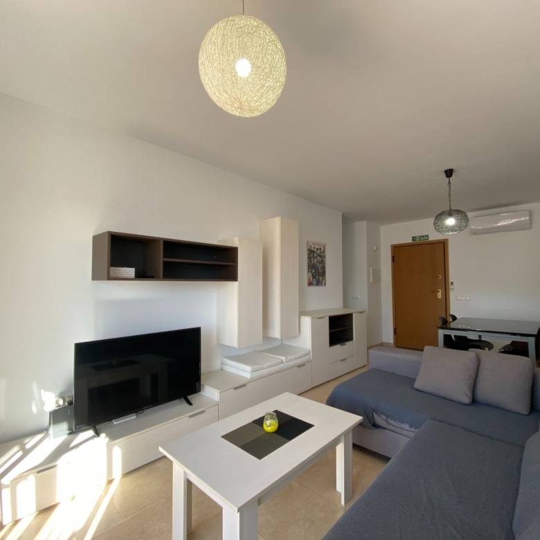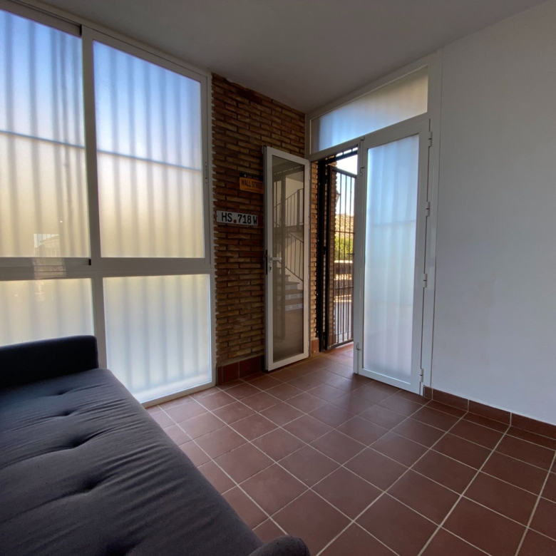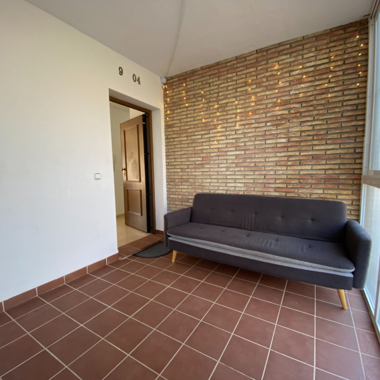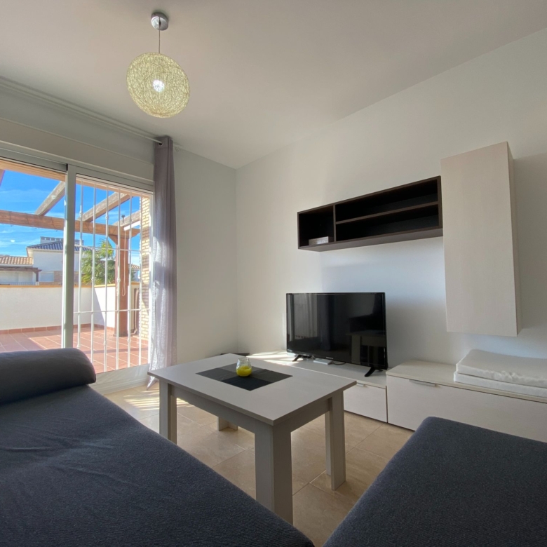 It is a spacious apartment with a closed and glazed entrance hall with a sofa and prepared to make this place a very special corner, from this corner you enter directly into the spacious and warm living room, all in light and white tones to give it a touch of light, although the windows that overlook the terrace are very large and let in clear and sharp light, (it has bars for greater security) the very spacious terrace divided into two rooms to sunbathe in the hammocks and enjoy a good reading in the shade of the wooden pergola and area for coffee, with some very comfortable armchairs to just relax.