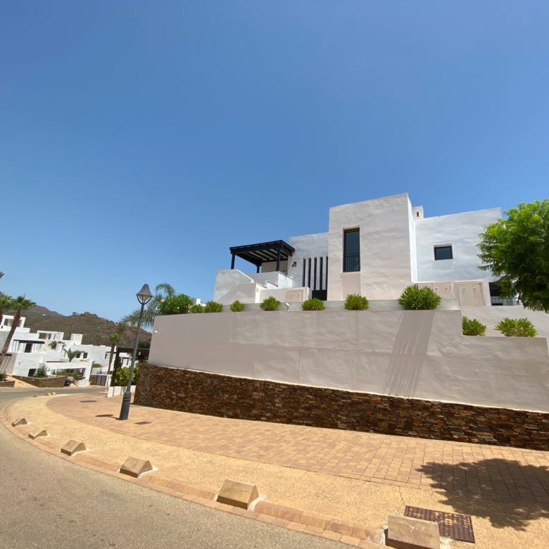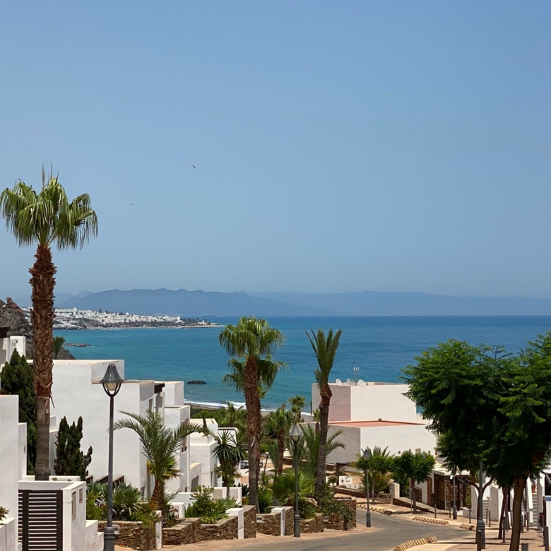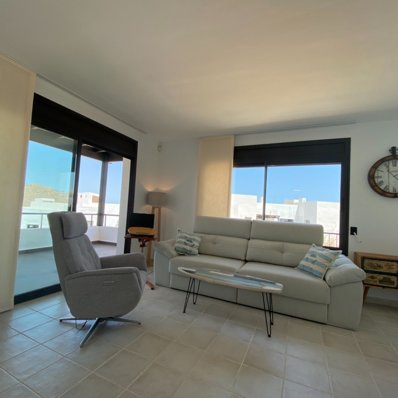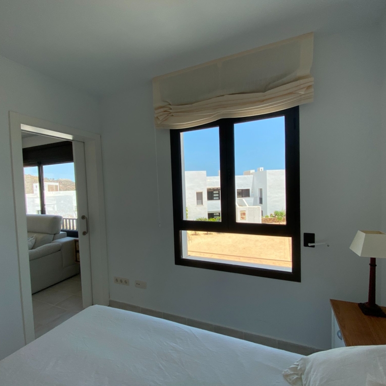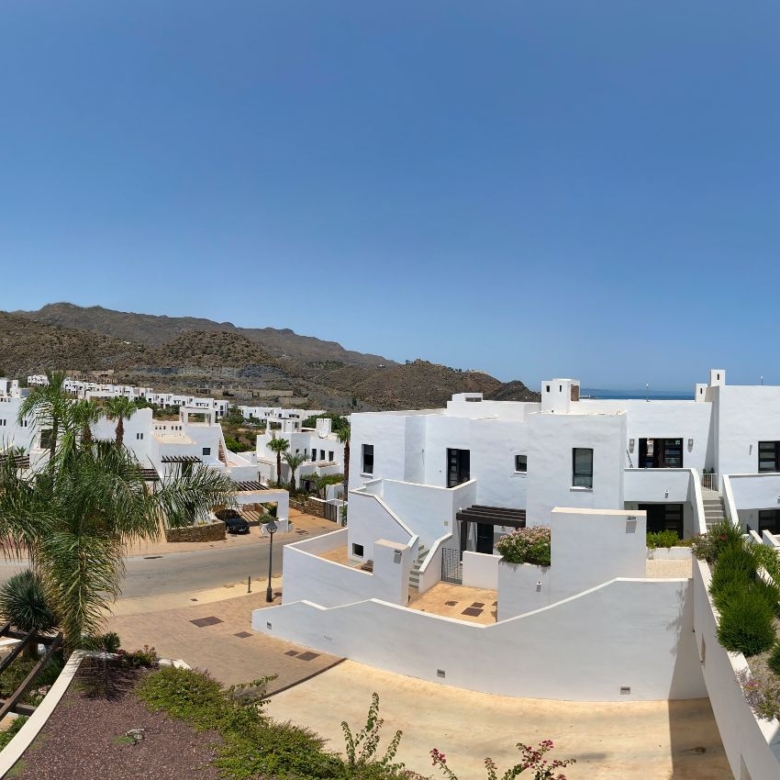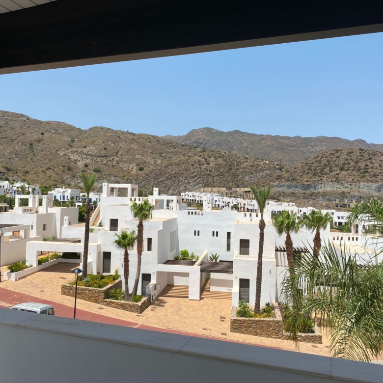Playa Macenas beach resort is five minutes drive along the coast from Mojacar in the province of Almeria. This is a great location for a family holiday or a golfing break. The complex is quite different from the majority found in Spain with its superior build, architectural design, and high-quality finish. There are many top golf courses within a short drive of the resort including Desert Springs, Valle Des Este, and Aguillas. The nightlife of Mojacar provides an endless supply of evening entertainment in the form of restaurants, bars, and clubs. For the family there are numerous swimming pools on the resort plus off resort there is 17km of unspoiled beaches to choose from, two great water parks, go-karting and also the mini Hollywood Studios at the Tabernas Desert. The romantic white village of Old Mojacar is perched high on the nearby hilltop.