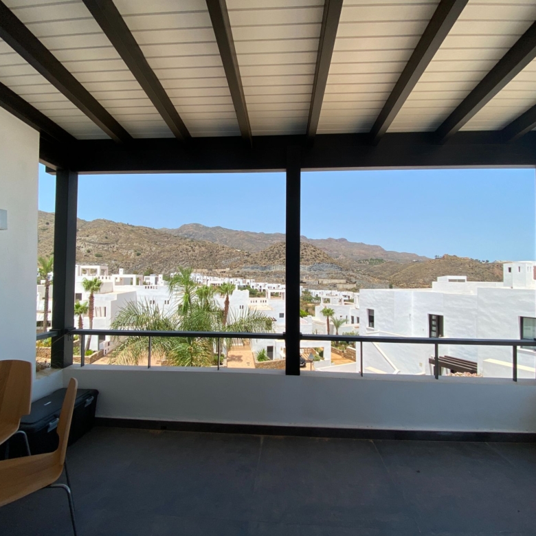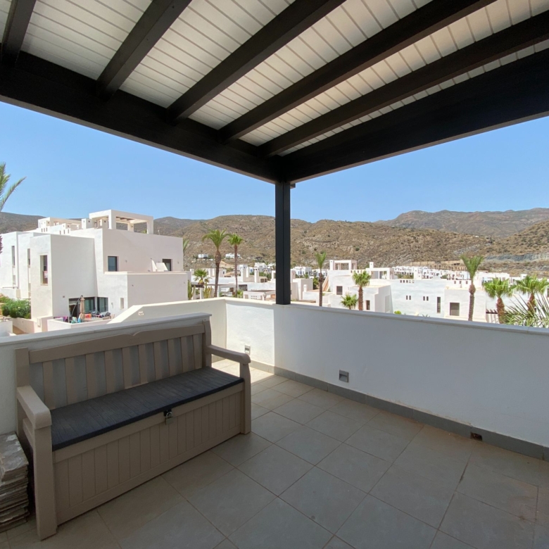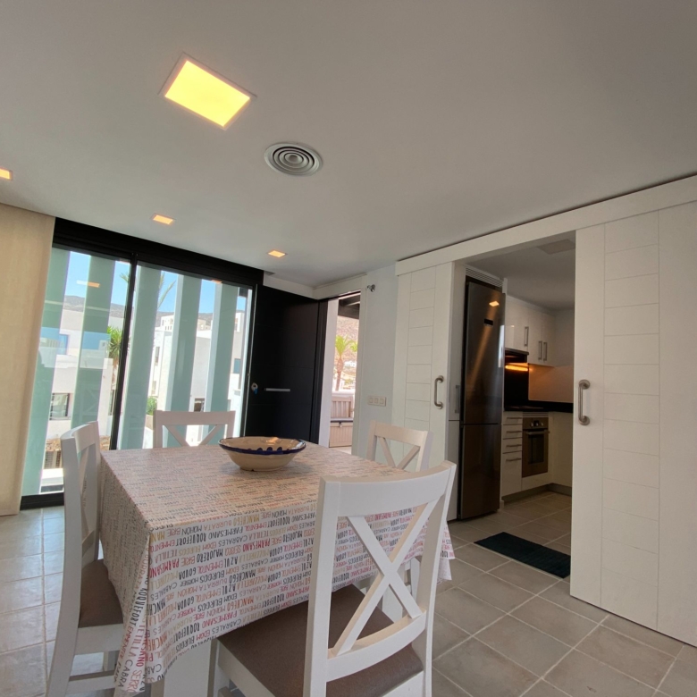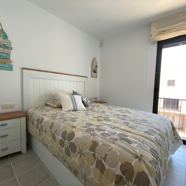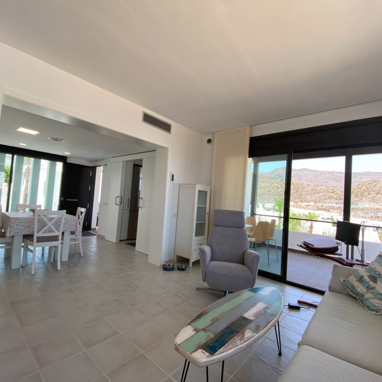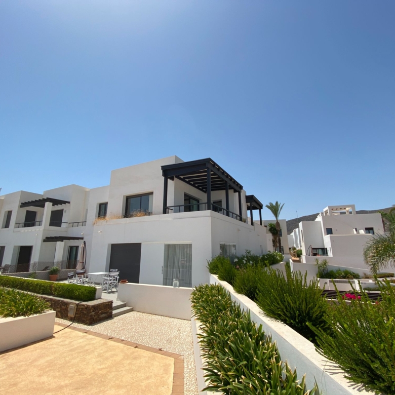 Playa Macenas beach resort is five minutes drive along the coast from Mojacar in the province of Almeria. This is a great location for a family holiday or a golfing break. The complex is quite different from the majority found in Spain with its superior build, architectural design, and high-quality finish. There are many top golf courses within a short drive of the resort including Desert Springs, Valle Des Este, and Aguillas. The nightlife of Mojacar provides an endless supply of evening entertainment in the form of restaurants, bars, and clubs. For the family there are numerous swimming pools on the resort plus off resort there is 17km of unspoiled beaches to choose from, two great water parks, go-karting and also the mini Hollywood Studios at the Tabernas Desert. The romantic white village of Old Mojacar is perched high on the nearby hilltop.