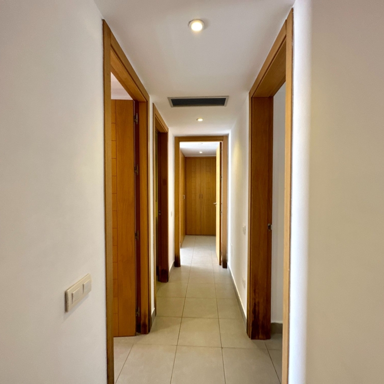 The apartment comprises three generously sized bedrooms, each meticulously designed to offer both comfort and privacy. The master bedroom boasts a private en-suite bathroom, complete with luxurious fixtures and fittings. Wake up to the soothing sound of waves crashing against the shore and start your day with unparalleled views of the shimmering Mediterranean sea.