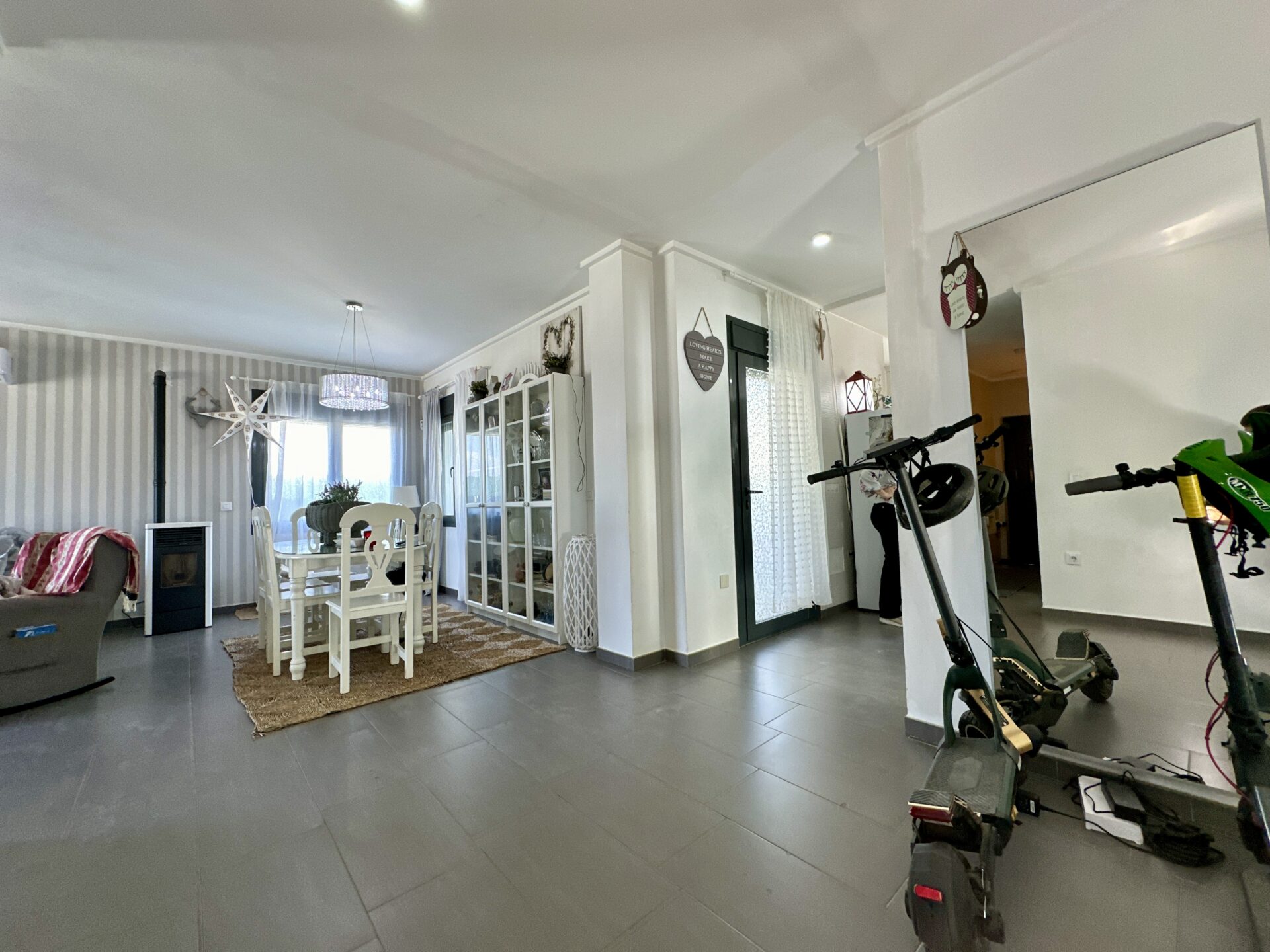 Built in 2011, this villa spans two floors: the basement and the ground floor. What truly sets this property apart is its meticulous attention to detail and the use of high-quality materials. From the central vacuum system to porcelain tile floors, sliding doors, smooth paint, aluminum exterior carpentry with thermal break, electric security shutters, mosquito screens, LED lighting, fiber optics with Wi-Fi throughout the house, drainage to the sewage system, air conditioning, pellet stoves, solar panels, and hot water by solar energy—every element has been carefully chosen for comfort and energy efficiency.